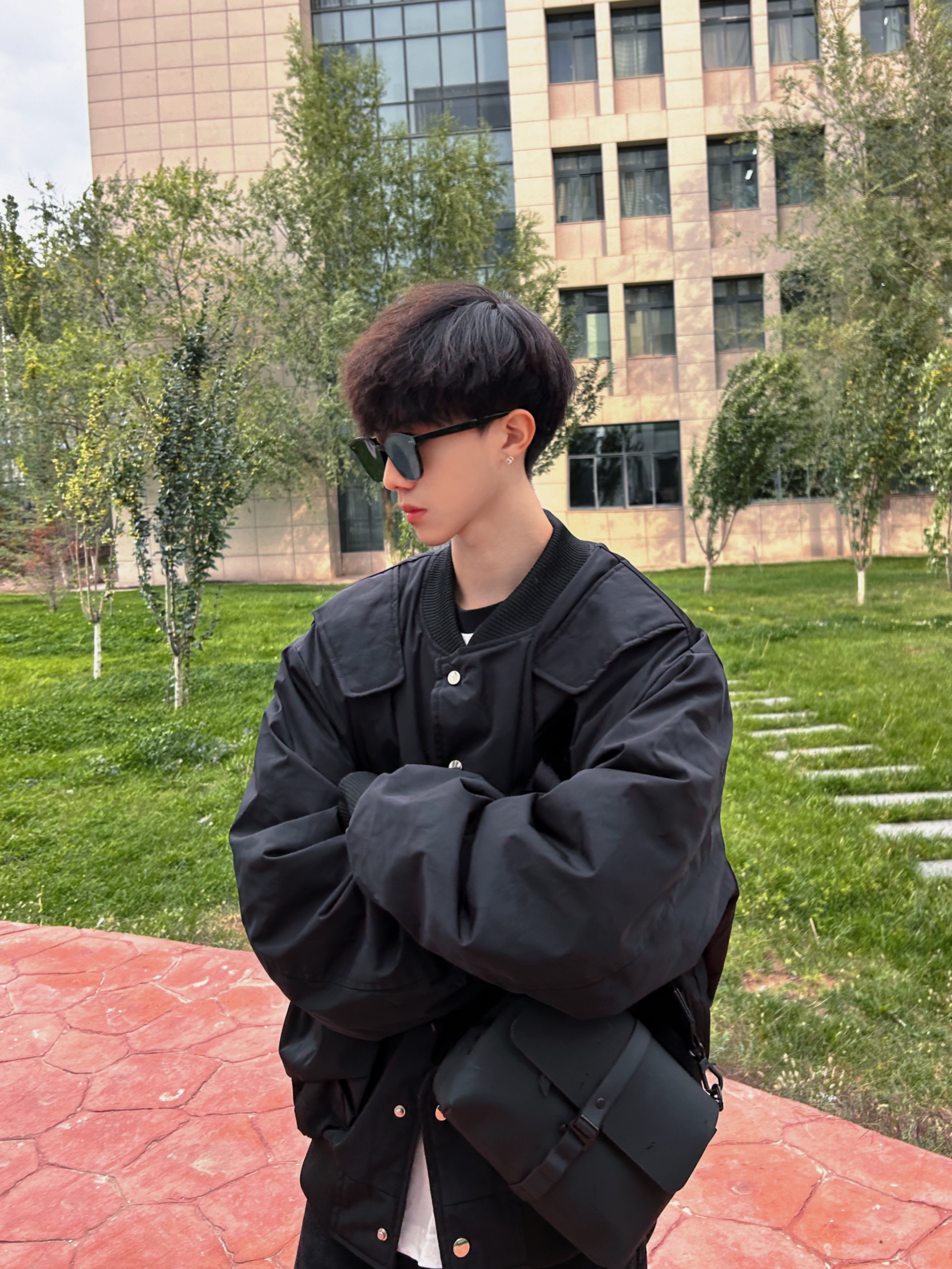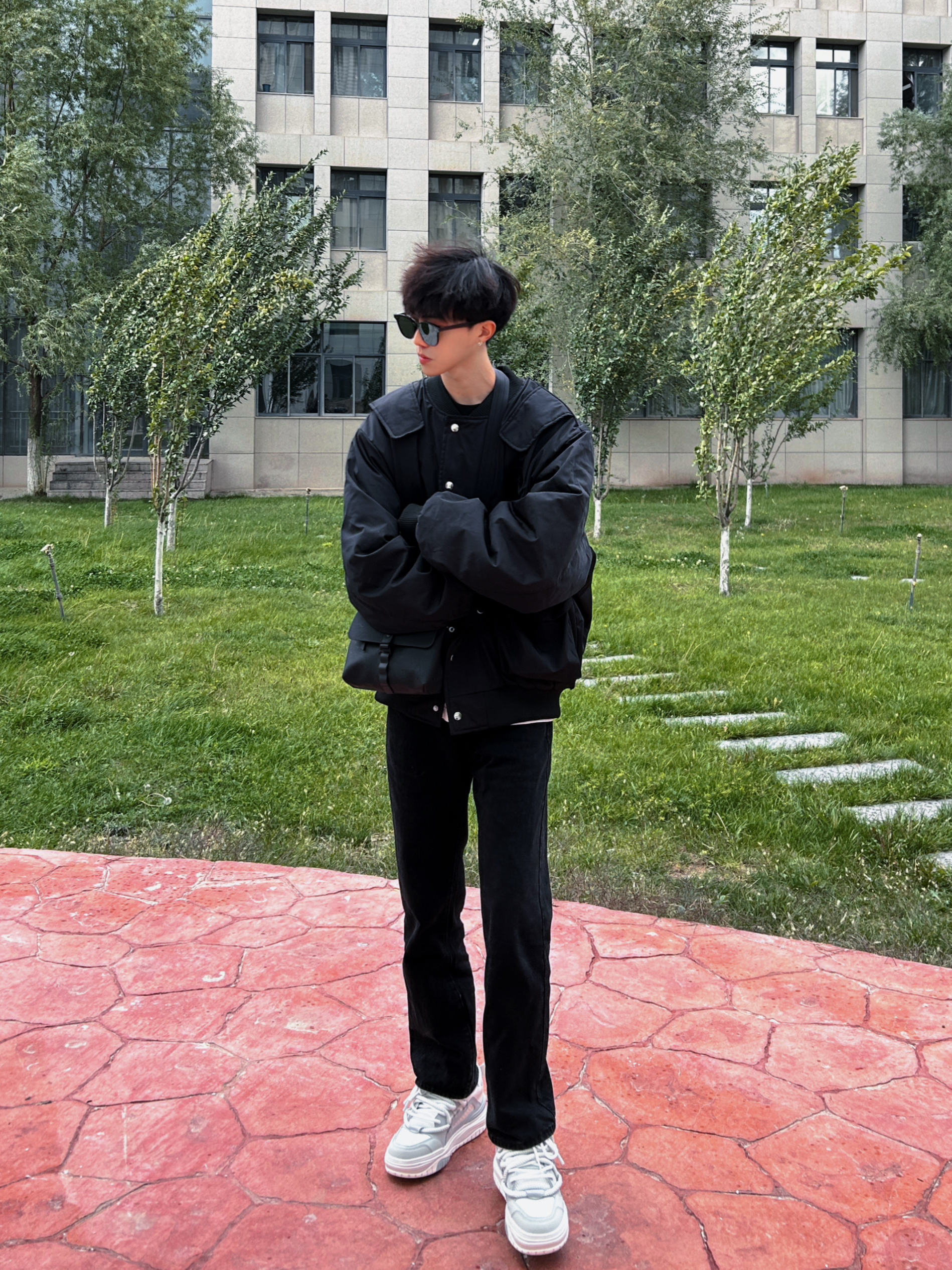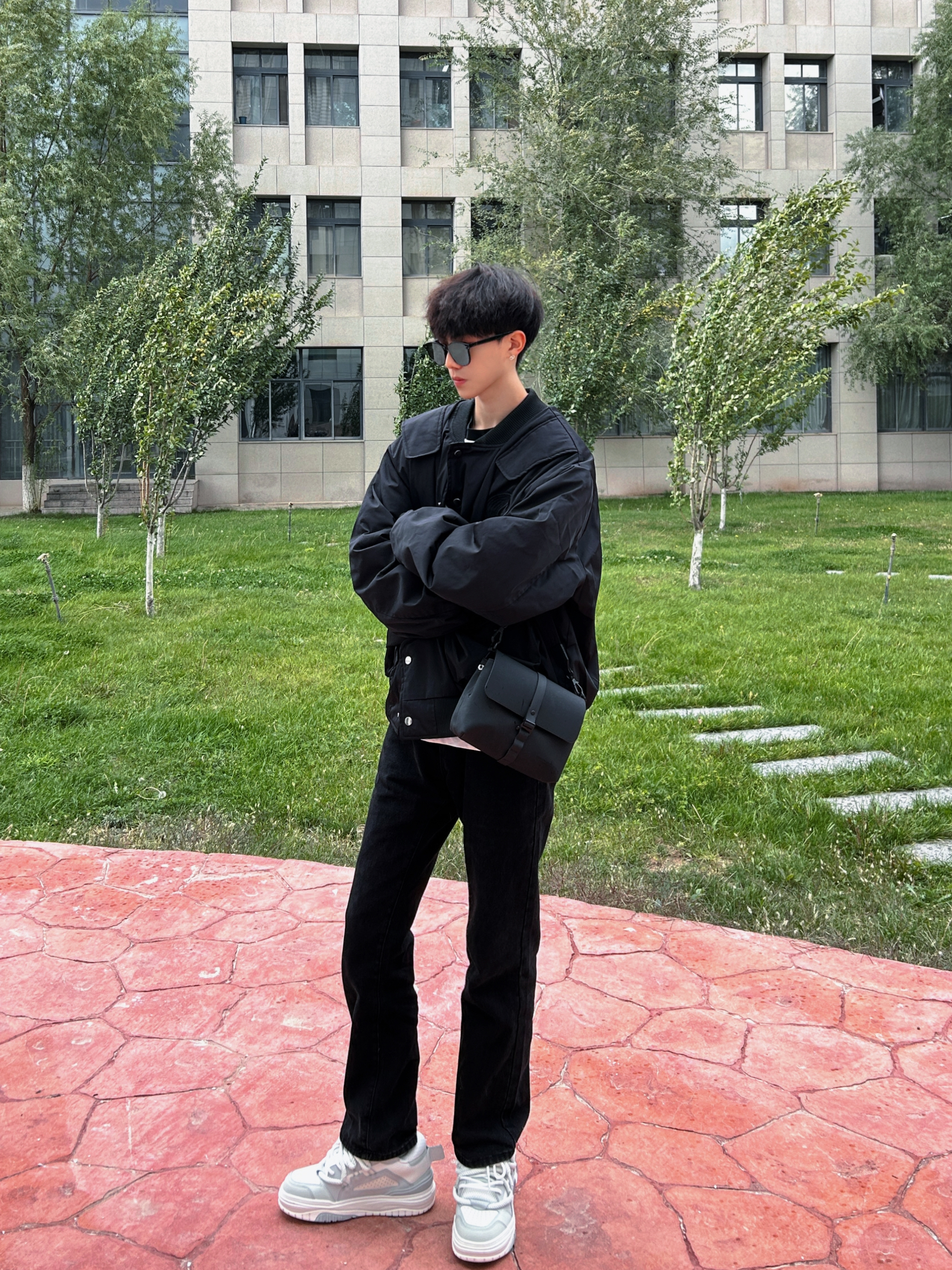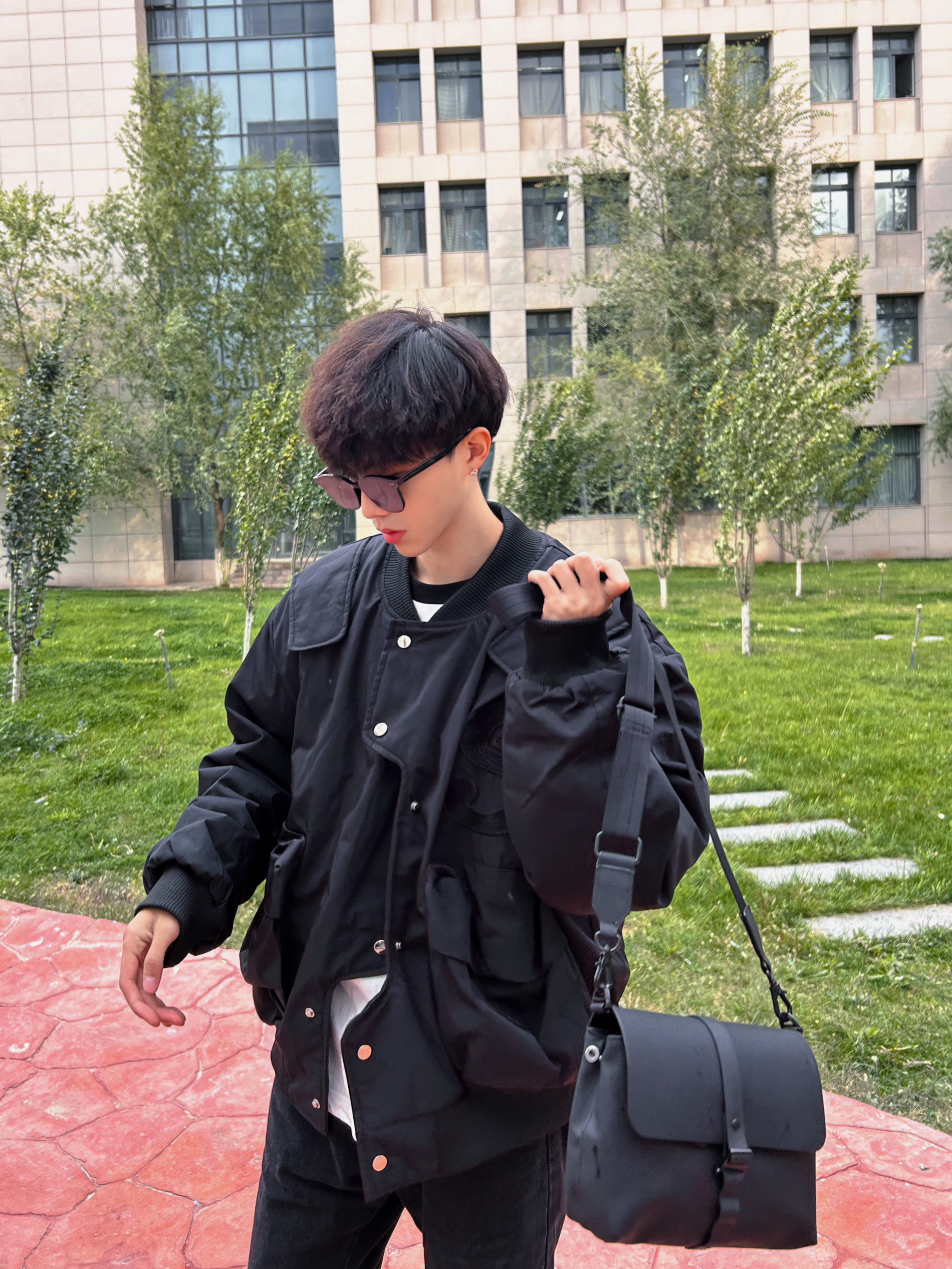春天万物明媚 但我们也可以是高冷的存在 哪怕是在户外 一身黑真的就是很帅的存在 一件飞行员夹克 防风防水更重要的是真的好帅气 不规则的扣子设计也是很独特 让人一眼就忘不掉了