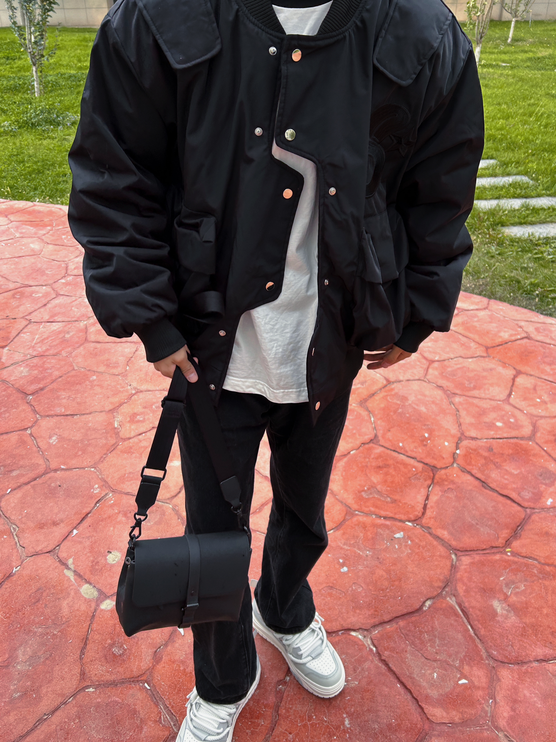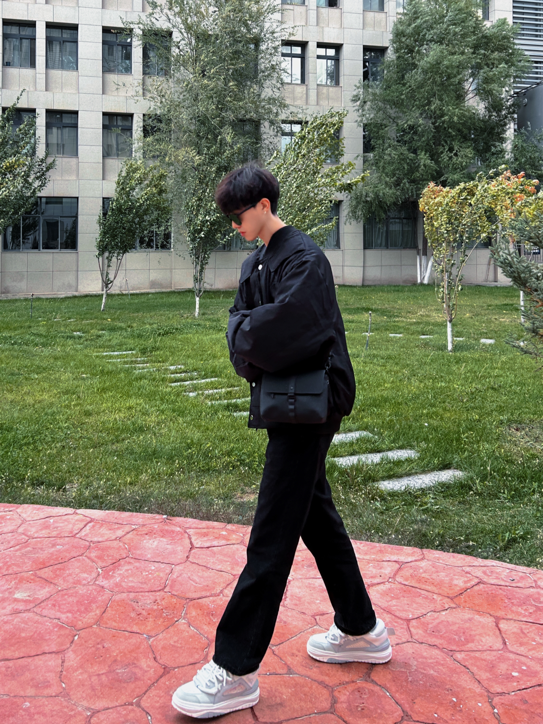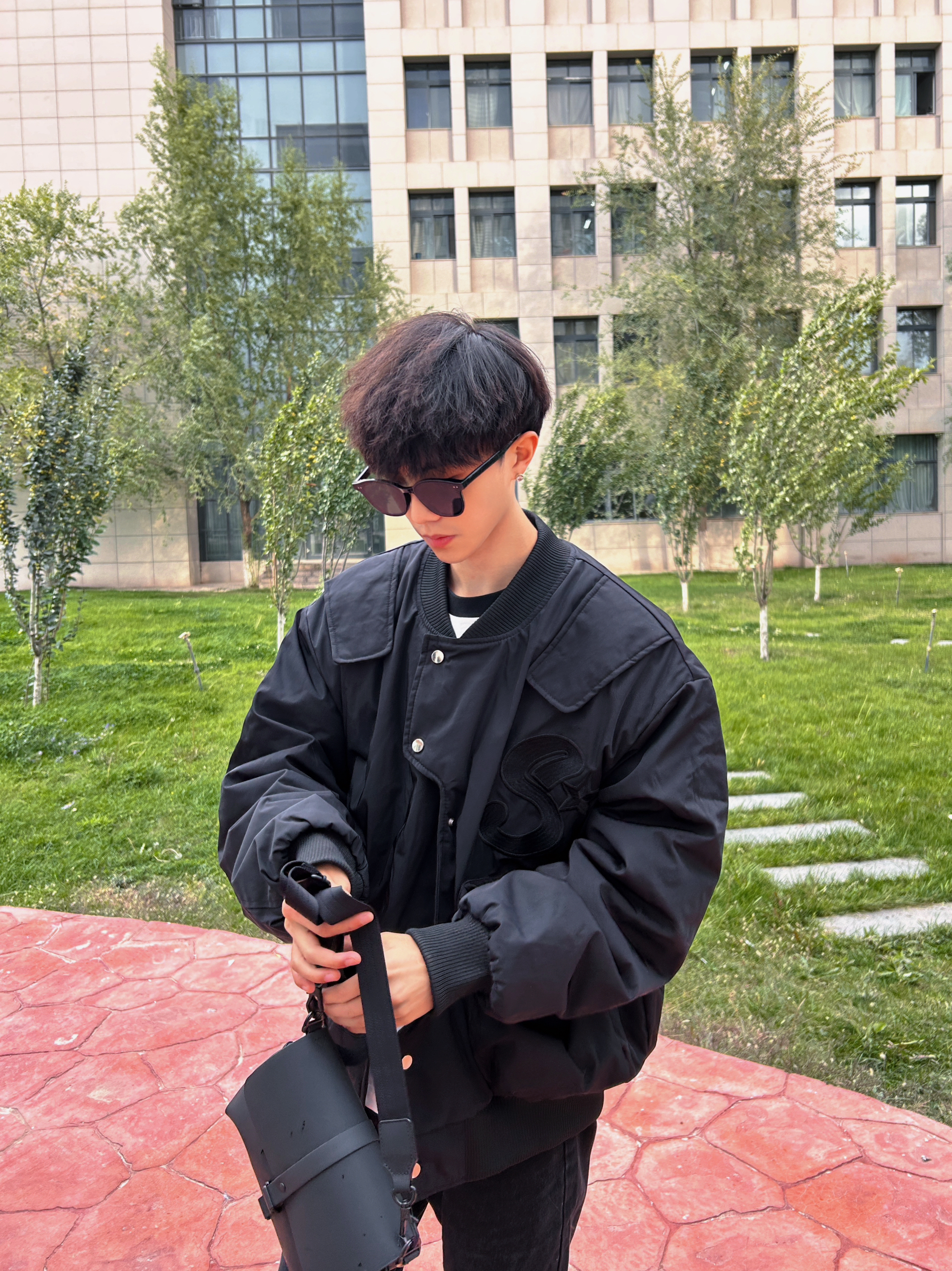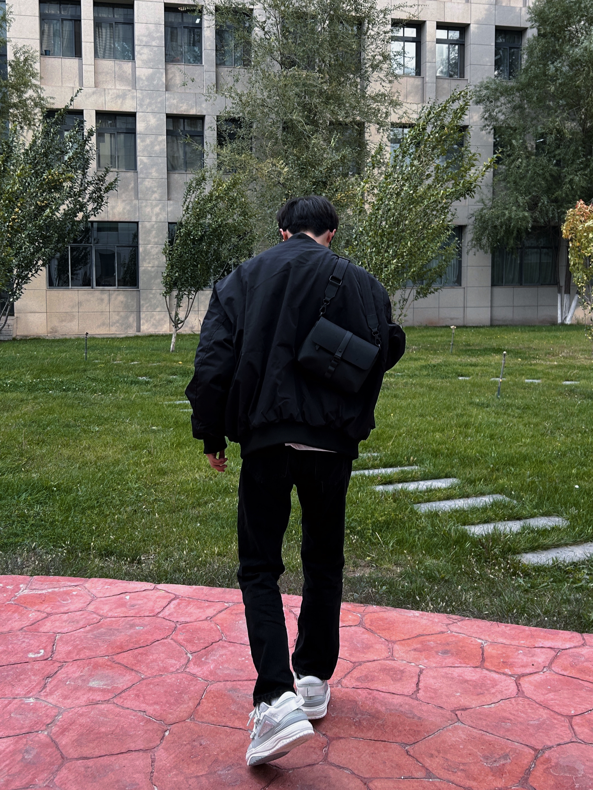 春天万物明媚 但我们也可以是高冷的存在 哪怕是在户外 一身黑真的就是很帅的存在 一件飞行员夹克 防风防水更重要的是真的好帅气 不规则的扣子设计也是很独特 让人一眼就忘不掉了