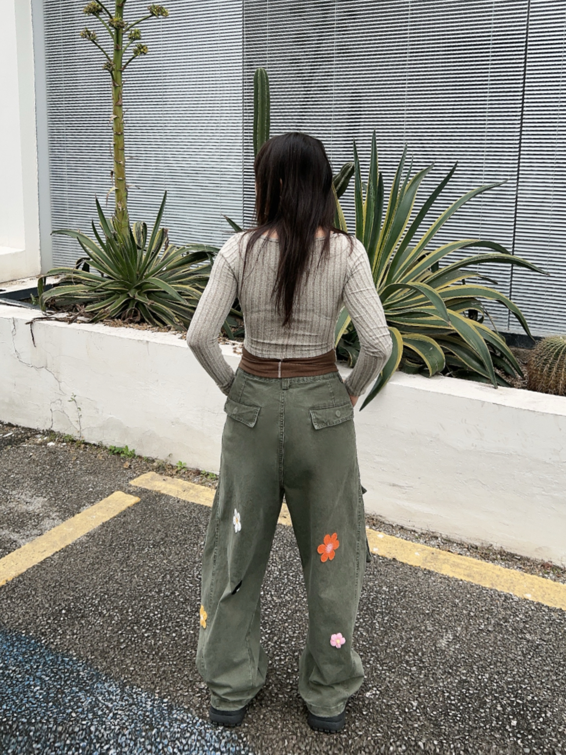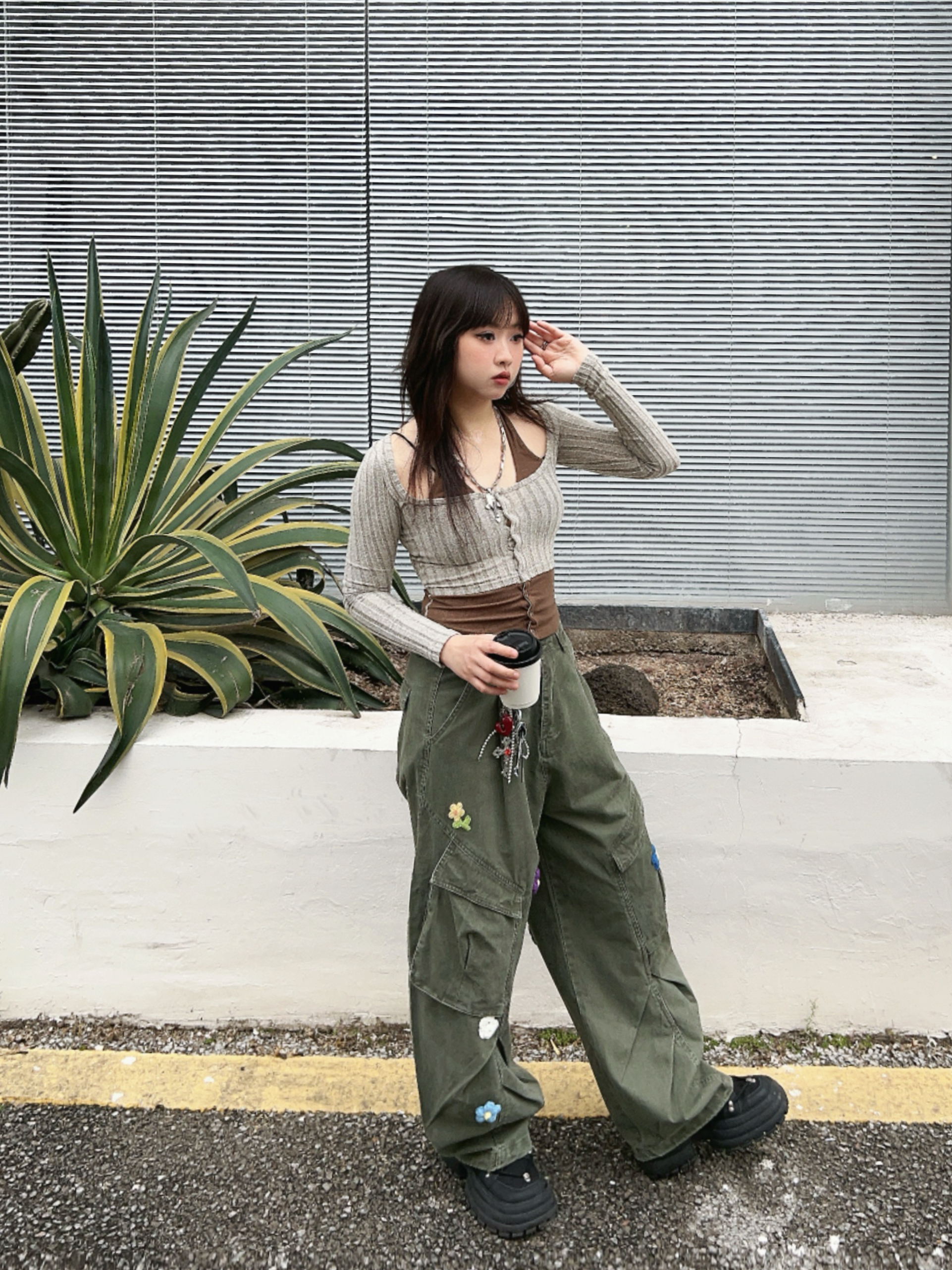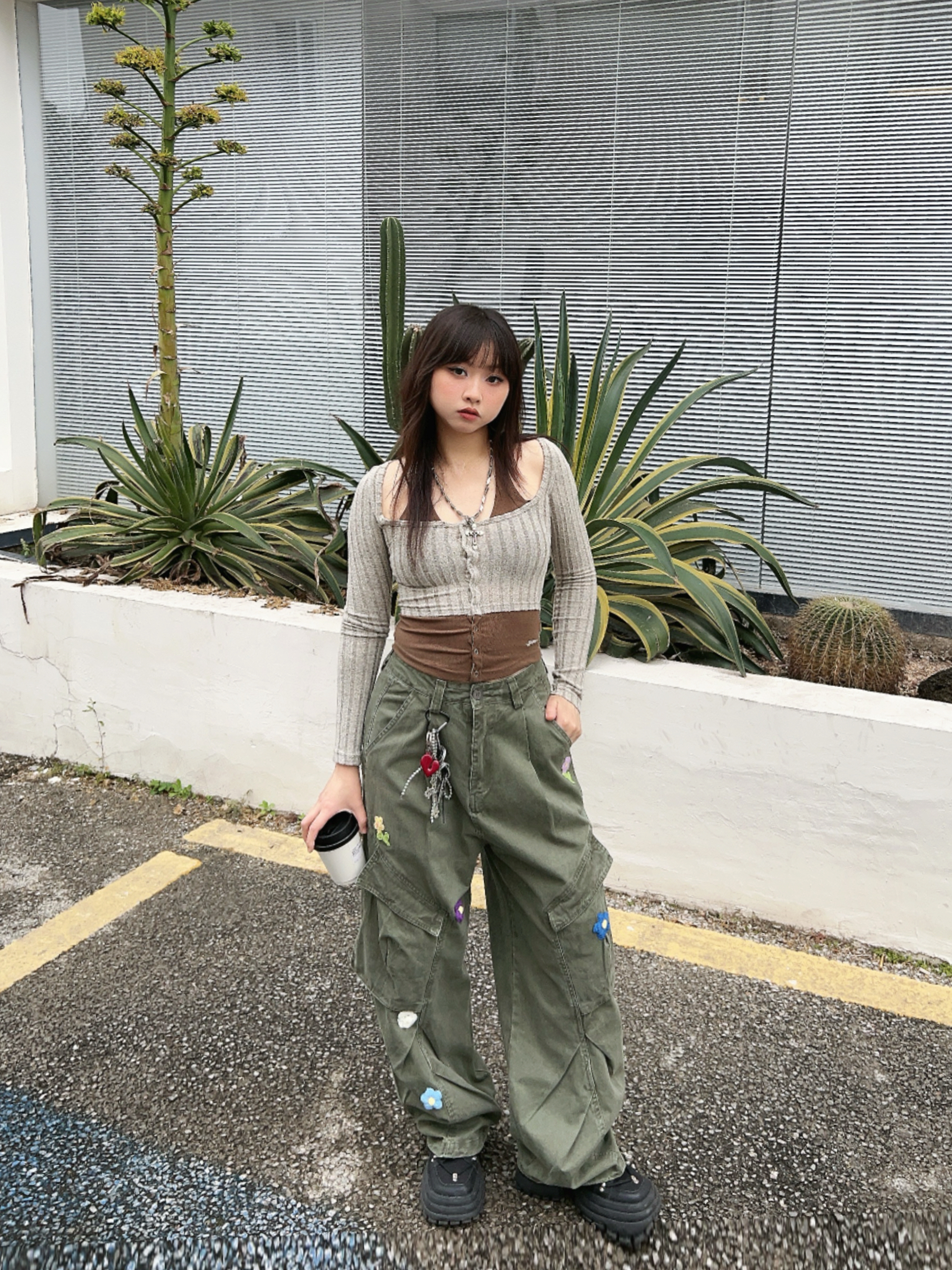 ☁️很有生命力的早春户外穿搭🫧 💭有点辣的绿色系ootd,辣妹针织衫搭配复古工装裤! 👖宽松的版型很有vibe,上面的🌼🌸🍃装饰,泰有春日氛围感啦~