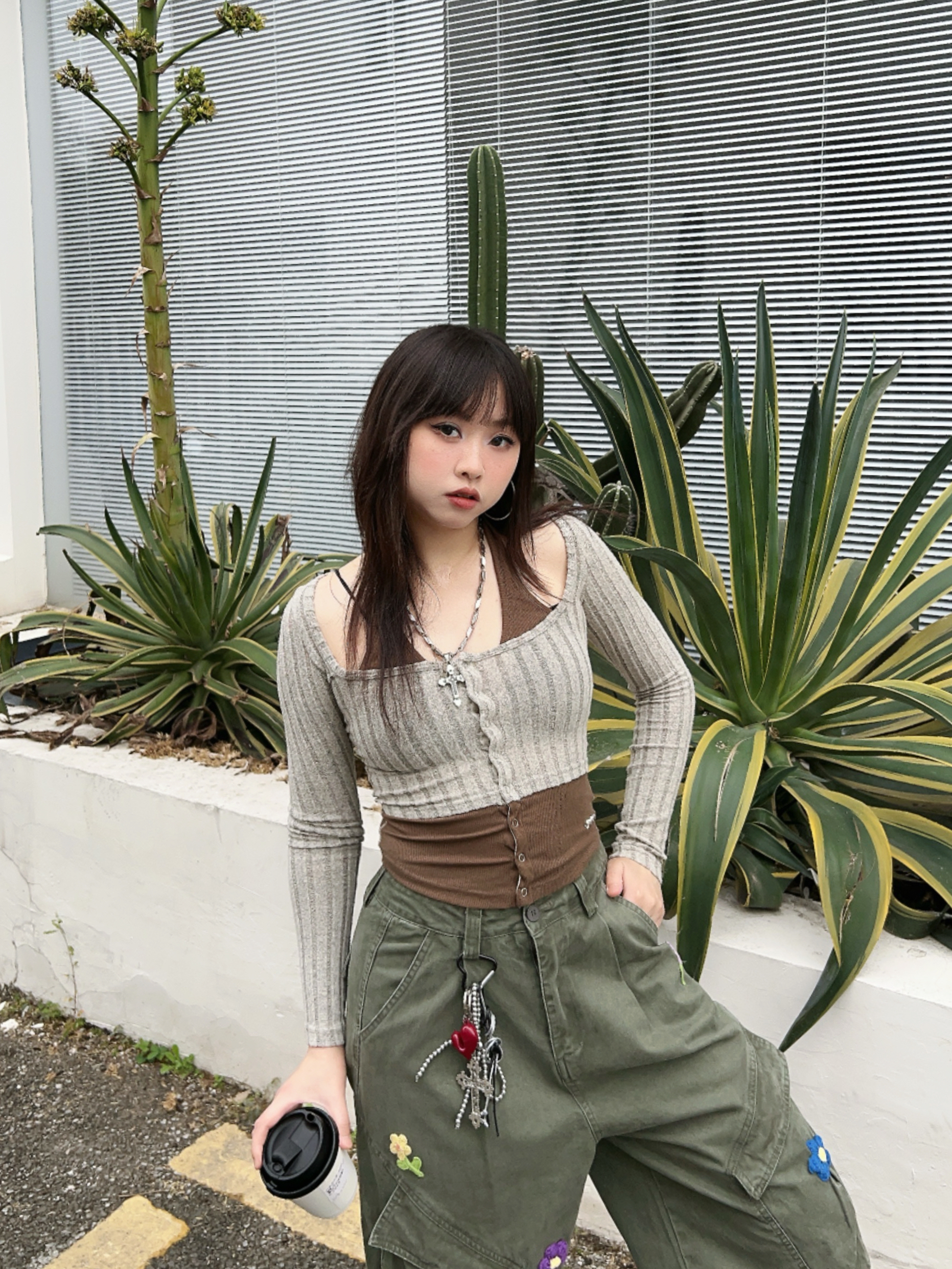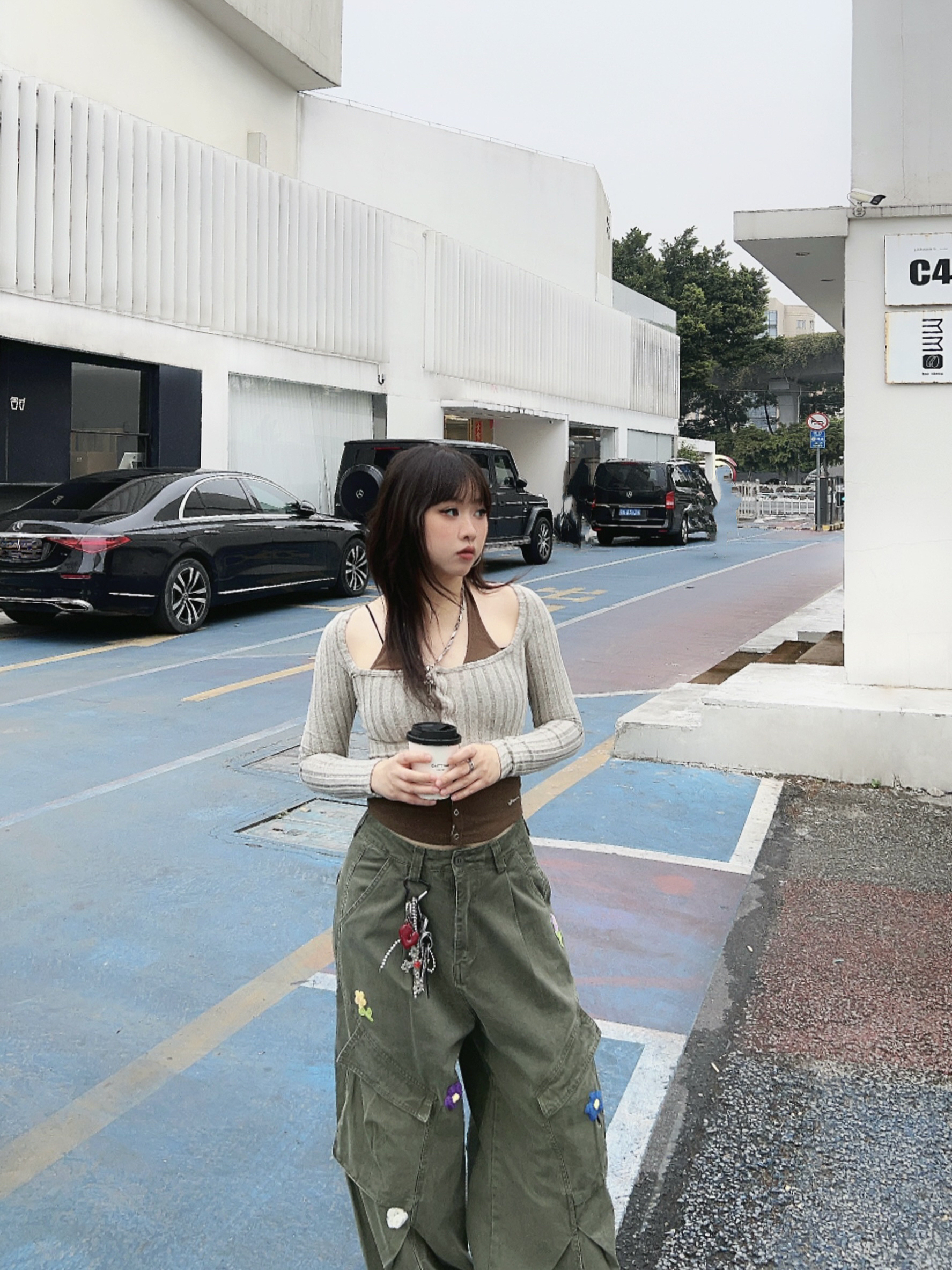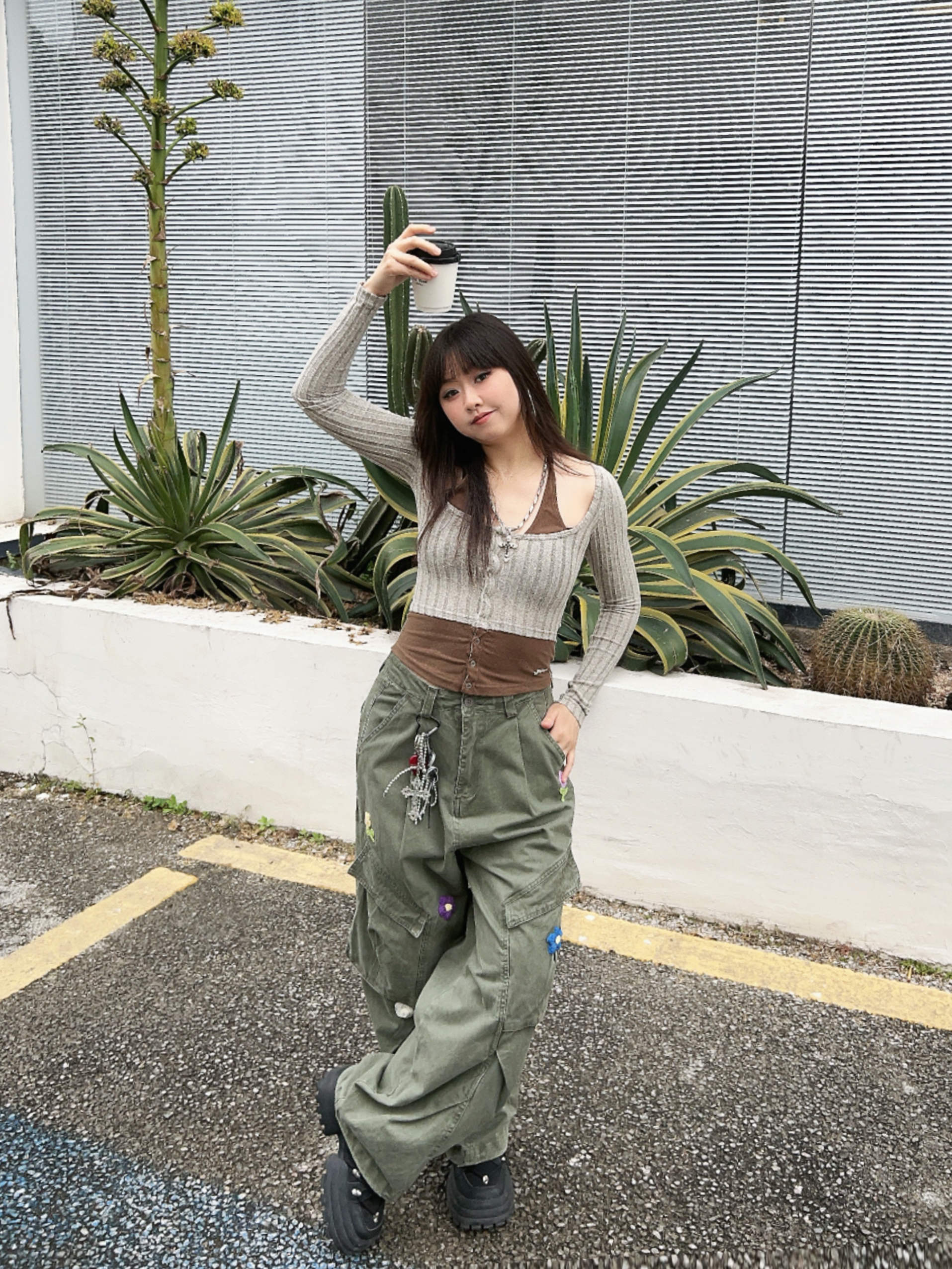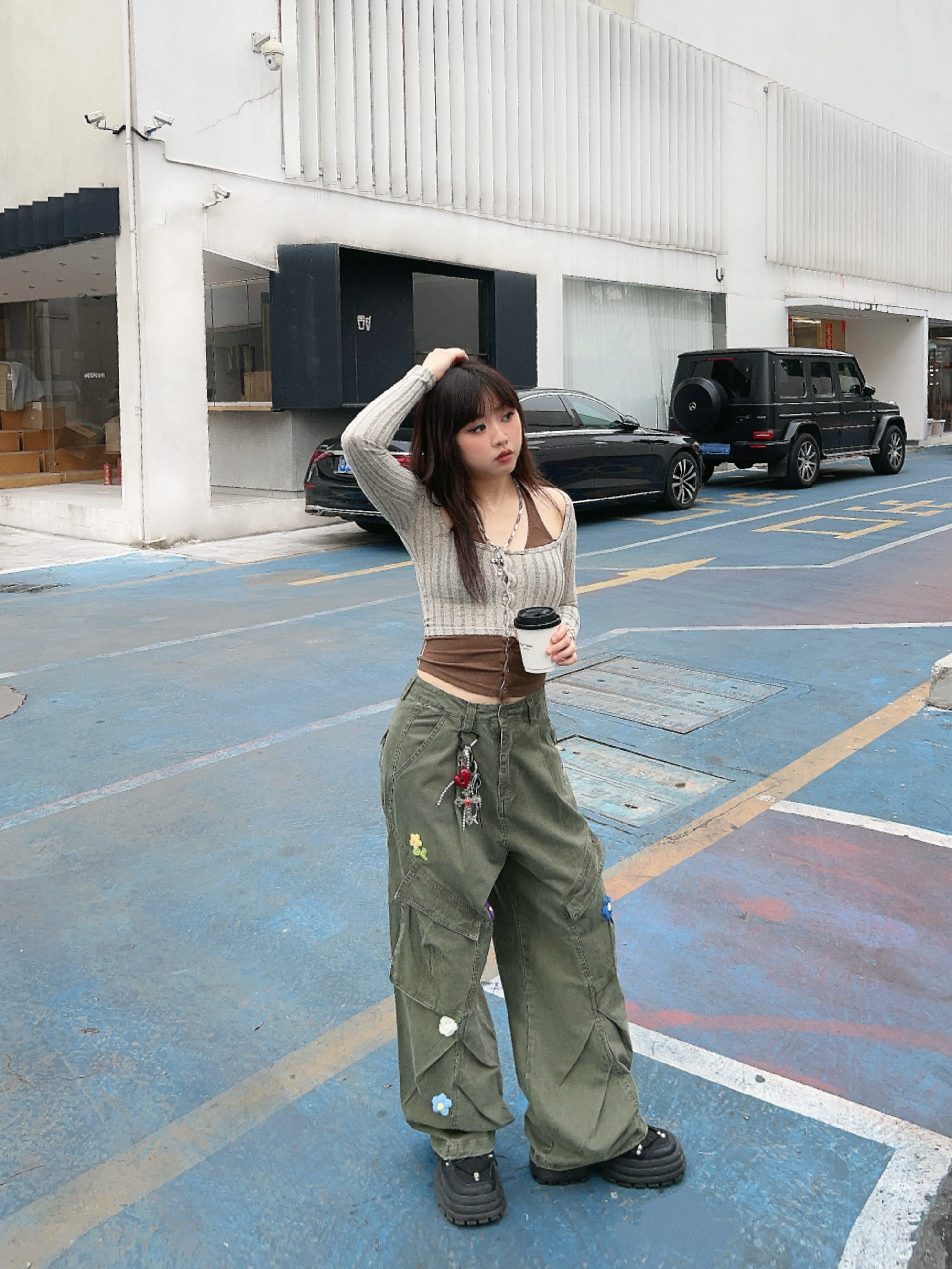 ☁️很有生命力的早春户外穿搭🫧 💭有点辣的绿色系ootd,辣妹针织衫搭配复古工装裤! 👖宽松的版型很有vibe,上面的🌼🌸🍃装饰,泰有春日氛围感啦~