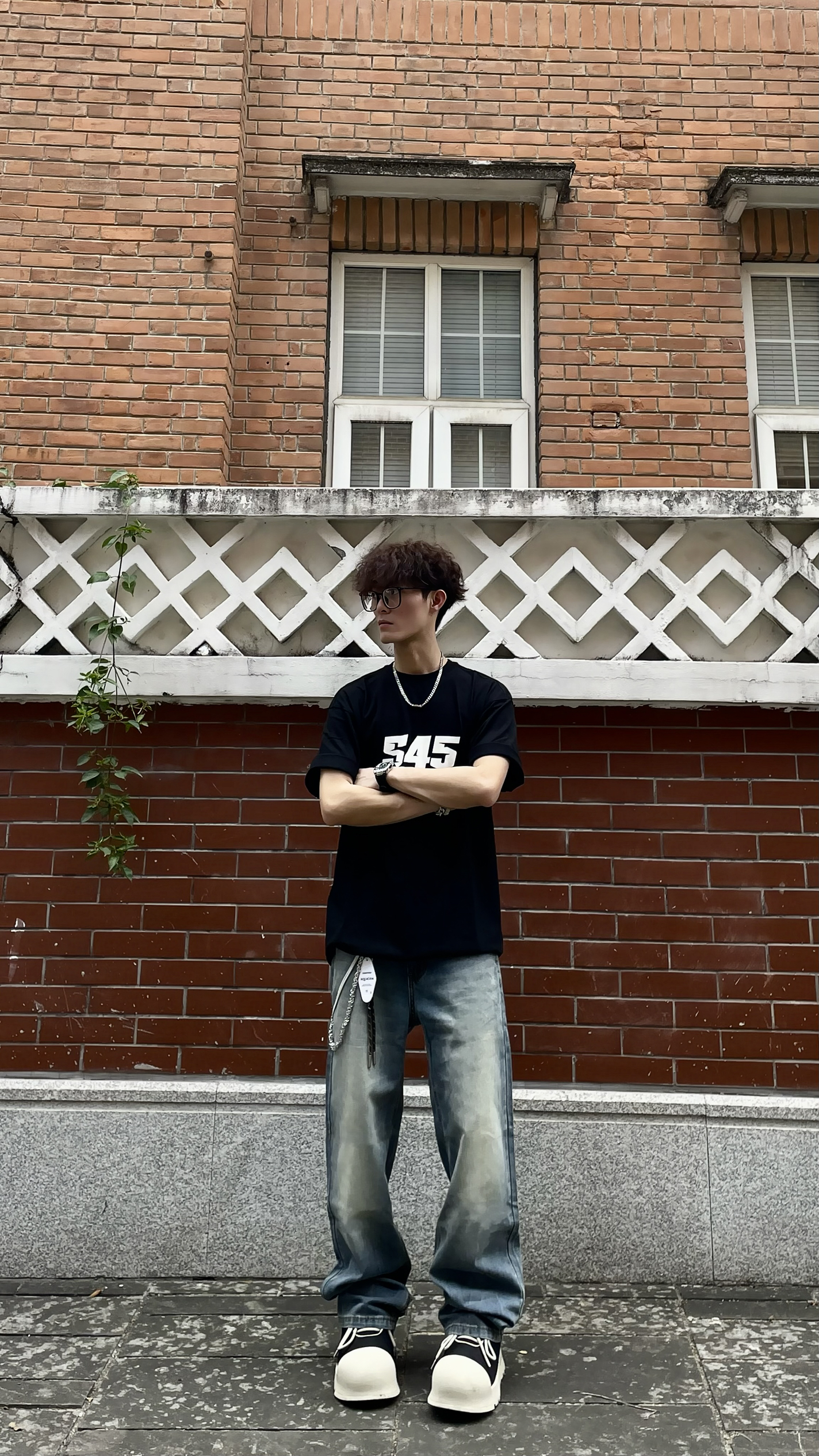 🏝️春季男生如何穿出氛围感,快来study一下这套美式街头感搭配🎲 🧑🏼🦱简单的介绍今天的穿搭 📸黑色大Logo字母印花短袖➕浅蓝色天丝莱赛尔牛仔裤 — — — — — — — — — — — — — — — ①OOTD 👔 S45 基础大Logo字母印花短袖,纯棉重膀克数面料,宽松休闲的款式,上身百搭通勤,美式小圆领设计不易松垮 — 👖 惊浪 天丝莱赛尔牛仔裤,宽松拖地阔腿直筒版型,上身...