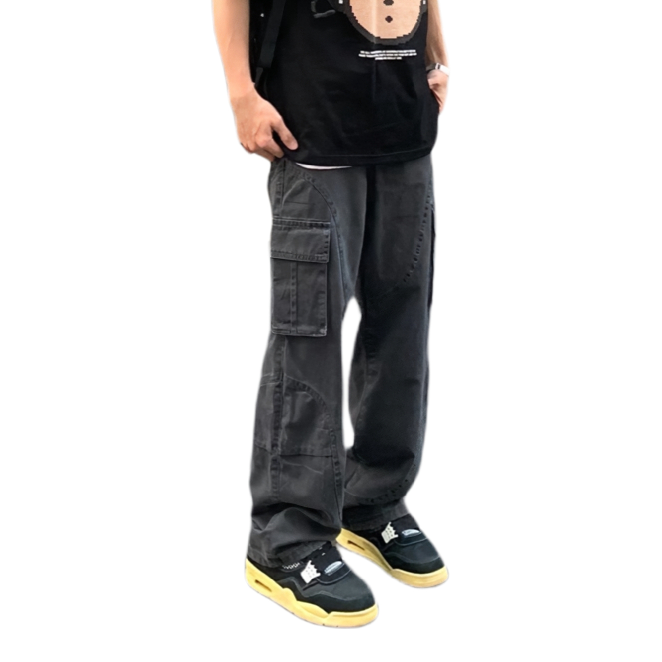 👕推荐单品:一款黑色复古的牛仔工装裤 🛒推荐理由:整体一个黑色小牛仔的工装裤 整体是微喇的显腿瘦长 整体质感也是很不错不会起球 也非常百搭 🧍🏻尺码对照(身高|体重):176 87 💰价格参考:¥88