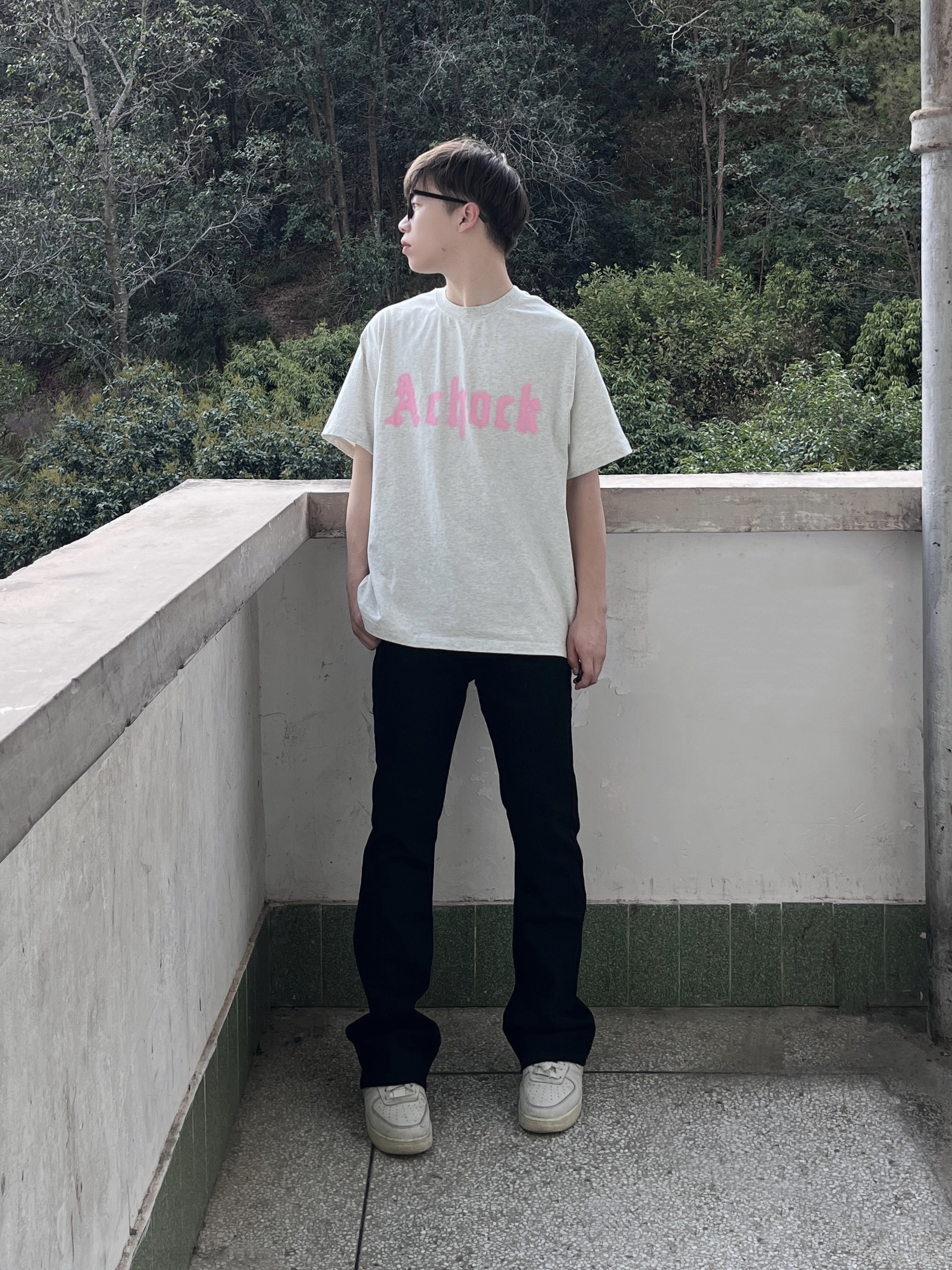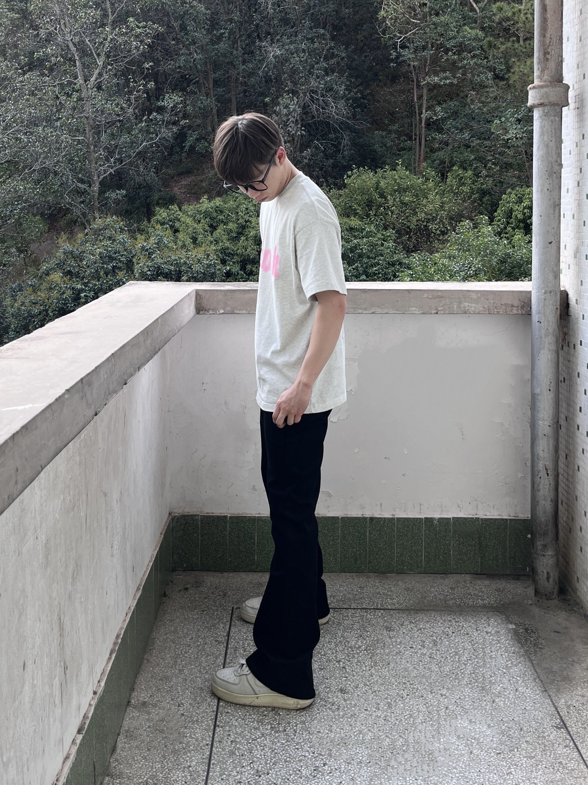 今日份穿搭分享look👀 花灰色印花短袖搭配 新因素 家的黑色微喇牛仔裤👖 颜值简约时尚 水洗面料舒适透气 穿上后版型宽松显腿型 一套搭配下来 户外出街美式风拉满🔥