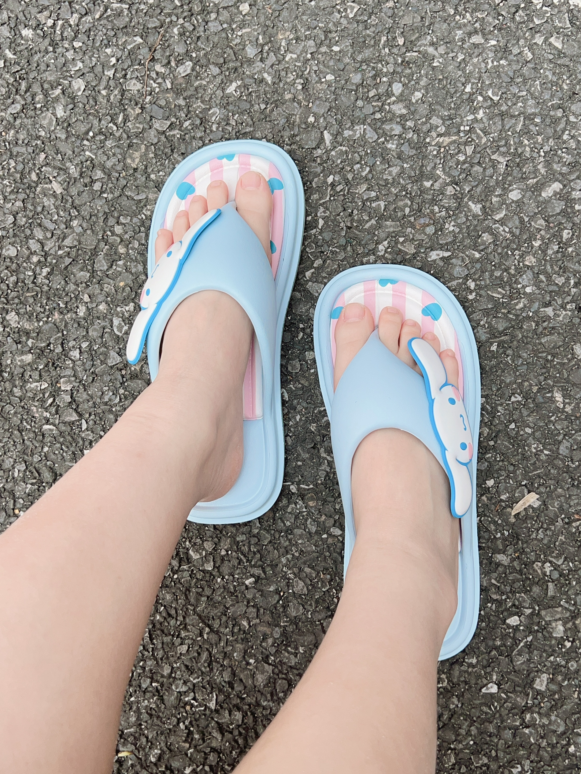 这不换季啦广东这个时候天气蛮热的了 当然少不了要穿人字拖鞋啦 这款拖鞋是大耳朵狗可可爱爱的 上脚穿舒适 走久不觉得累jio 鞋底防滑耐磨的 下雨天穿都可 日常溜达或夏日穿去逛街都可