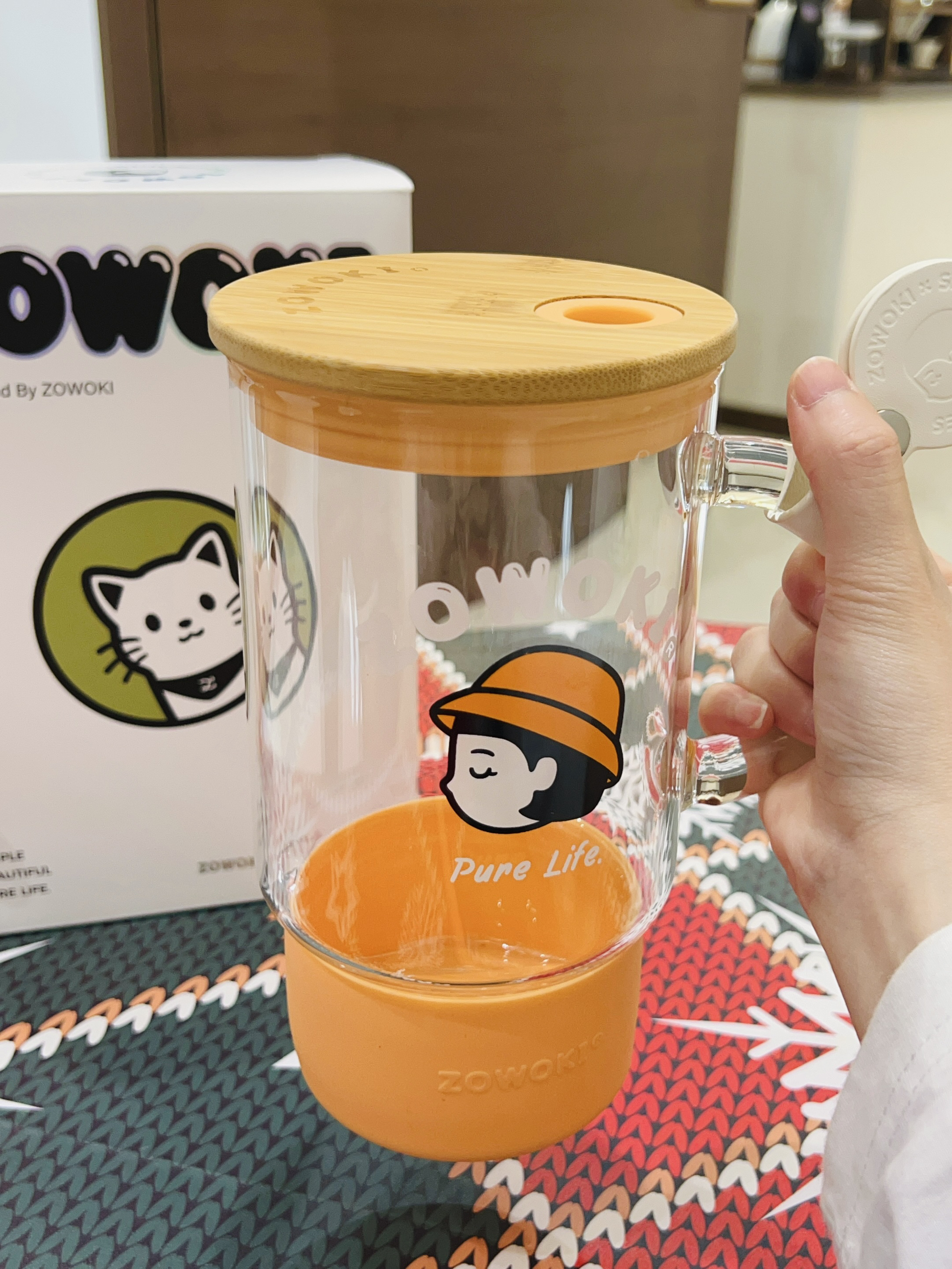 这不换季啦当然要准备新的喝水搭子 造物集这款新品水杯好好看啊 橙色配色蛮清爽的好适合夏天 玻璃材质闻着无异味 质量安全 把手握着hin舒适 放在办公桌都可 夏日可以泡点冰饮料喝尊嘟奈斯