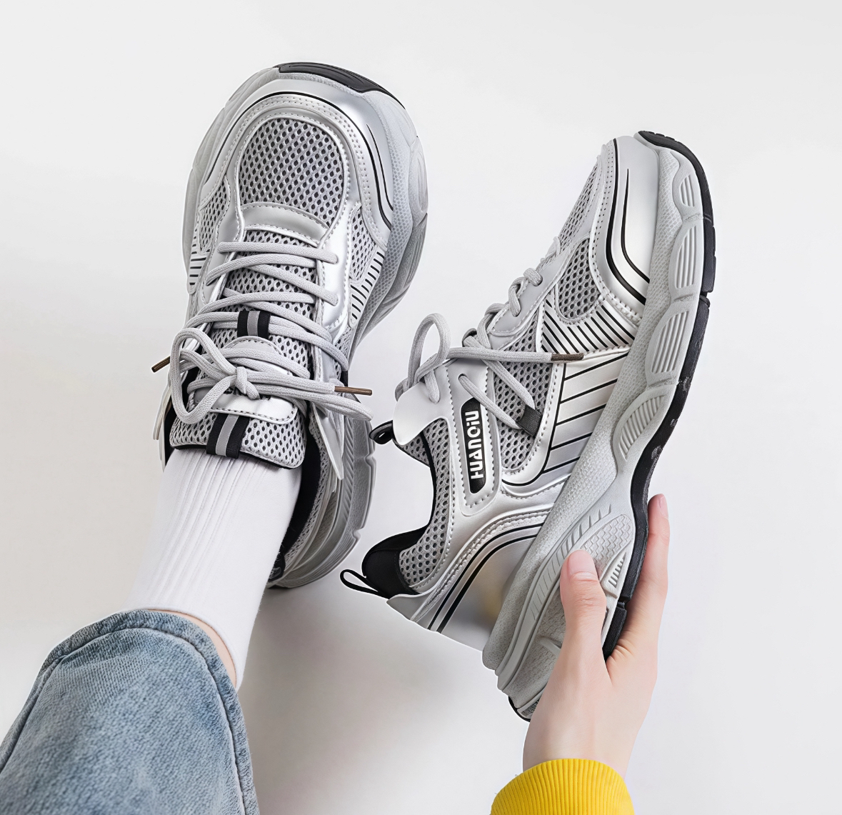✅还在纠结选哪双女款老爹鞋?环球这款银灰低帮老爹鞋绝对是你的不二之选! ✅PU织物材质,透气不闷脚,就算夏日出行也清爽自在。鞋底耐磨,日常通勤、逛街暴走都不怕磨损。 ✅经典的低帮设计,搭配简约银灰色调,轻松适配各种风格的服装,无论是休闲风还是时尚风,都能完美驾驭,让你时刻走在时尚前沿,还不赶紧入手?