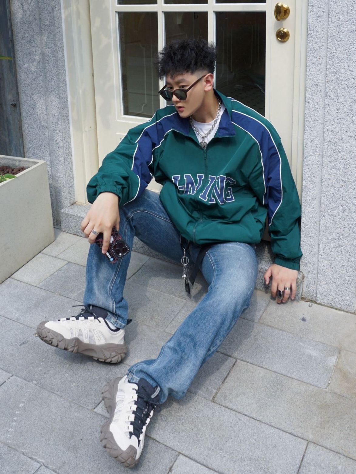 烫完莱斯利卷,出门被朋友叫泰迪哈哈 混血少年出街减龄又拿捏清爽Vibe 一件李宁荷叶风衣十蓝牛仔叠搭,蓝绿色嘎嘎显白 用“上宽下窄”穿法修饰比例💯显高显腿长,踩一双李宁沙丘山系老爹鞋,简约不简单 图源网络侵删