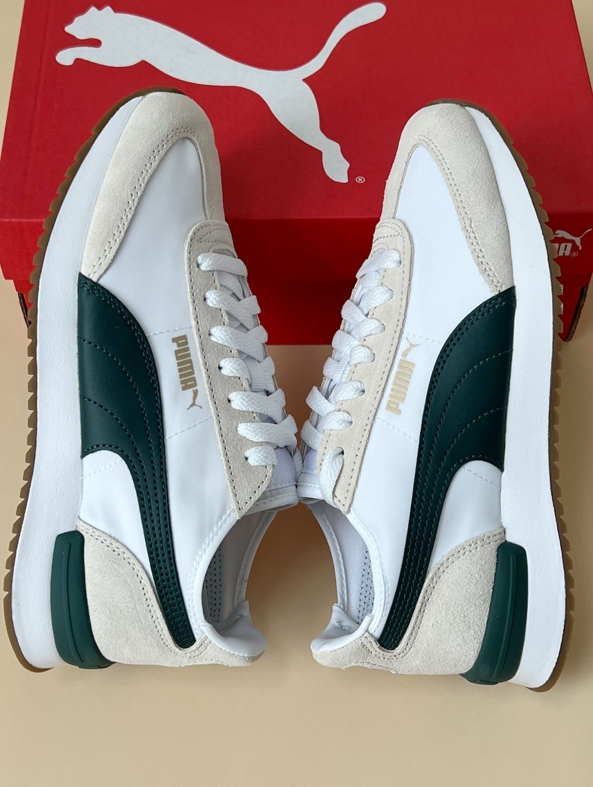 PUMA R78 Wind Nylon 防滑耐磨低帮运动休闲鞋 织物与翻毛皮的拼接鞋面,舒适透气。 泡沫的中底,柔软舒适行走无压力也很轻便白绿的配色,清新百搭。是日常通勤百搭款。 #公主请收鞋 #休闲鞋才是真chill #一双鞋打造春日松弛感 #下双鞋我选轻熟风#这双我的时尚新宠