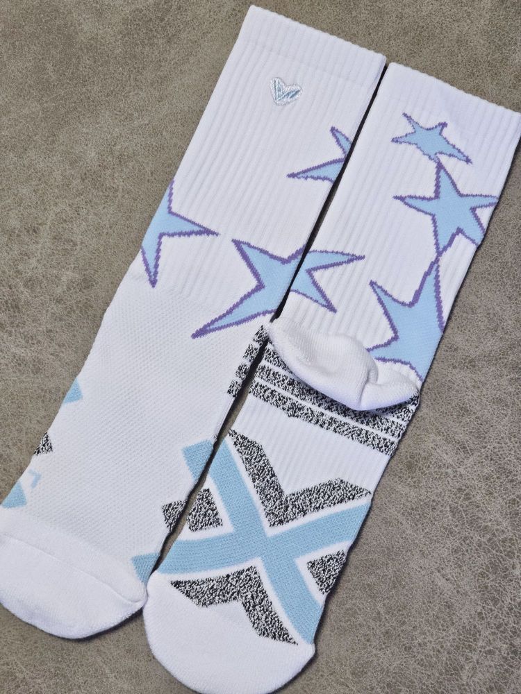 今天球场穿这双~ 袜子是维动的璀璨星星PRO篮球袜~ 外观挺炫酷,还蛮适合作为潮袜来搭配潮鞋穿搭,另外性能方面防滑缓震透气等也挺到位~ 球鞋是萨布丽娜2~ 这套装备可以说是有颜有料了吧,户外穿搭也很不错哦!