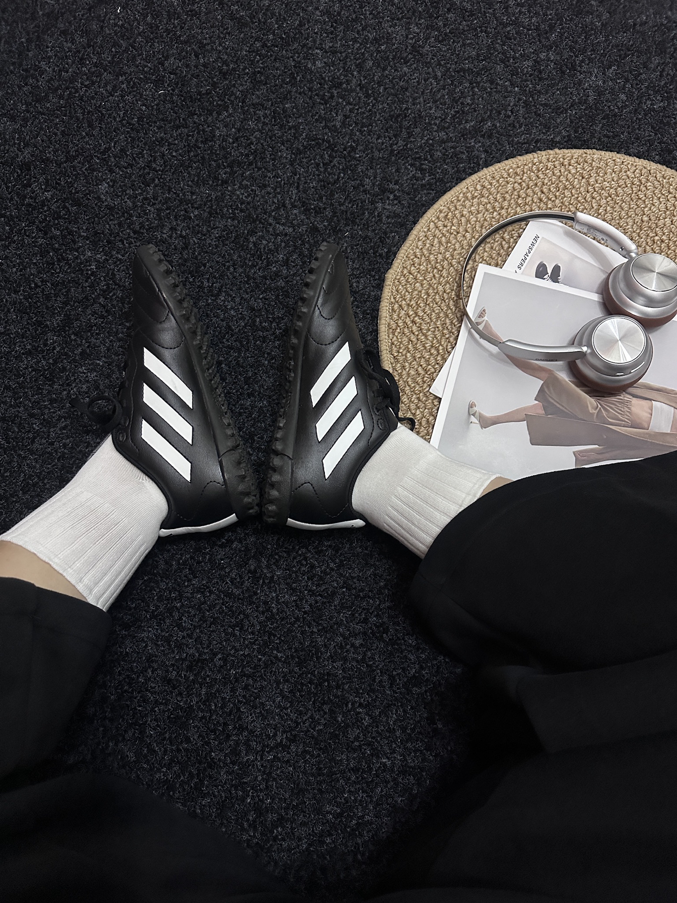- 外套入手s码上身刚刚合适,就是衣摆做了松紧如果拉上拉链穿会有点点不是很舒服,所以喜欢敞开着穿,个人追求慵懒随性的感觉。上身效果很喜欢,经典的黑白配色,男女都能穿,平时也比较好搭配下装。 - 鞋子买的儿童款,对应🇨🇳尺码就是35码,穿着Citywalk半天了没有脚痛,也算是刷新了我对足球鞋的印象啦!😄 - 这顶Adidas的硬顶鸭舌帽鸭🧢真的很爱,硬顶设计也不容易变形,携带收纳还是很方便的,所以...