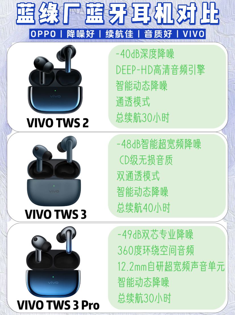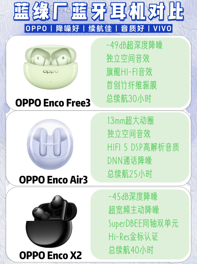 本篇笔记关联了vivo TWS2 入耳式 蓝牙 耳机 真无线 主动降噪 动态降噪 低延迟 舒适 皓月白、OPPO Enco X2 入耳式 蓝牙 耳机 骨传导 主动降噪 真无线 充版 凝霜白、vivo TWS 3 入耳式 蓝牙 耳机 降噪 真无线 无损音质 低延迟 超长续航 听海蓝等商品,为用户提供真实的使用体验和购买参考。
