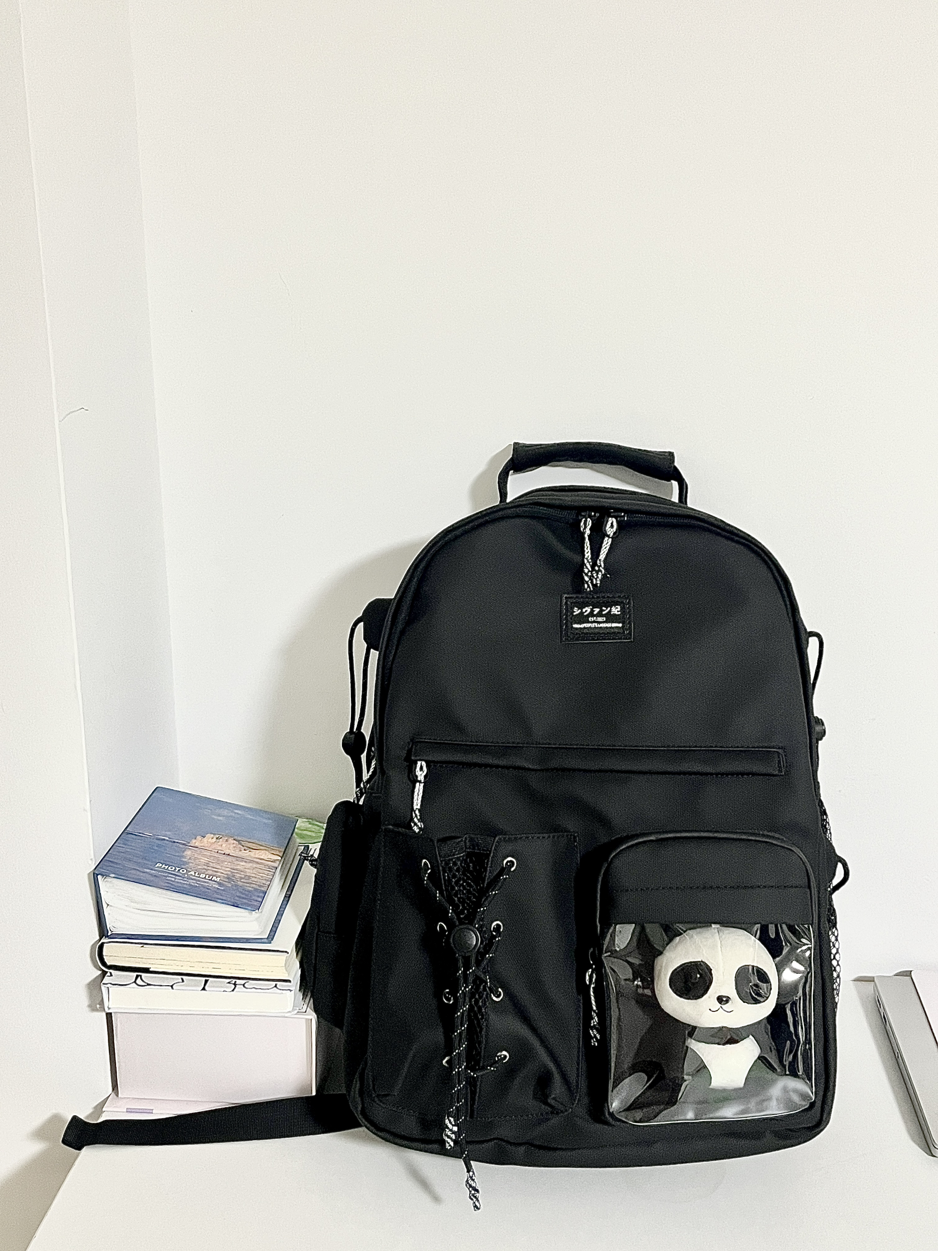 百元的双肩包超好背的 纯黑色设计百搭不挑衣服 轻松背出少年感 背包容量很大 可以放下我的ipad、水壶 学习、通勤都可以背 真的太方便实用了