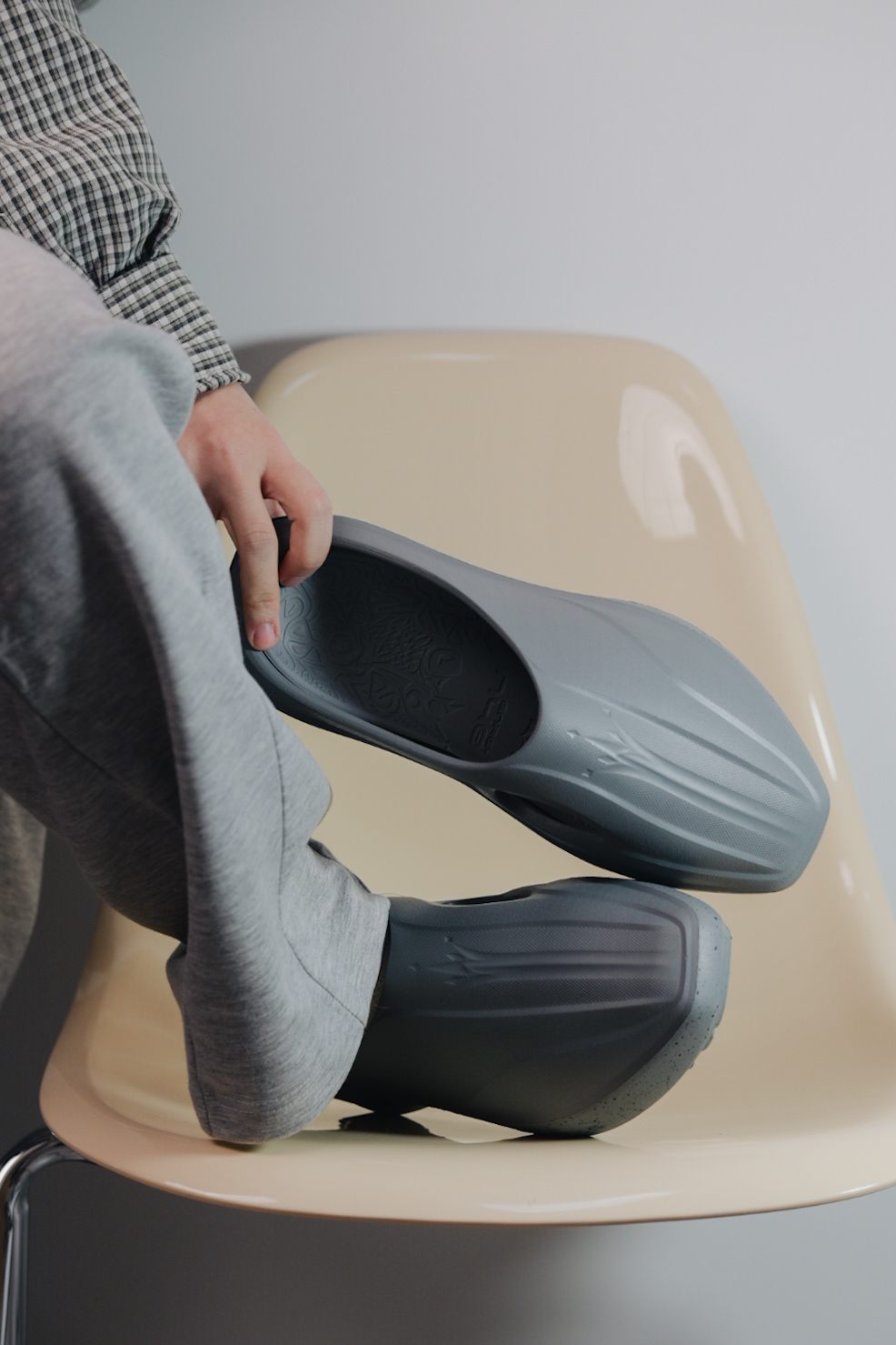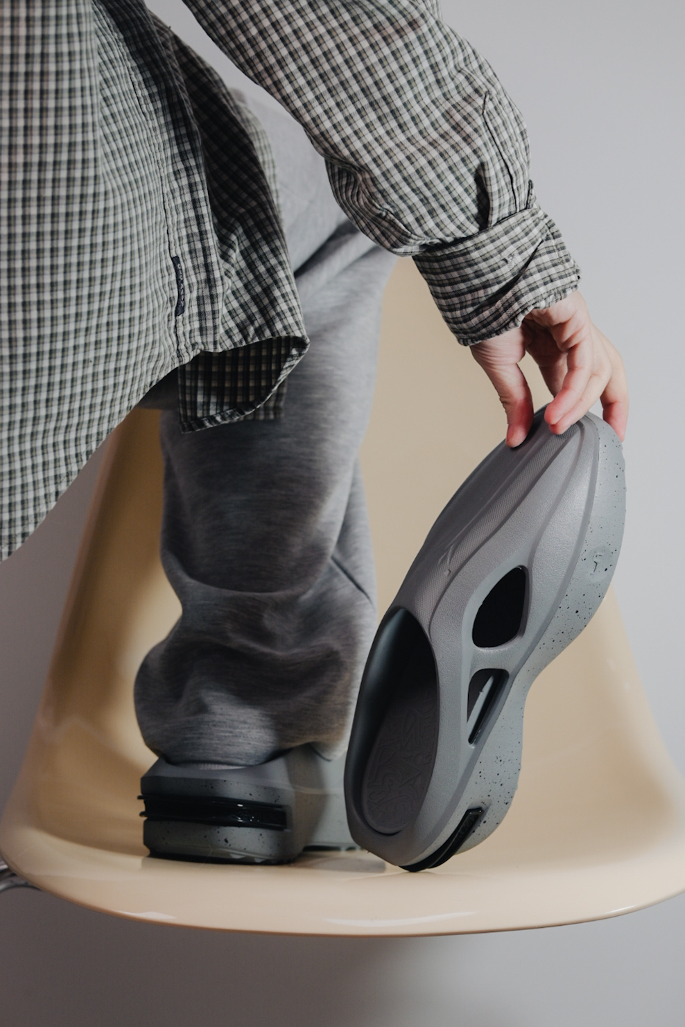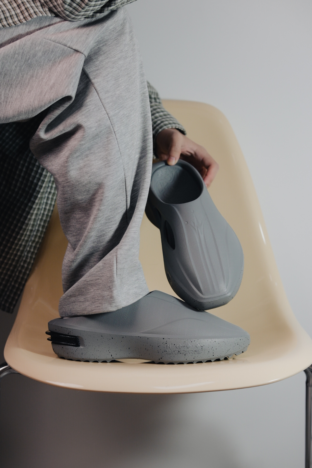 好久没有看到这么酷的拖鞋了 关键是后跟这个小设计怎么拍都觉得好看! 配色部分我自己是觉得这个配色耐脏 完了搭配也没有难度 我灰色系直接无脑搭配✌🏻