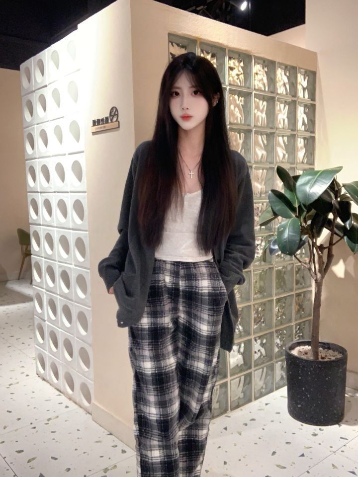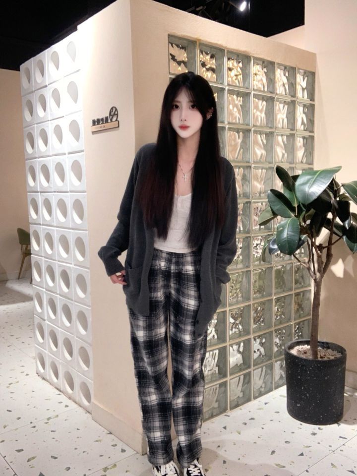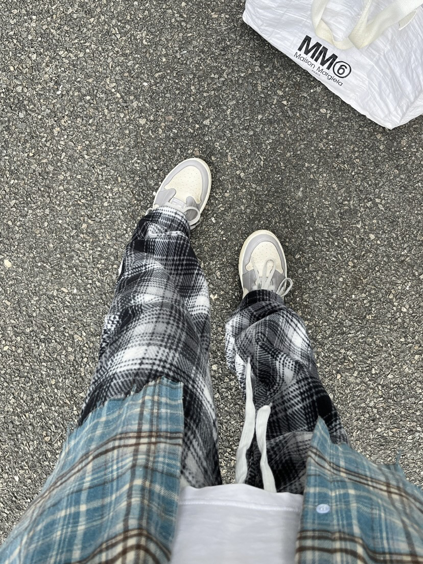 一到春天就犯困~ 🖤上身 HELIPORT 格子长裤 半松紧腰的设计 梨形身材穿也合身! 复古摇粒绒面料设计 不怕突然的降温 男女可穿不挑人 可以和对象一起搭配情侣装~