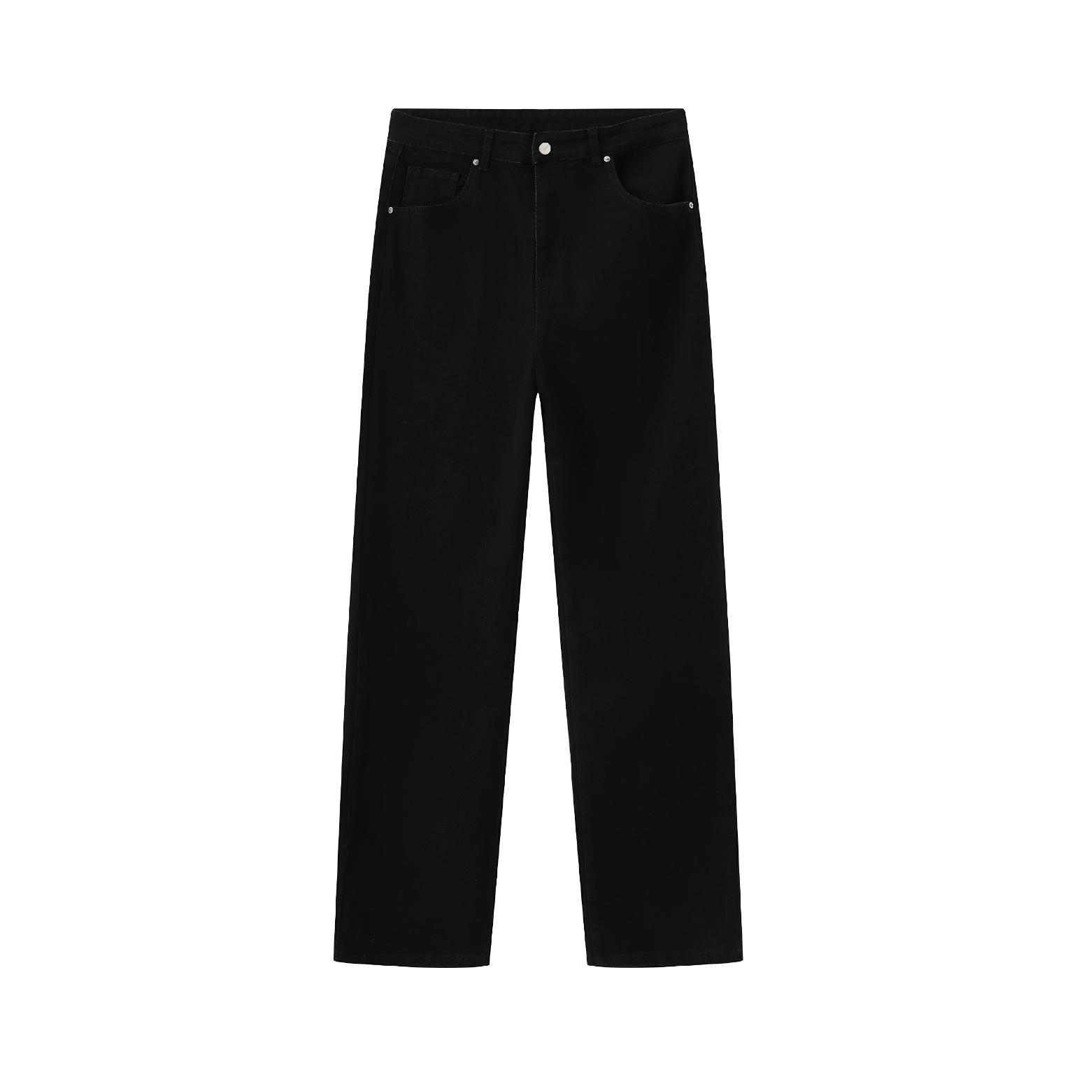 春天喜欢穿点简简单单的~ 🖤穿了 HELIPORT 破碎感皮标牛仔裤 宽松直筒版型有弹力 修饰腿形效果好! 男女可穿不挑人 和对象一起搭配情侣装
