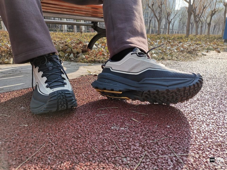 李宁这回出的鞋颜值可以,我穿了两个月,前掌很软弹,后掌一般,可能是因为它有放水设计,鞋有一些闷脚,夏天可能不太适合,鞋子单只400多克,按照它户外鞋的类型来说,中规中矩吧,鞋底防滑性很好,湿的大理石砖,踩上去也不会滑,大厚底让你在户外乱石路,穿上有一种安全感,以上就是我的穿着体验,谢谢