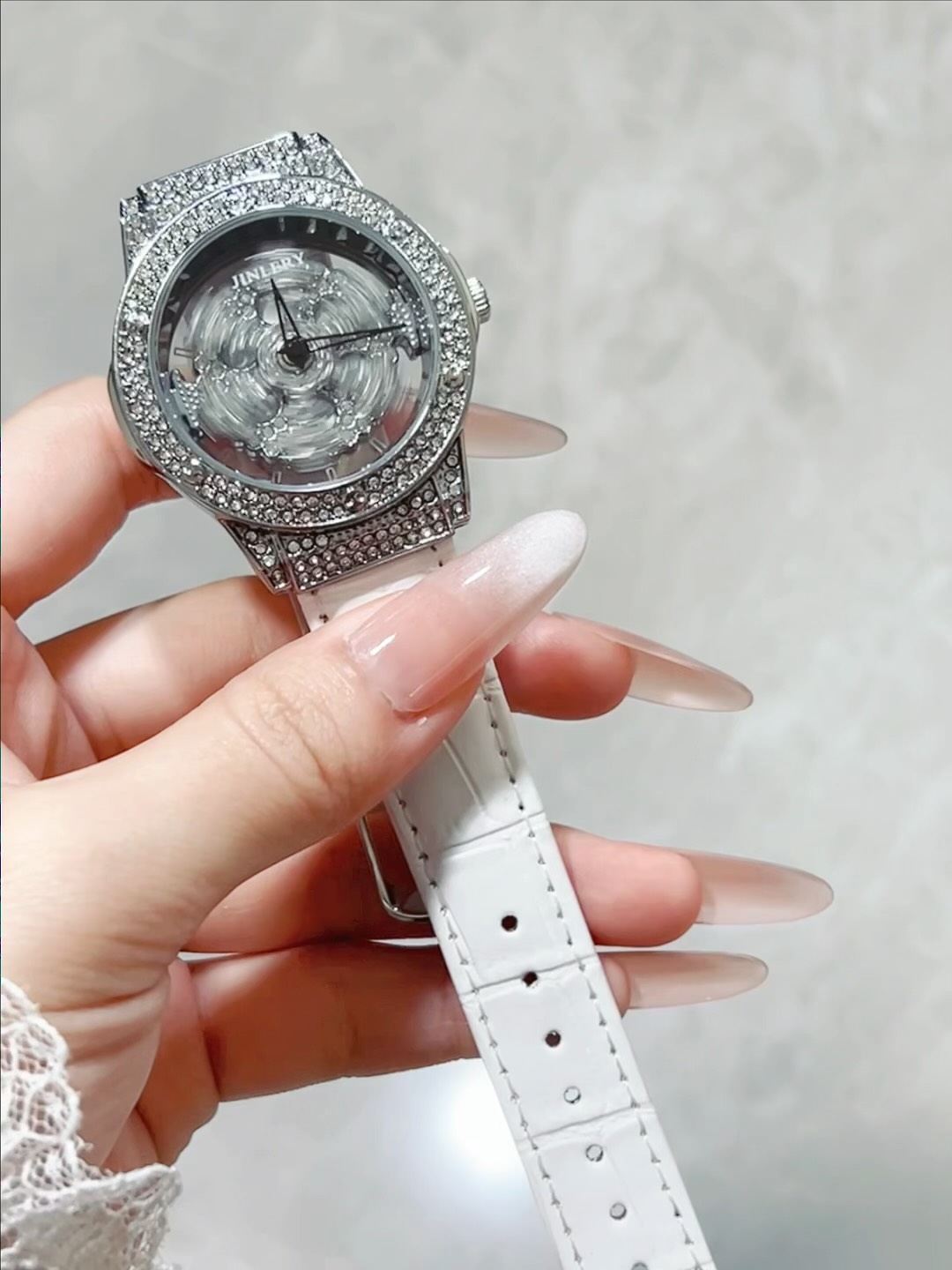 本篇笔记关联了JINLERY/精利 雪花系列 41mm时来运转五芒星满天星轻奢简约小众时尚镂空旋转表盘防水皮革表带石英女士手表 白色 JH1001-A等商品,为用户提供真实的使用体验和购买参考。