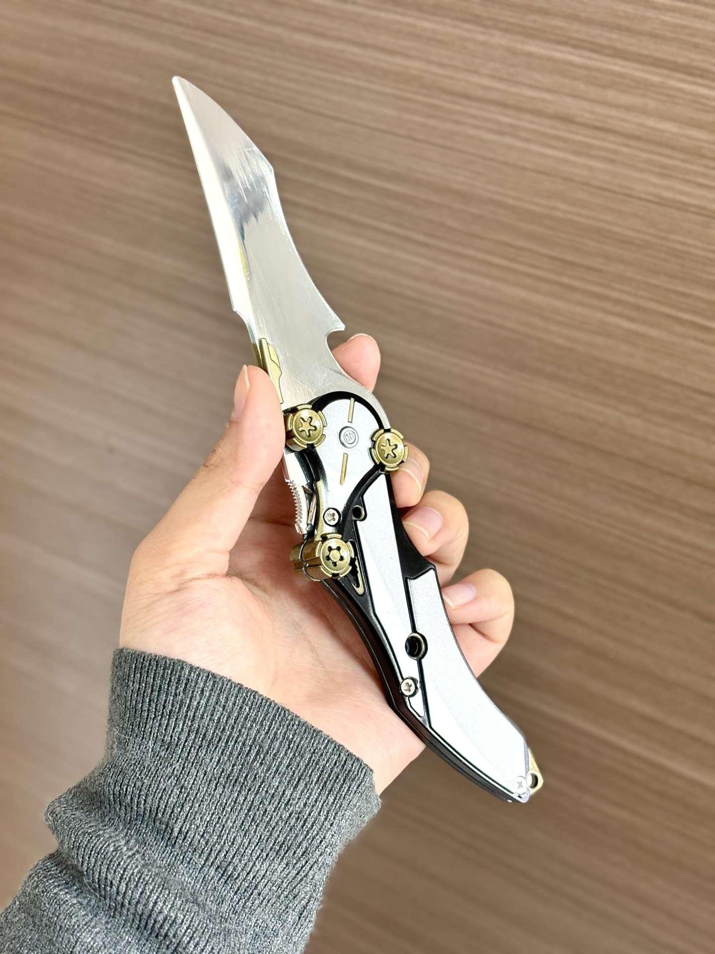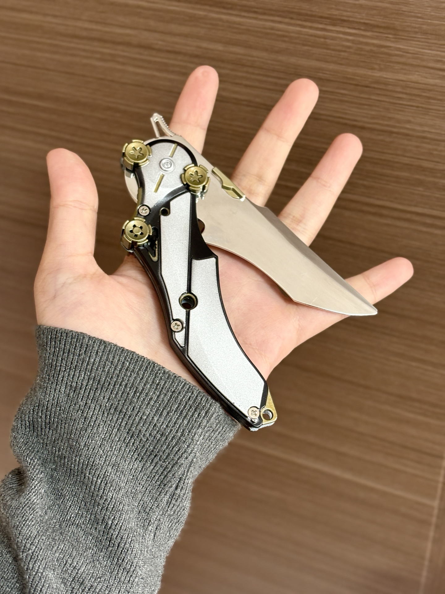 三角洲行动蝴蝶刀,帅炸了 钛合金冷光划破死寂,0.3秒致命优雅。 战术几何刃纹暗藏三模切换:割绳/破窗/无声处决。 轴心消音轴承实现零震频开合,磁吸血槽自动清理战场痕迹。 当战术背心第三暗格震颤,这柄暗夜艺术品已吻过目标颈动脉——割裂阴影,破局无声。 tip:邪恶米塔都很爱