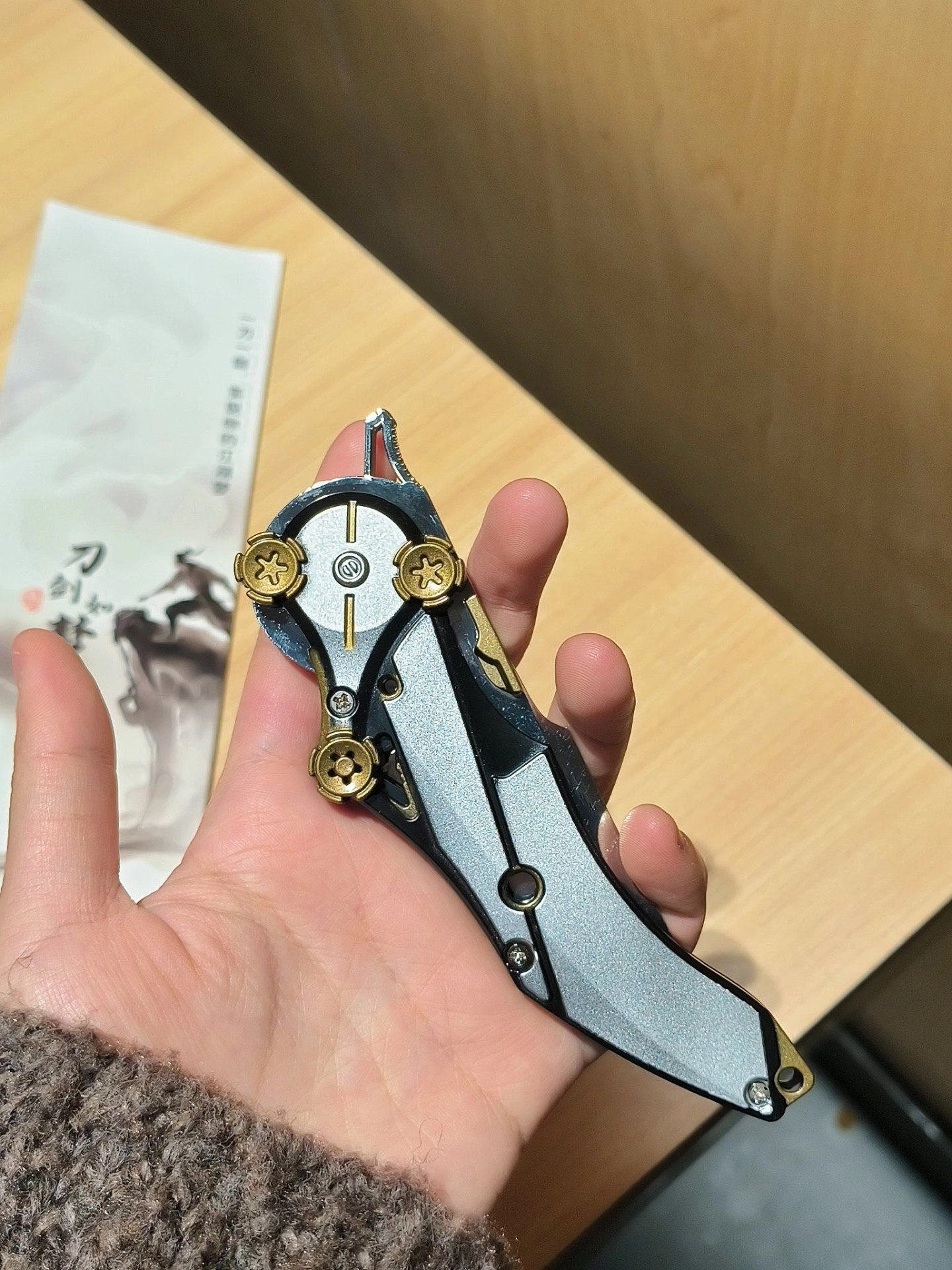 介个三角洲怜悯折叠刀周边!! 细节做工好还原 是可以折叠起来滴 上手质感吼吼有分量 在游戏里太爱这把刀刀了 现实拿到各种小细节都很到位 平常把玩一下感觉真不错! 解压送给男孩子也泰合适啦~