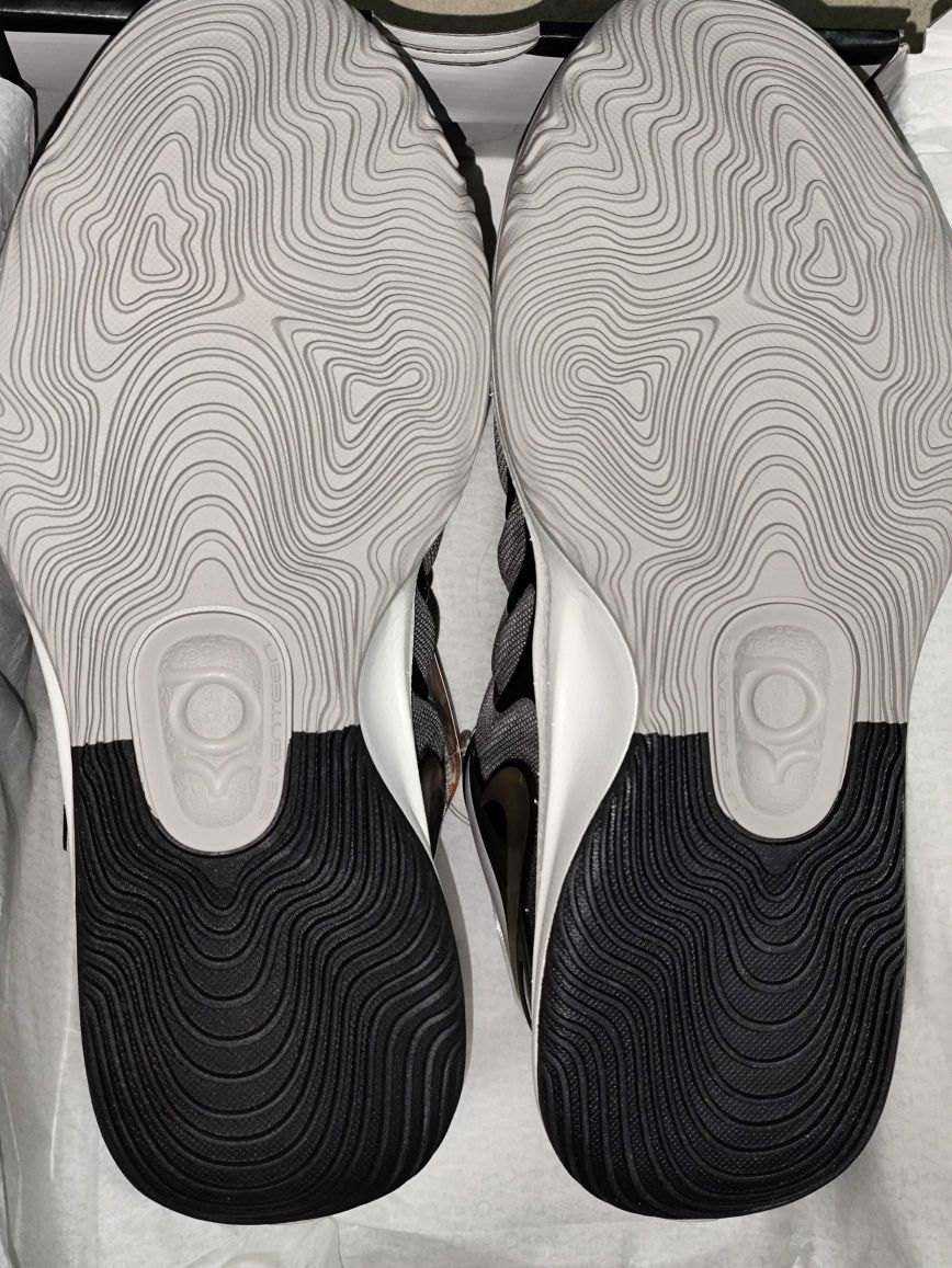 大家好这里是树33的球鞋频道,今天带来的是kd17黑白配色。 1.脚型适配:鞋面采用工程网布,舒适度延展性不错,拇外翻倾向较严重,但鞋面很柔软,上脚不明显,鞋头有压胶补强,鞋楦正常,宽脚适配。鞋舌厚实,全内靴设计高脚背不勒脚但鞋带调节范围不大,鞋带孔的软质tpu可以加强包裹。足弓处有泡棉上翻,tpu也可以增强包裹。后跟港宝硬度高,填充很厚实,不会掉跟。 2.中底:前掌梯形气垫加后掌airsole,...