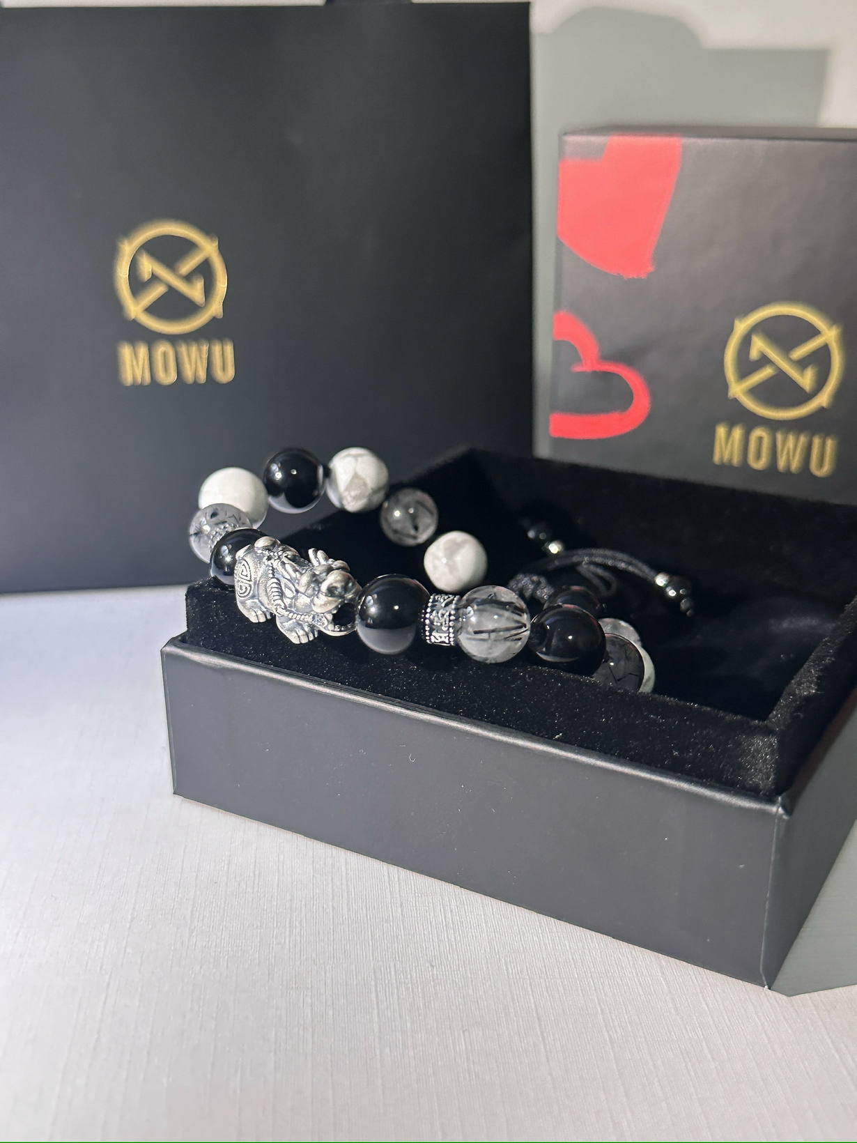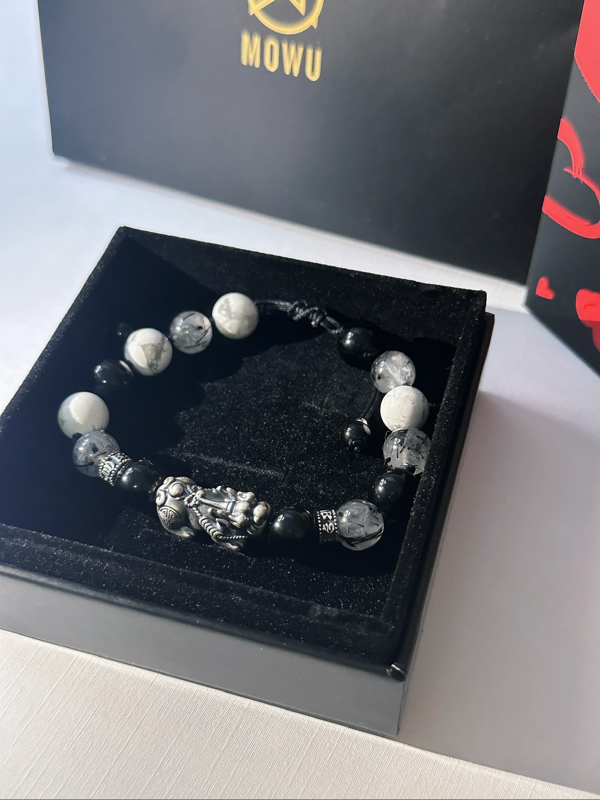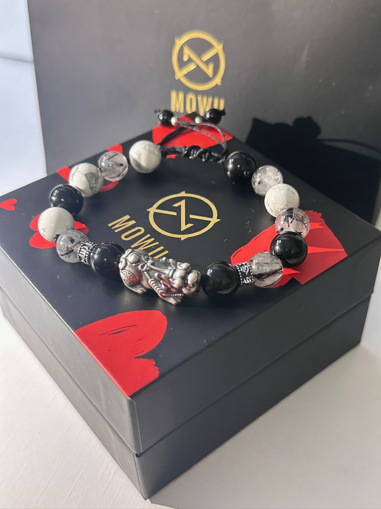 ✨最近种草的一款手串,真的很好看,现在出去都一直戴着 ✨这是貔貅手串,貔貅都有纳财好运一个说法,自从戴这个去打牌🀄️手气都变好了 ✨还是黑白的配色,水墨风的设计,真的很好看 ✨做工也很精细,上面那个貔貅也很亮眼,质感也很好 ✨还有礼盒🎁款很适合送对象和朋友