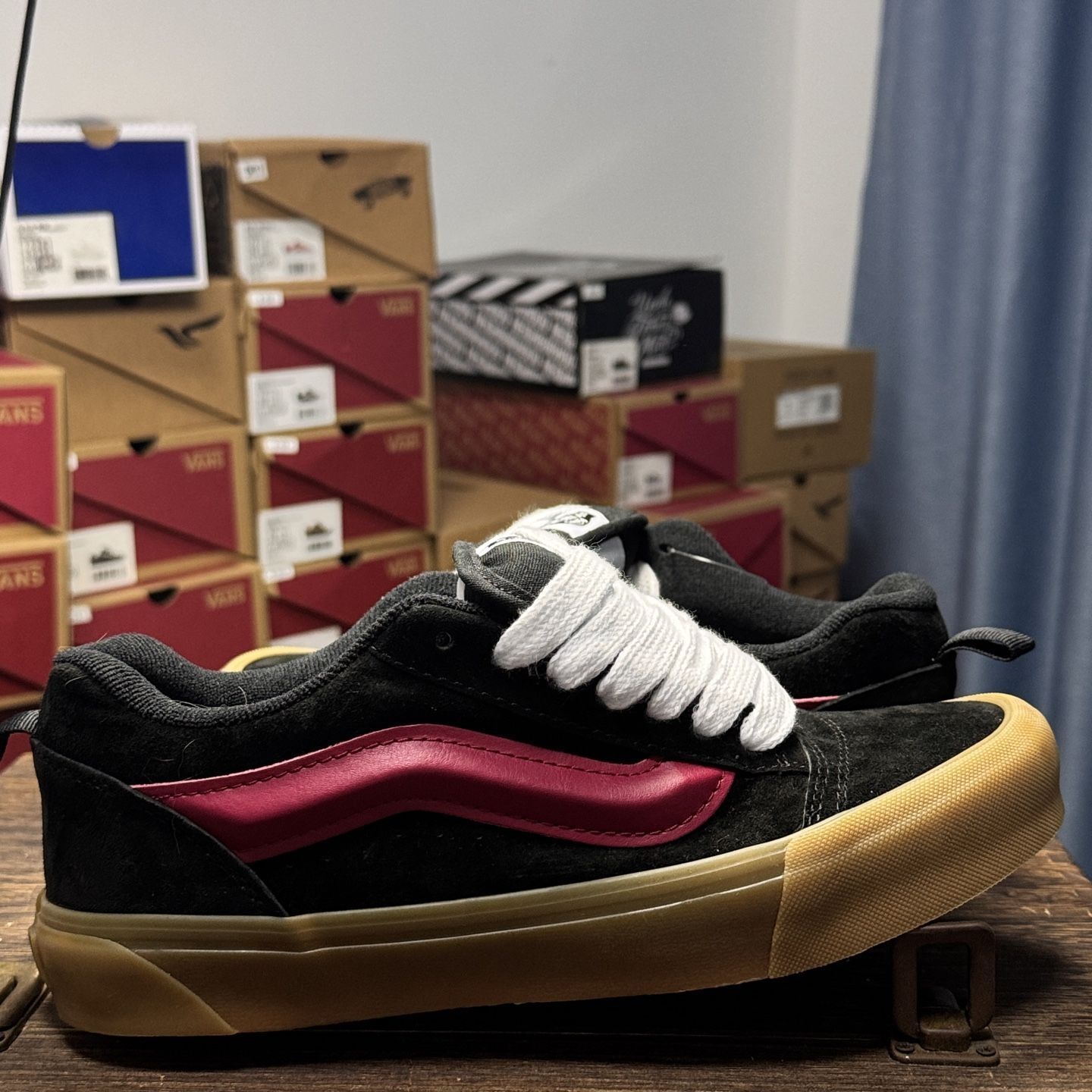 本篇笔记关联了Vans/范斯 Knu-Skool 面包鞋 滑板鞋 板鞋 复古美式时尚防水 黑色/粉色等商品,为用户提供真实的使用体验和购买参考。