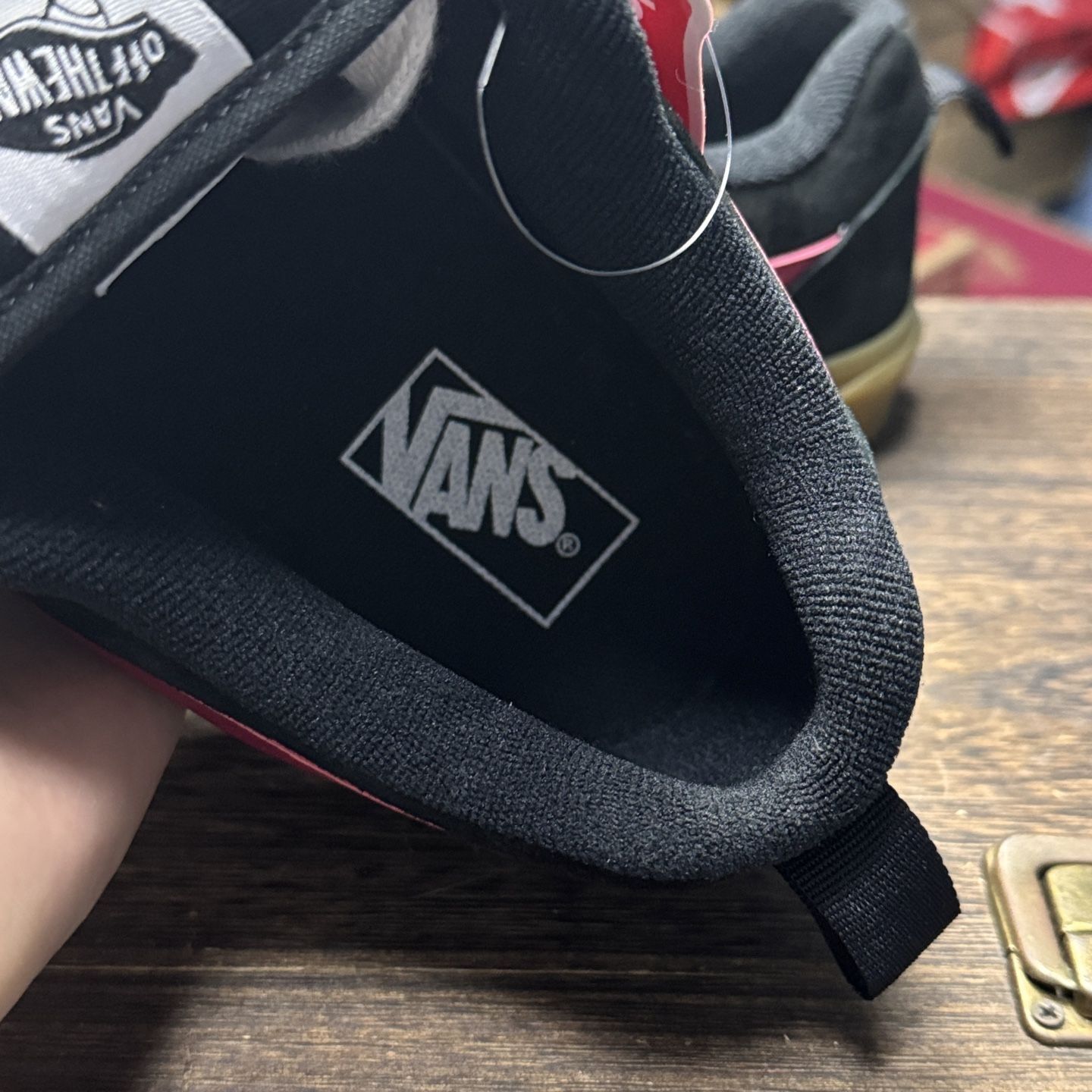 板鞋还是万斯好看 黑色的搭配耐脏的同时还有很多小设计 鞋LOGO处用了红色 非常亮眼 鞋子舒适度不错