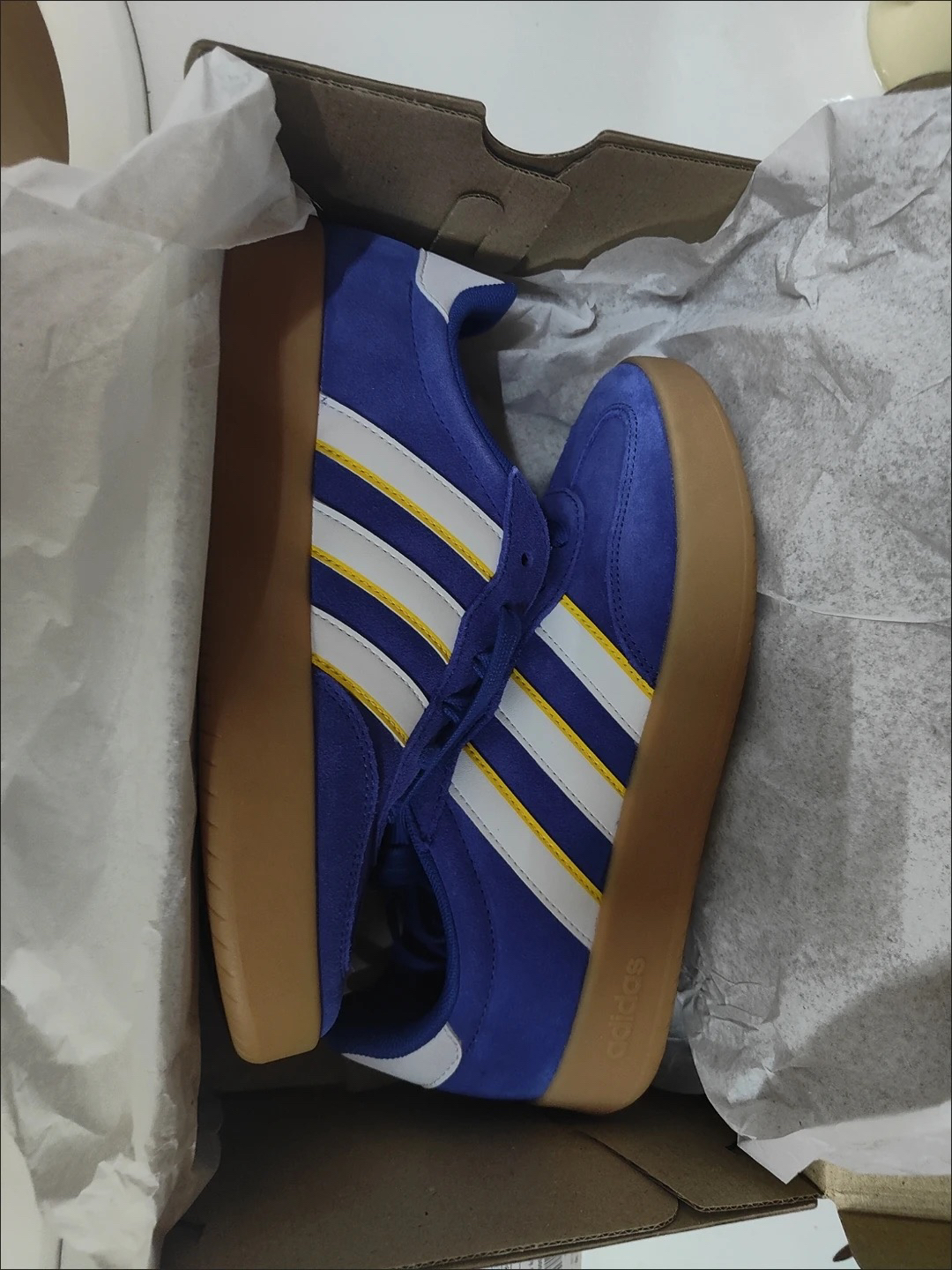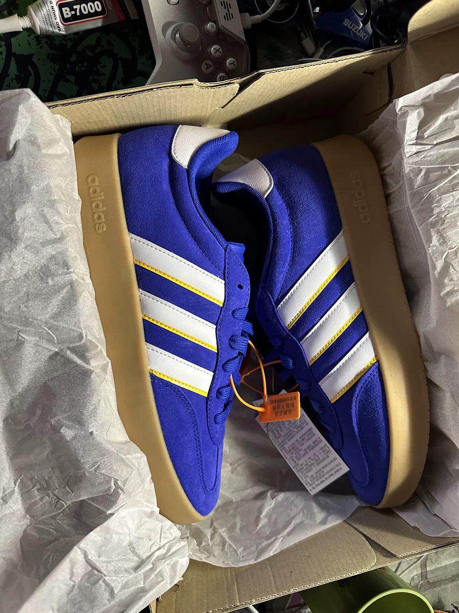 本篇笔记关联了adidas Barreda T头鞋 德训鞋 板鞋 低帮牛剖层革薄底 半荧光蓝/白色/银灰黄等商品,为用户提供真实的使用体验和购买参考。