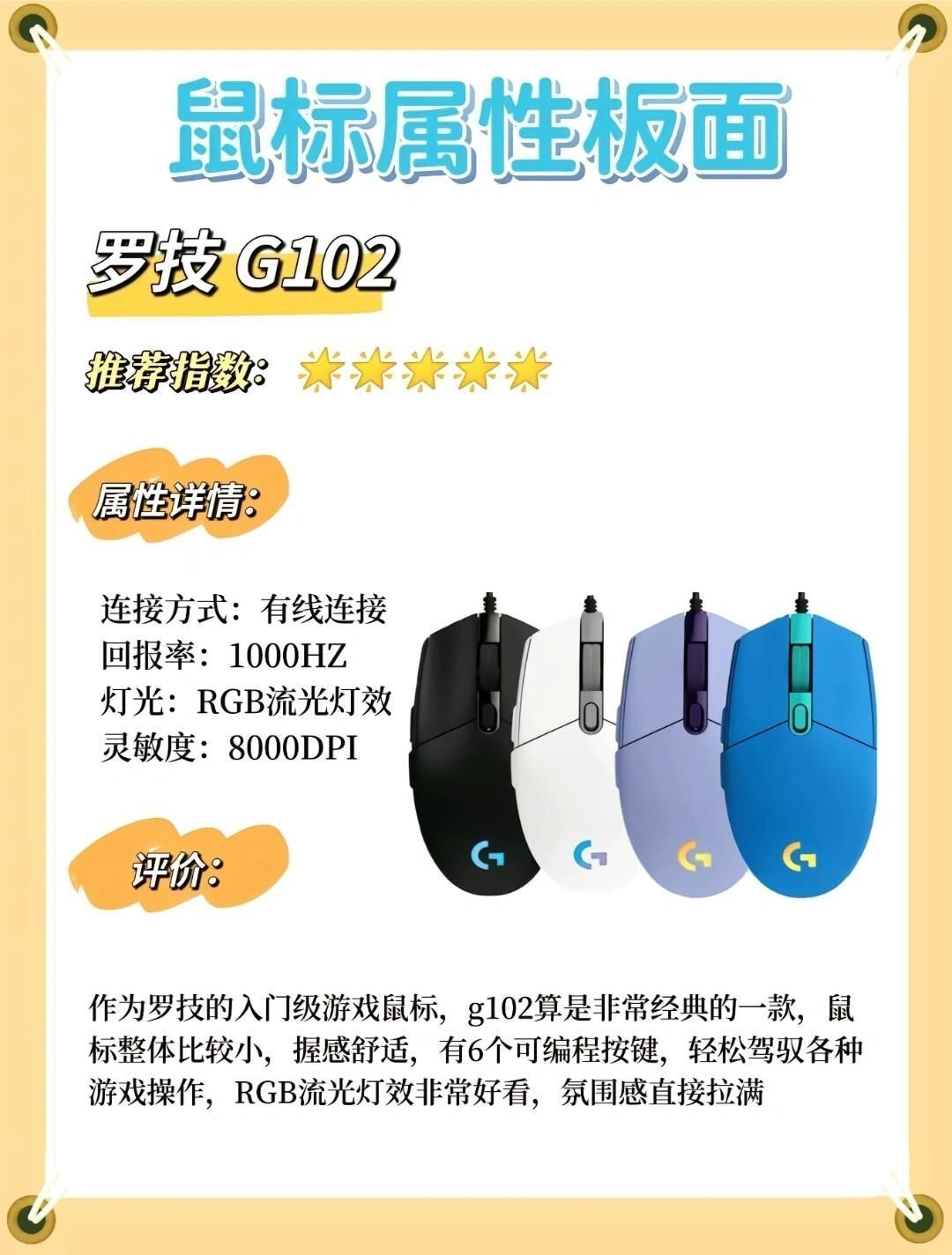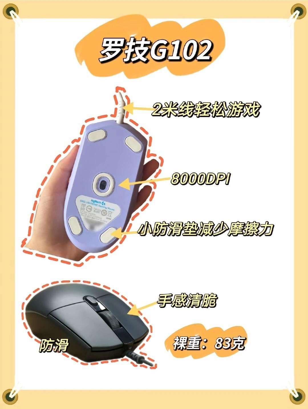 ☀️作为百元级别的游戏鼠标 罗技G102确实是神一样的存在 — 搭配游戏级8000DPI传感器 高达8800dpi让你能够精准定位快速出招 — 无论是FPS还是MOBA游戏 😎简直是上分神助攻,操作直接起飞 — 办公更是不在话下📚 都能轻松驾驭🎯 — 如果你刚入职场或者是在校大学生 一百元左右的游戏鼠标 — 罗技G102可以说是一个不错的选择 即可办公又可打游戏,选罗技G102会是你不错的选择!