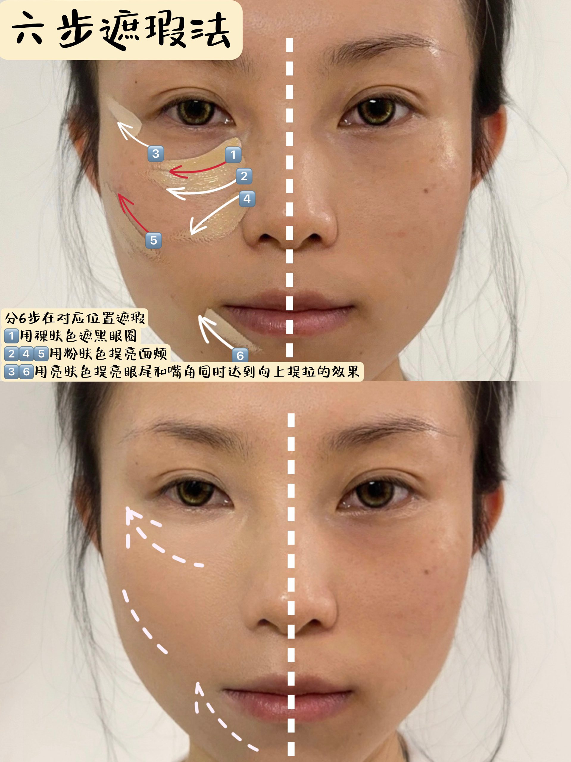 长期有收到很多宝子问眼妆如何做到这么干净的这个问题哈~今天说说 我脸部属于是暖白皮偏黄,面中有明显毛孔颧骨有斑以及色素暗沉型黑眼圈(熬夜党的“勋章”~ 直到发现foreverkey遮瑕! 01裸肤色:适合绝大多数的宝子全脸遮瑕 02粉肤色:中和遮盖较轻的黑眼圈以及脸部瑕疵 06亮肤色:提亮面中以及放大嘴角眼角向上提拉的效果 遮瑕方法: 1、用裸肤色遮黑眼圈 2、用粉肤色遮盖局部瑕疵 3、用亮肤色提...