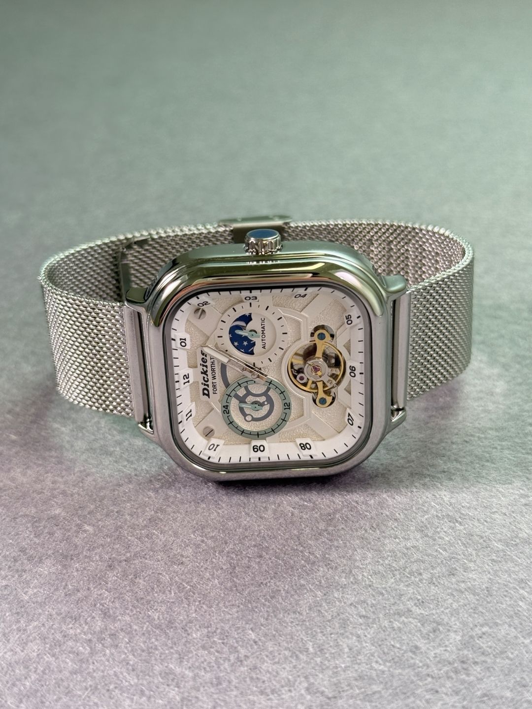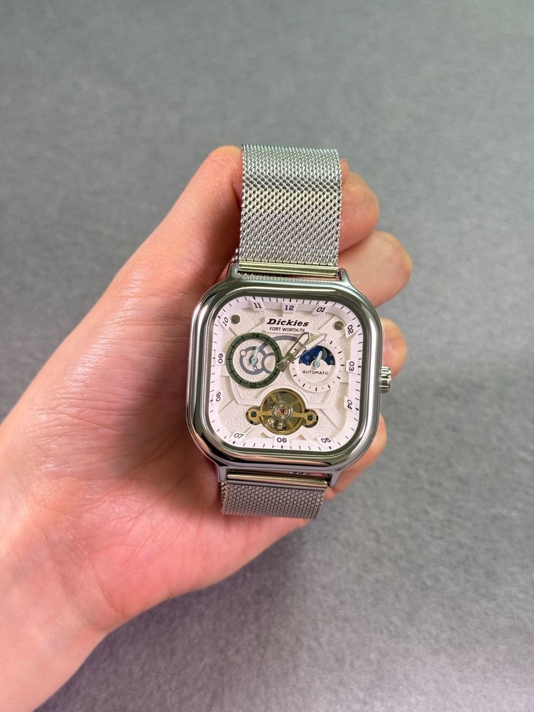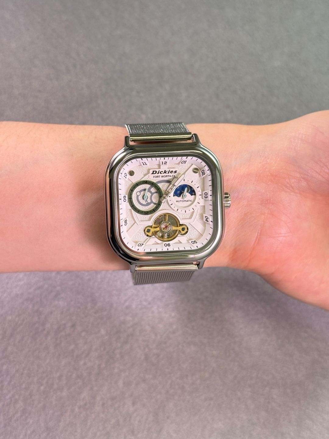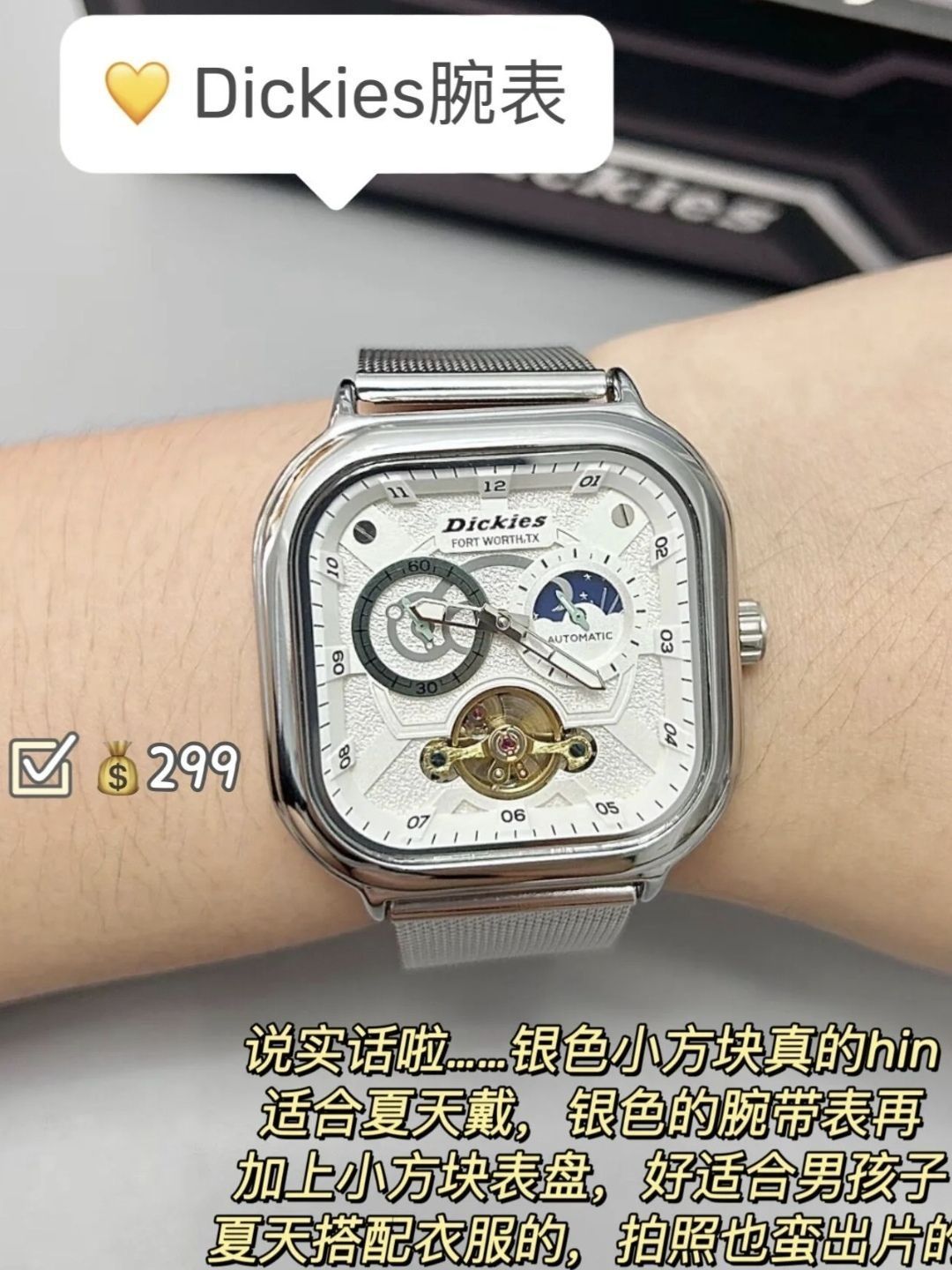 本篇笔记关联了Dickies/帝客 城市户外系列 轻奢日月星象潮流时尚方形日历百搭多功能夜光防水机械男女同款手表 银色等商品,为用户提供真实的使用体验和购买参考。