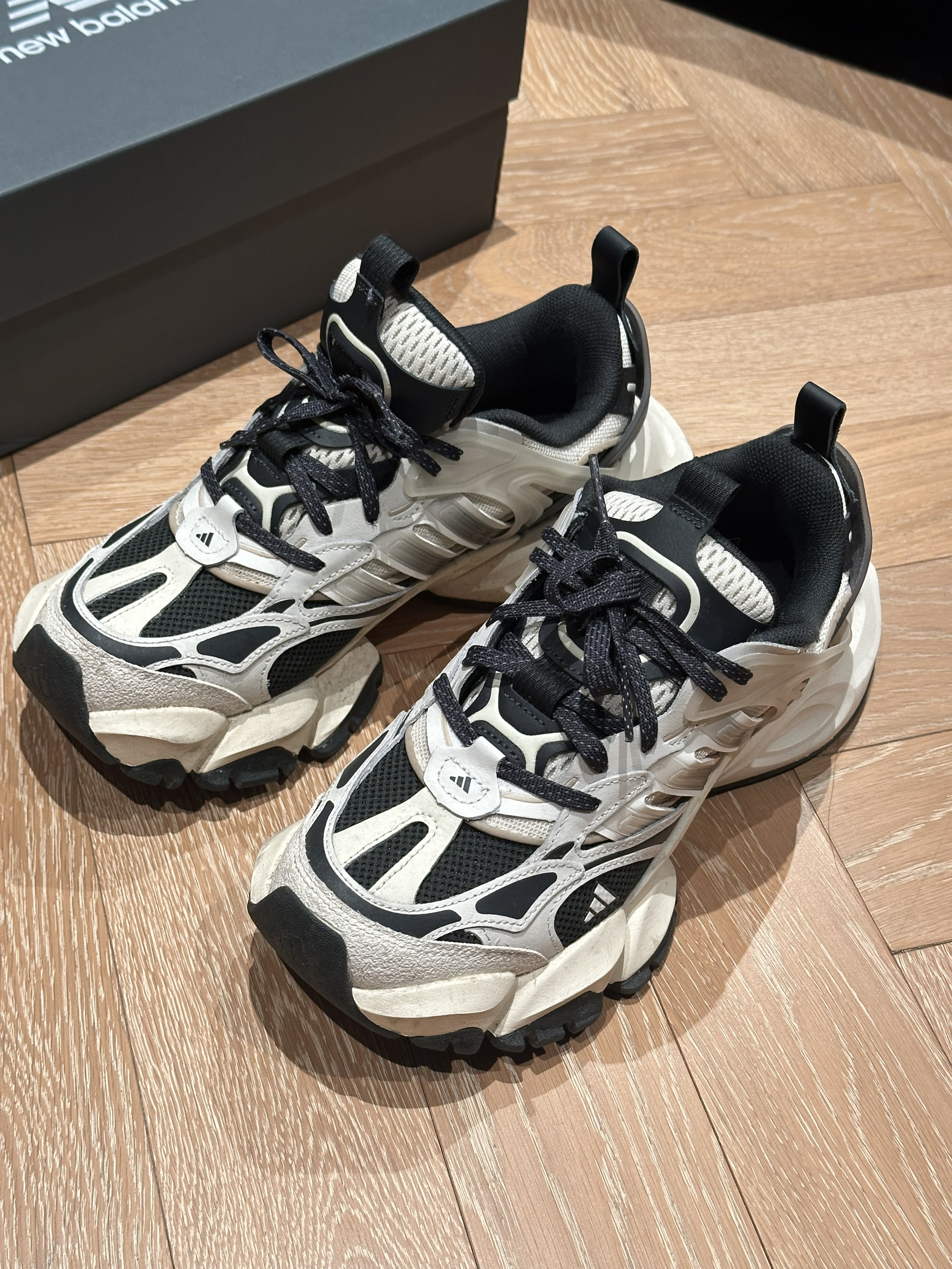 这双nb蛋壳鞋第一感觉就是设计独特 没想到上脚还很舒服 鞋底增高效果明显 大概5cm 很软弹 值得入手