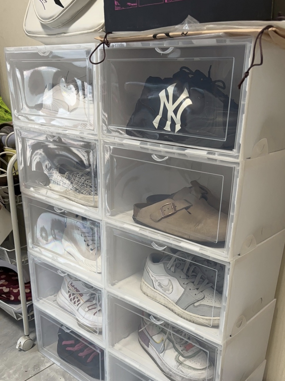 透明鞋盒真的特别香! 干净,整齐,好收纳,好拿取! 颜值还高!😎 👍花了不少冤枉钱🥹🥹🥹不过好在最后还是找到了好用的鞋盒!!太香了! 非常稳,摞到房顶了,还能在上面放东西!✌️ 图源网络,侵删!