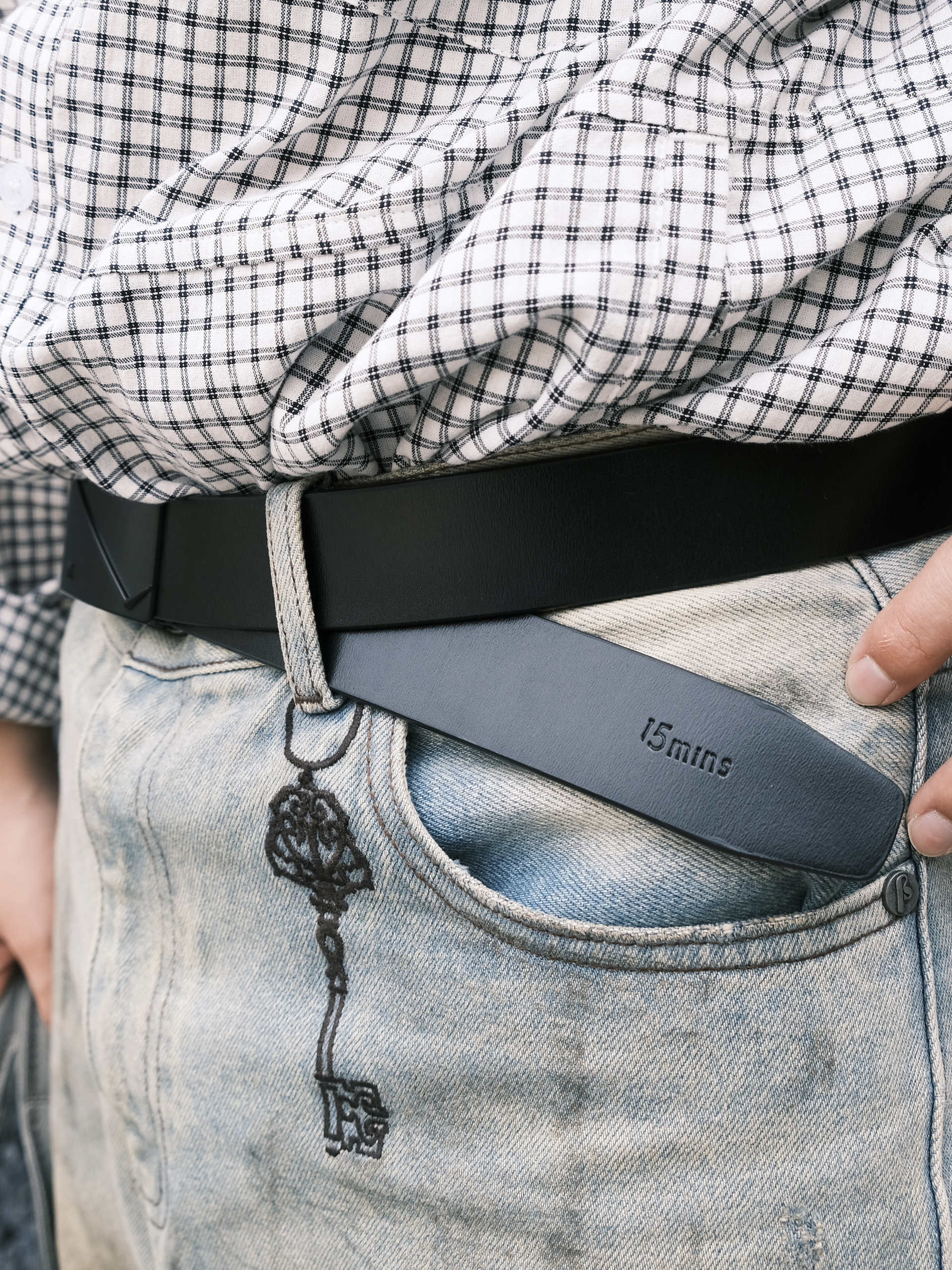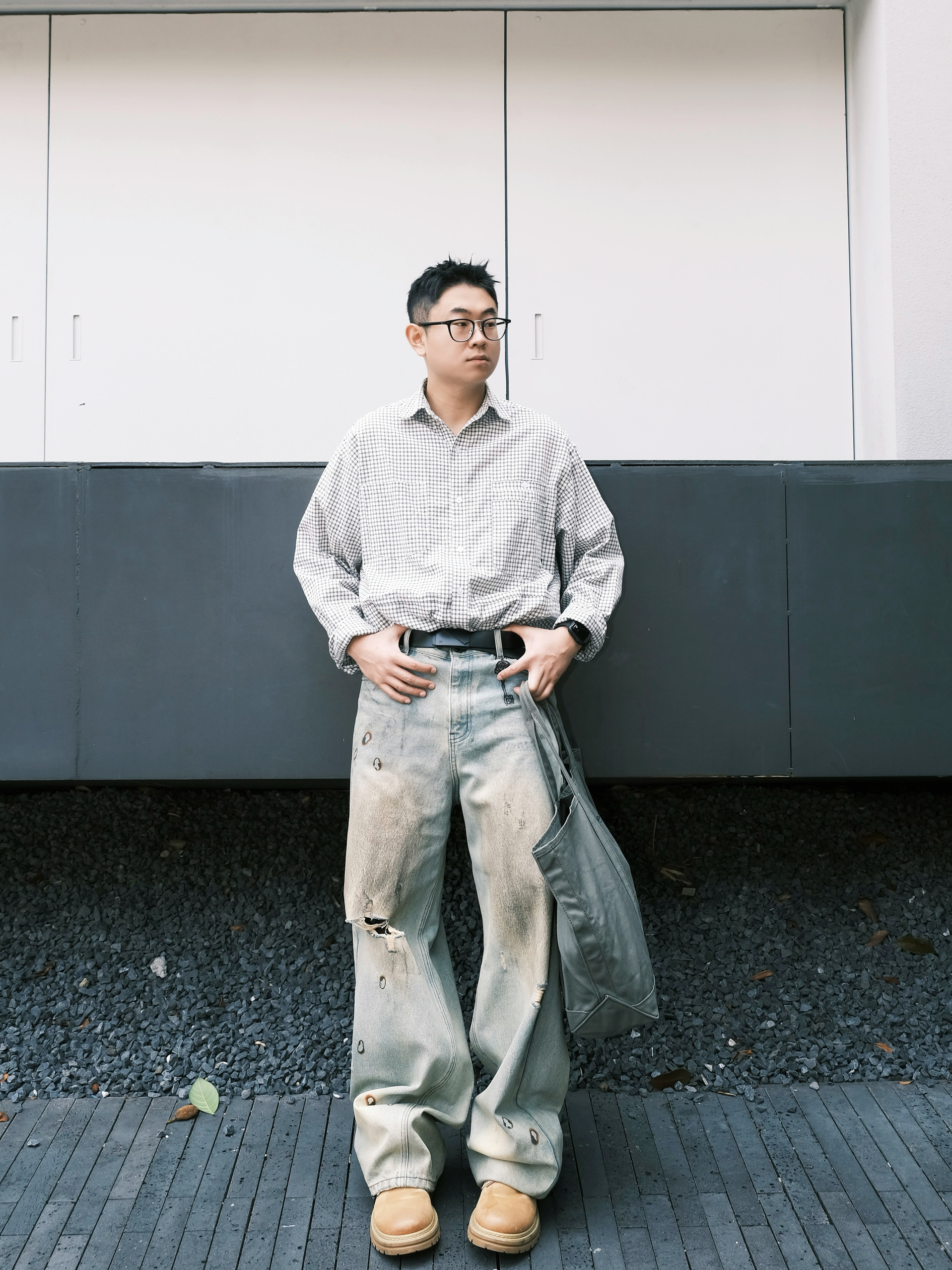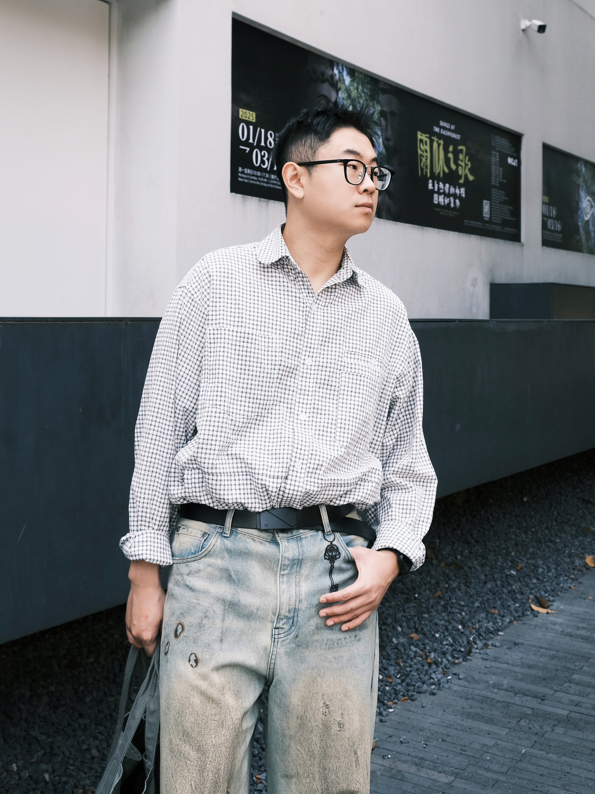谁说街头风只能靠花哨单品? 今天分享一套简约又高级的街头穿搭 - 经典水洗蓝牛仔裤+线条衬衣 宽松版型自带慵懒街头风 搭配起来随性又帅气! 穿搭少不了搭配的饰品 今天这条黑色皮带才是精髓 低调的哑光质感 搭配金属扣头 瞬间提升整体穿搭的精致度 拉高了腰线,显腿长效果直接拉满 不管是街头风还是日常通勤都能hold住!
