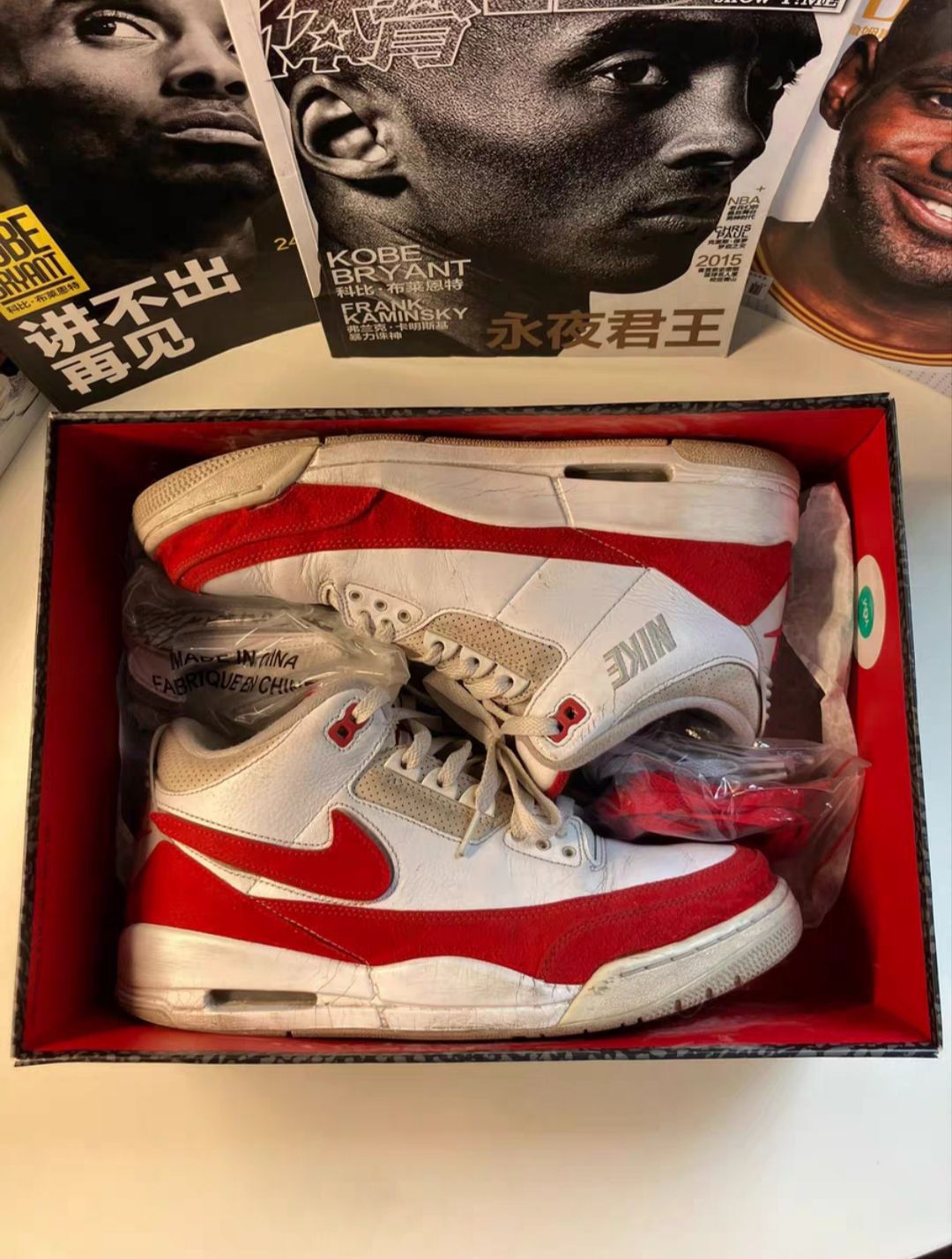 本篇笔记关联了Air Jordan 3 运动休闲鞋 潮流复古抓地支撑缓震合成革圆头 白红换钩/Tinker 等商品,为用户提供真实的使用体验和购买参考。
