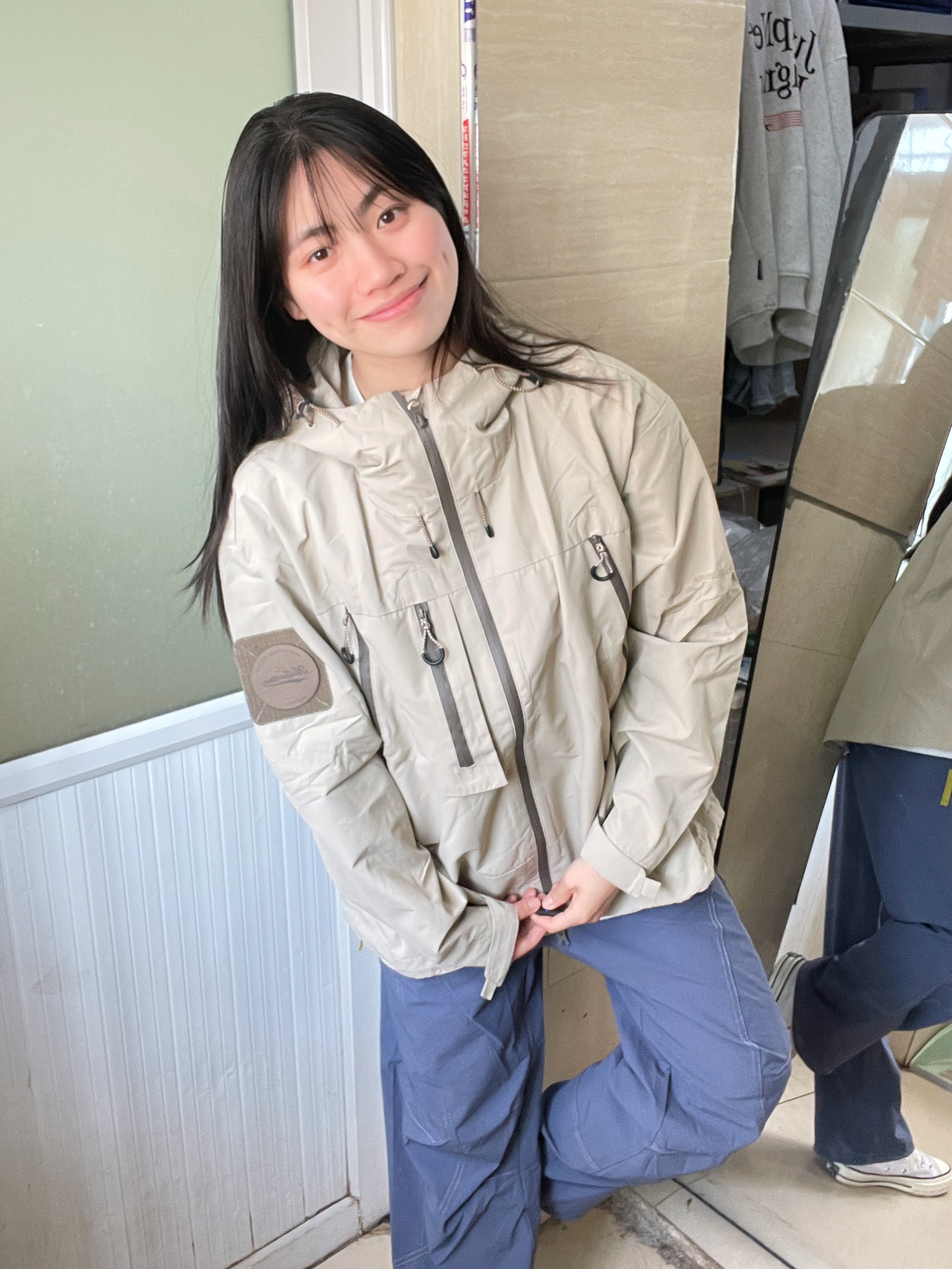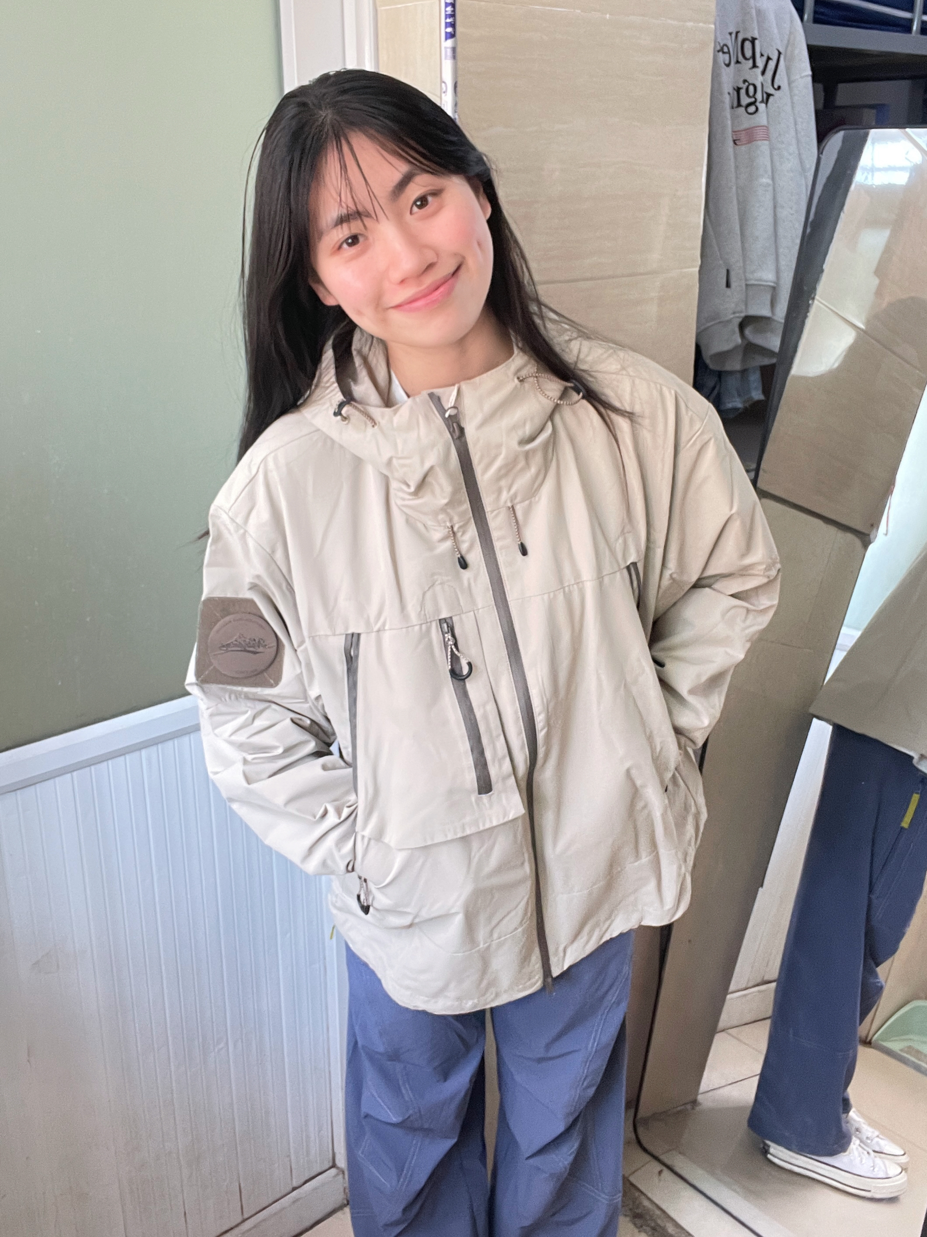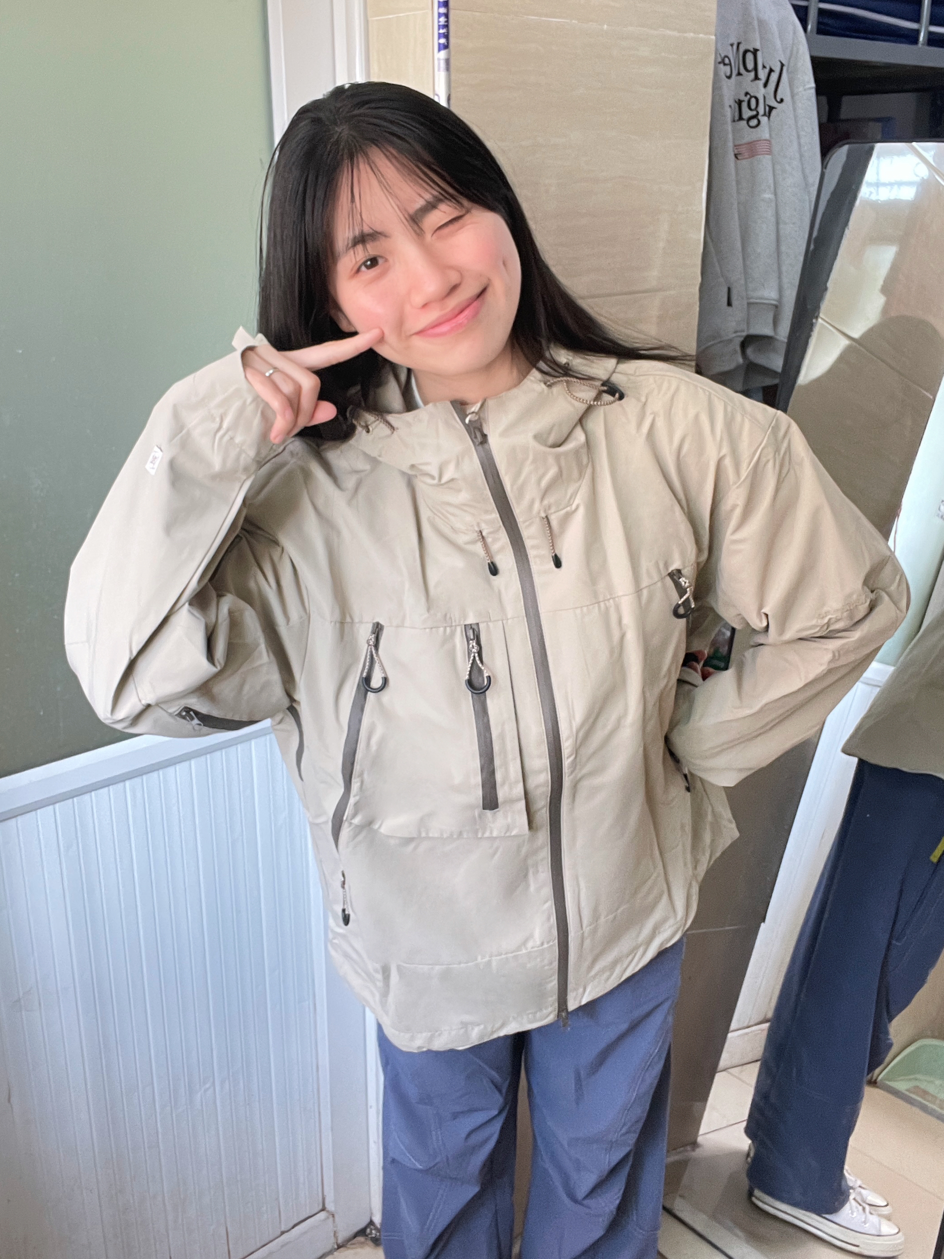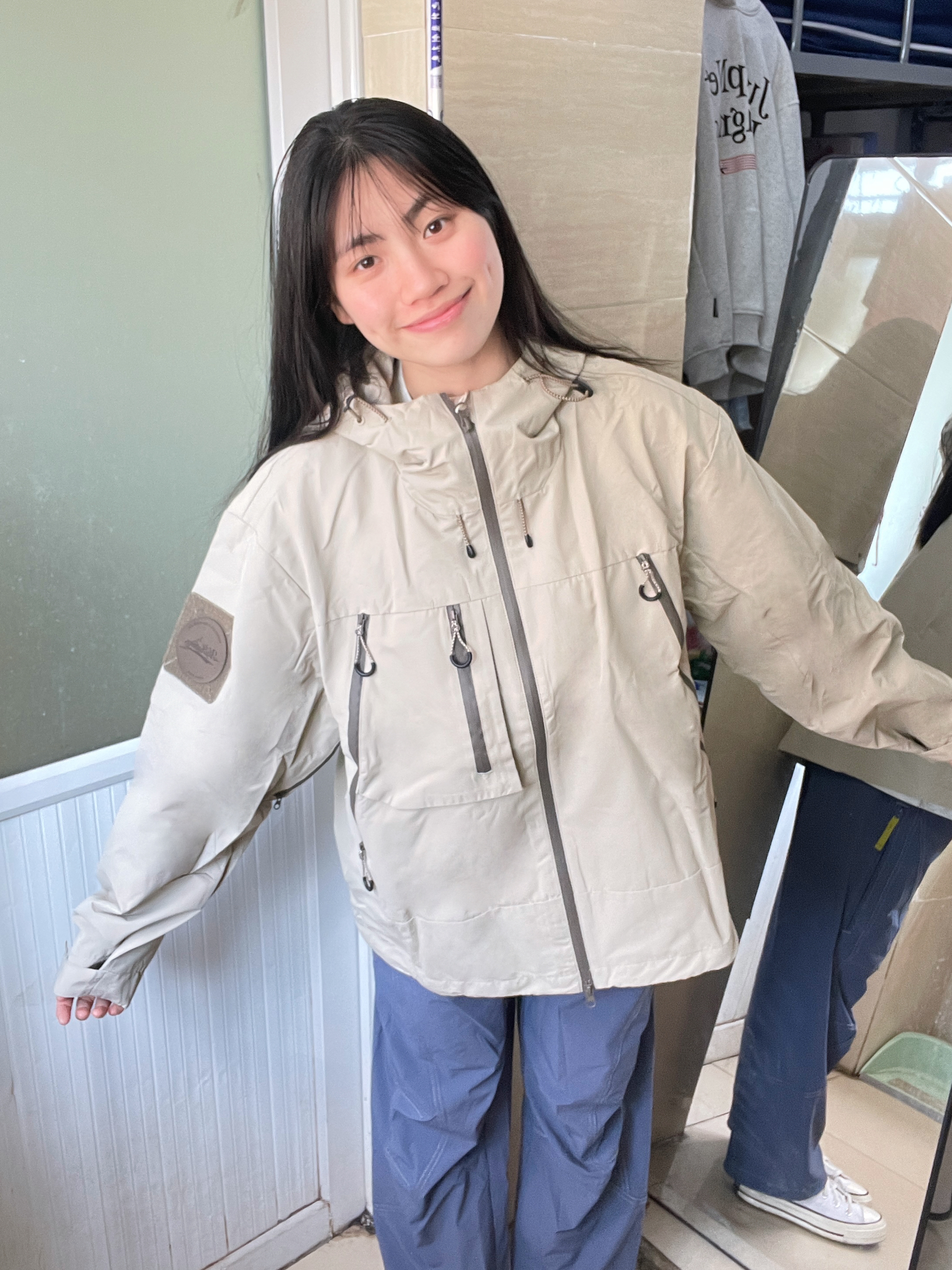 166 102穿的是M码 裤子是s码 我穿的是卡其色哦 上身就很山系 有点治愈的颜色 很有少年感勒 而且是三防的面料 户外运动的绝配!!!裤子很透气不会闷而且基本上没有重量感 很轻薄 喜欢的宝宝可以参考一下哦
