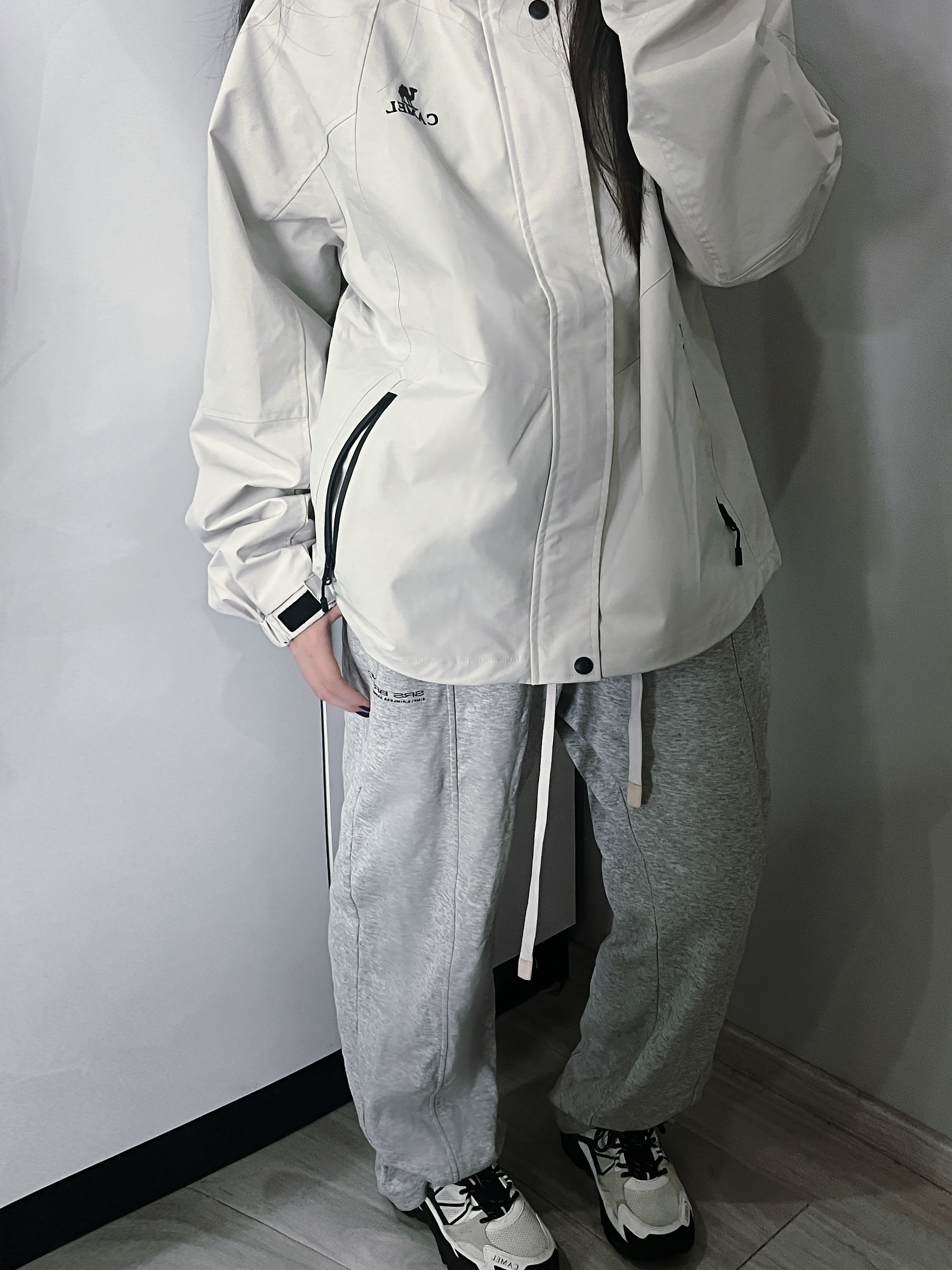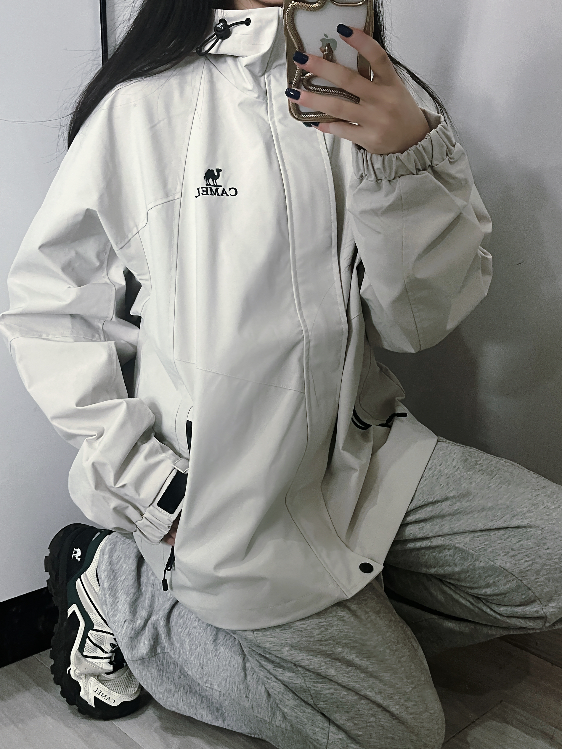 👕上身丨骆驼连帽冲锋衣(榛果灰) ✅三防黑科技实测扛住突袭秋雨 ✅立体剪裁+可调节风帽=行走的保暖结界 ✅低饱和榛果灰自带高级滤镜 出片率200% 👖下装丨灰色阔腿运动裤 🌟3D立体剪裁拯救腿型 设计显瘦小心机 🌟万能适配所有外套 运动休闲一键切换 👟战靴丨骆驼腾龙登山鞋(森林绿) ⚠️重点安利这个卖断货的宝藏! ▶️防滑耐磨底+5mm深齿纹=爬山如履平地 ▶️防水科技趟水坑都不怕 山地实测防...