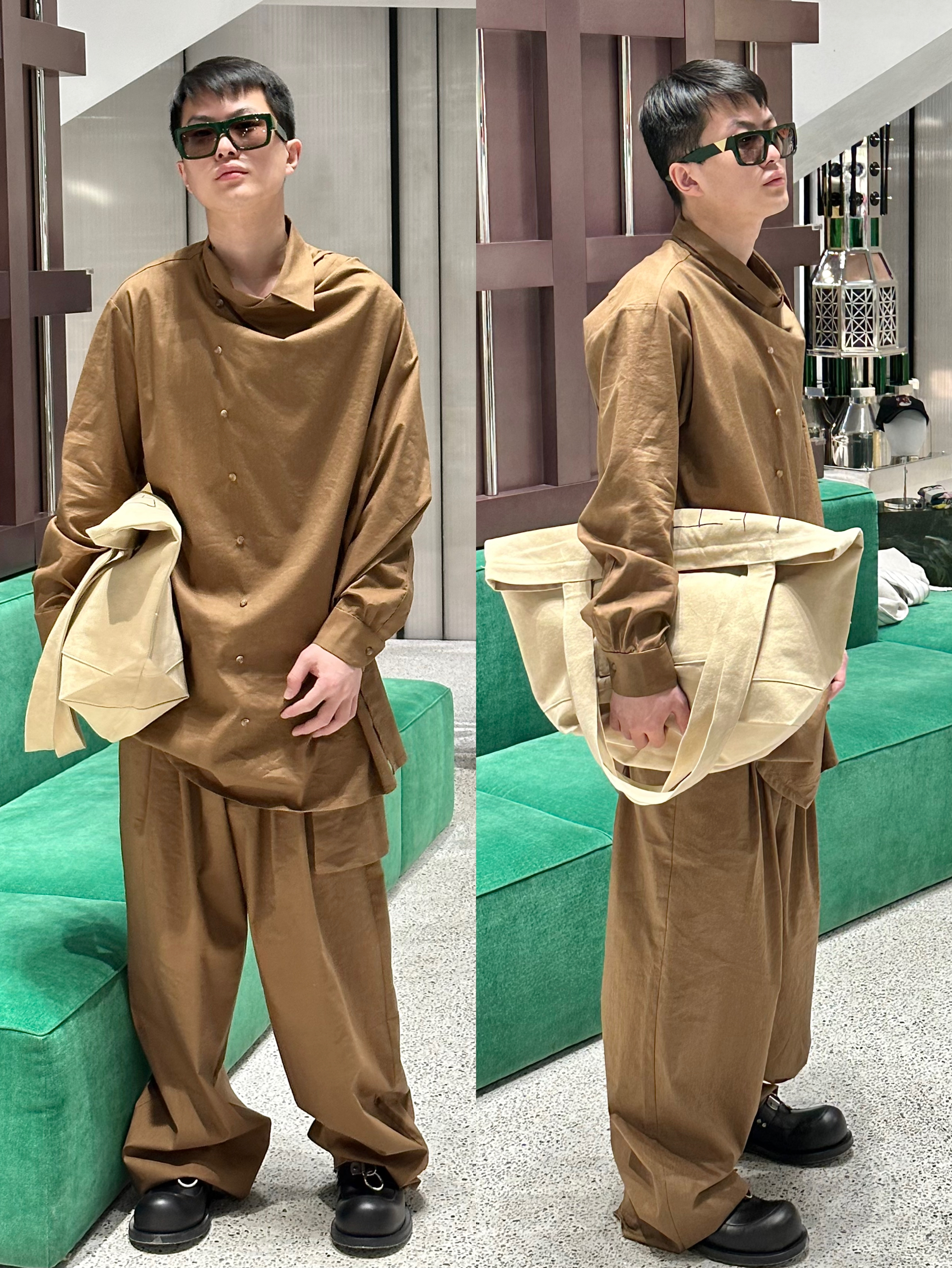 买了这件黑色皮衣搭配棕色裤子,简直是我近期最成功的穿搭尝试!皮衣质感超棒,是那种柔软又有型的材质,上身特别显气场,肩膀处的设计很挺括,能很好地修饰身形。棕色裤子的颜色很正,复古又百搭,面料舒适还不容易起皱。这一套搭配起来,时髦又高级,不管是去上班还是和朋友聚会,都能轻松hold住场面。走在街上回头率超高,好多人问我在哪里买的,真的太爱了,以后还会回购这家的衣服!
