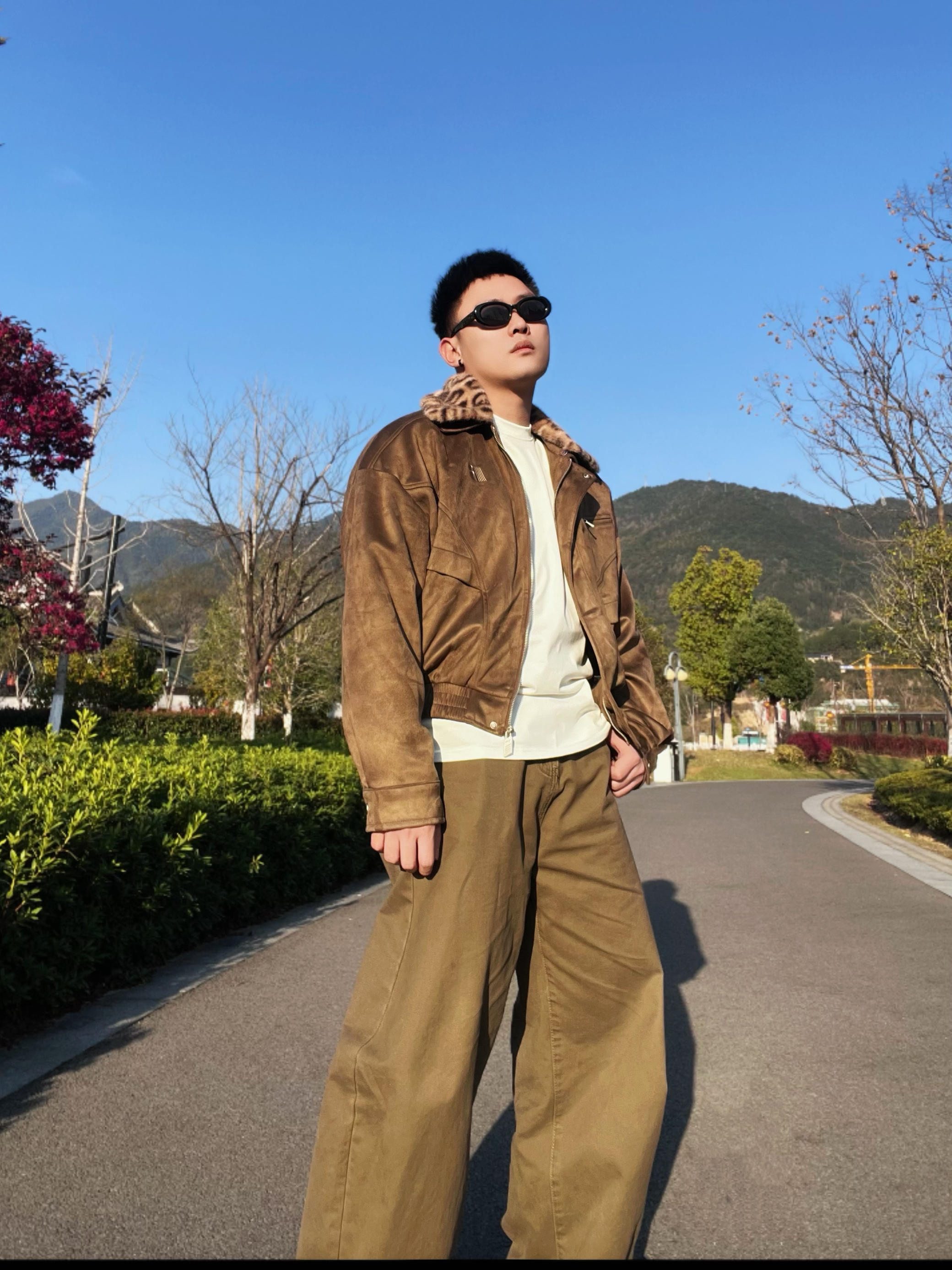 一眼就被这双鞋👟的配色吸引🤩 棕色🟤当然要搭配美拉德色系啦! 为了这身穿搭必须要展示一波 -- 替大家出过户外啦 ⬇️⬇️ 🧥:麂皮有质感,整体比较轻巧 领子豹纹别提有多酷😎咯! 👕:短袖重磅材质,面料偏硬版型不错喔! 毛巾绣涂鸦有点小帅! 👖:弯刀裤有很大的修饰腿型的作用 同时高腰会显腿长,版型宽松略显松弛! 👟脚感松软,鞋面透气^_^ 适合户外轻运动💪和日常通勤! 上脚好看的不行✋ 你也来一...