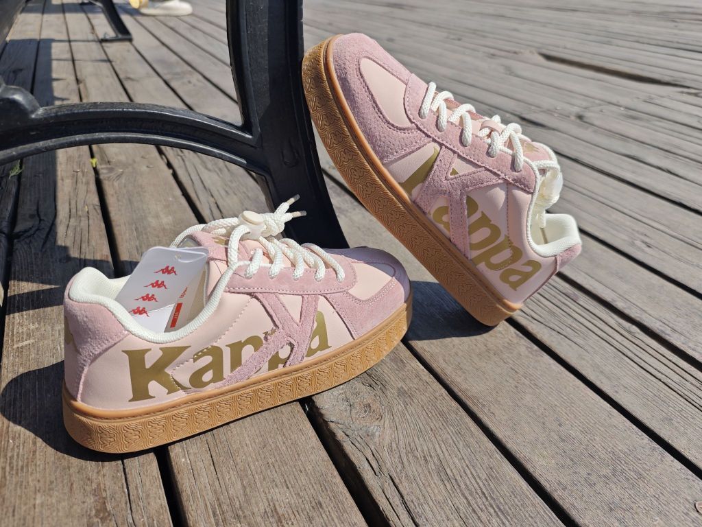 兄弟们姐妹们,这次真在识货上挖到宝藏鞋子了!Kappa这双粉色板鞋,实物比图片还好看!温柔的粉色鞋面,搭配亮眼的金色字母,颜值直接拉满。细节也超绝,鞋舌和鞋垫上的标志,质感十足。而且脚感舒适,日常通勤、运动休闲都能轻松驾驭。