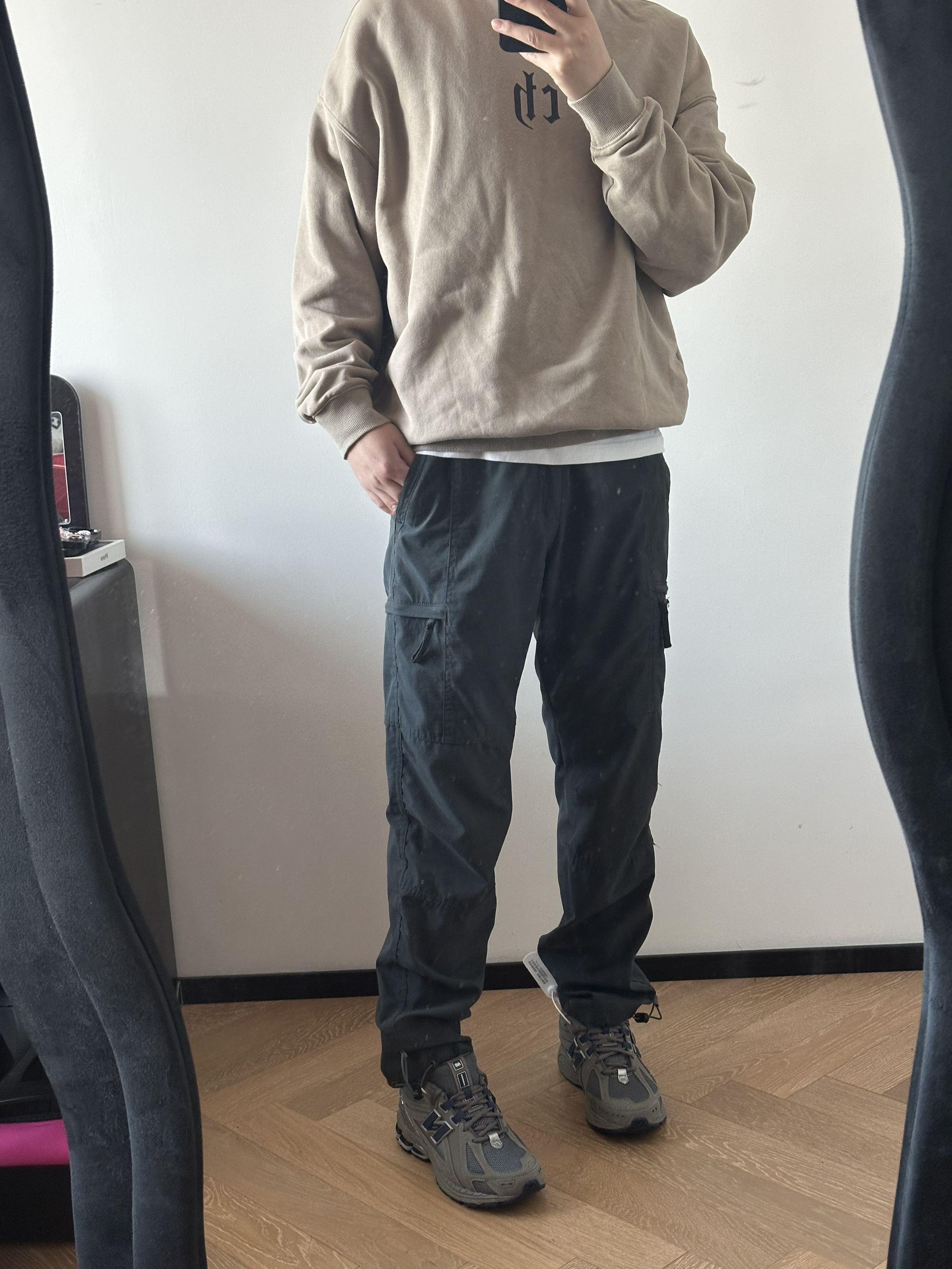 棕色长袖卫衣绿色工装裤 搭配深色nb的1906r 春天就应该这么穿