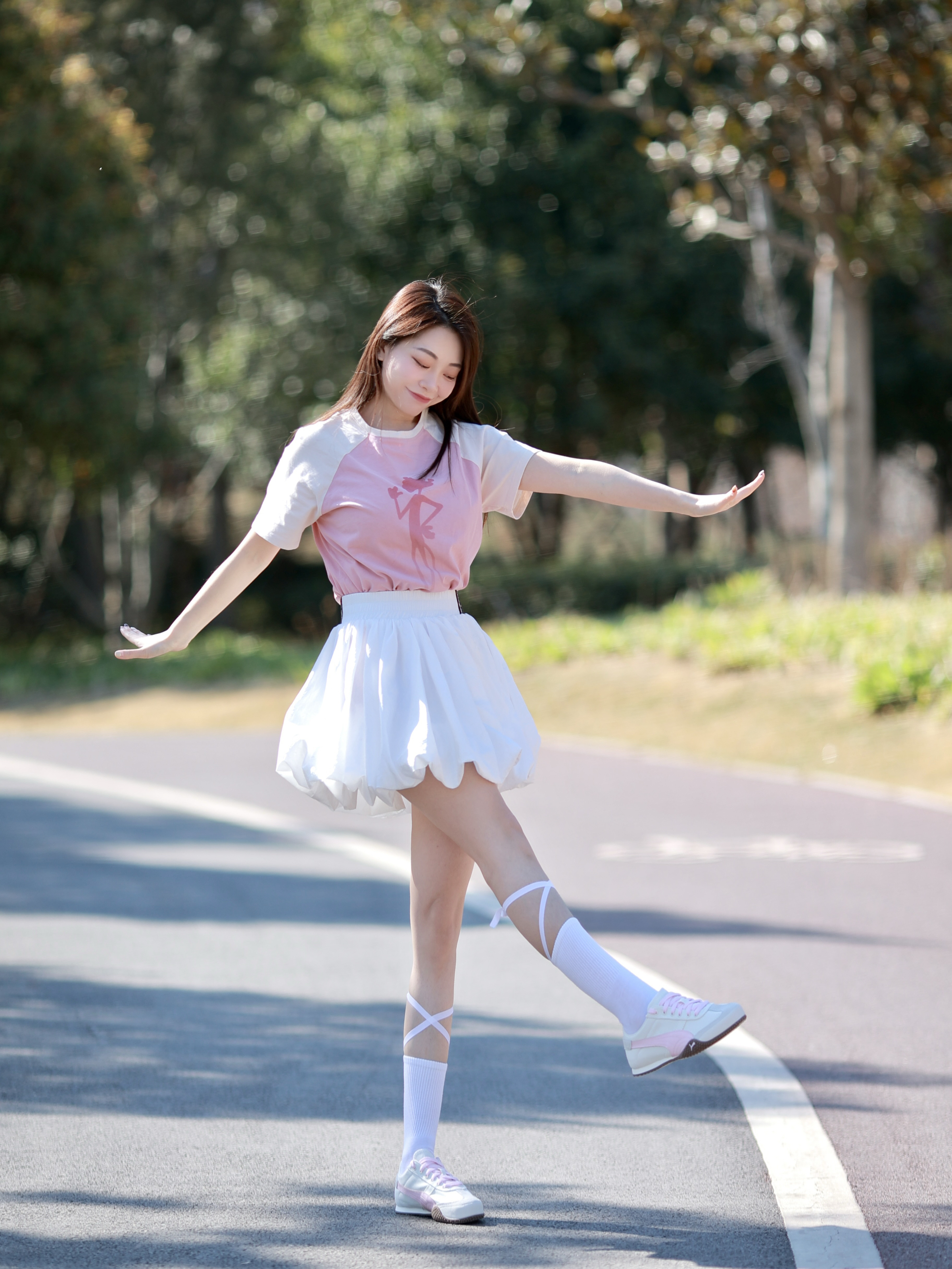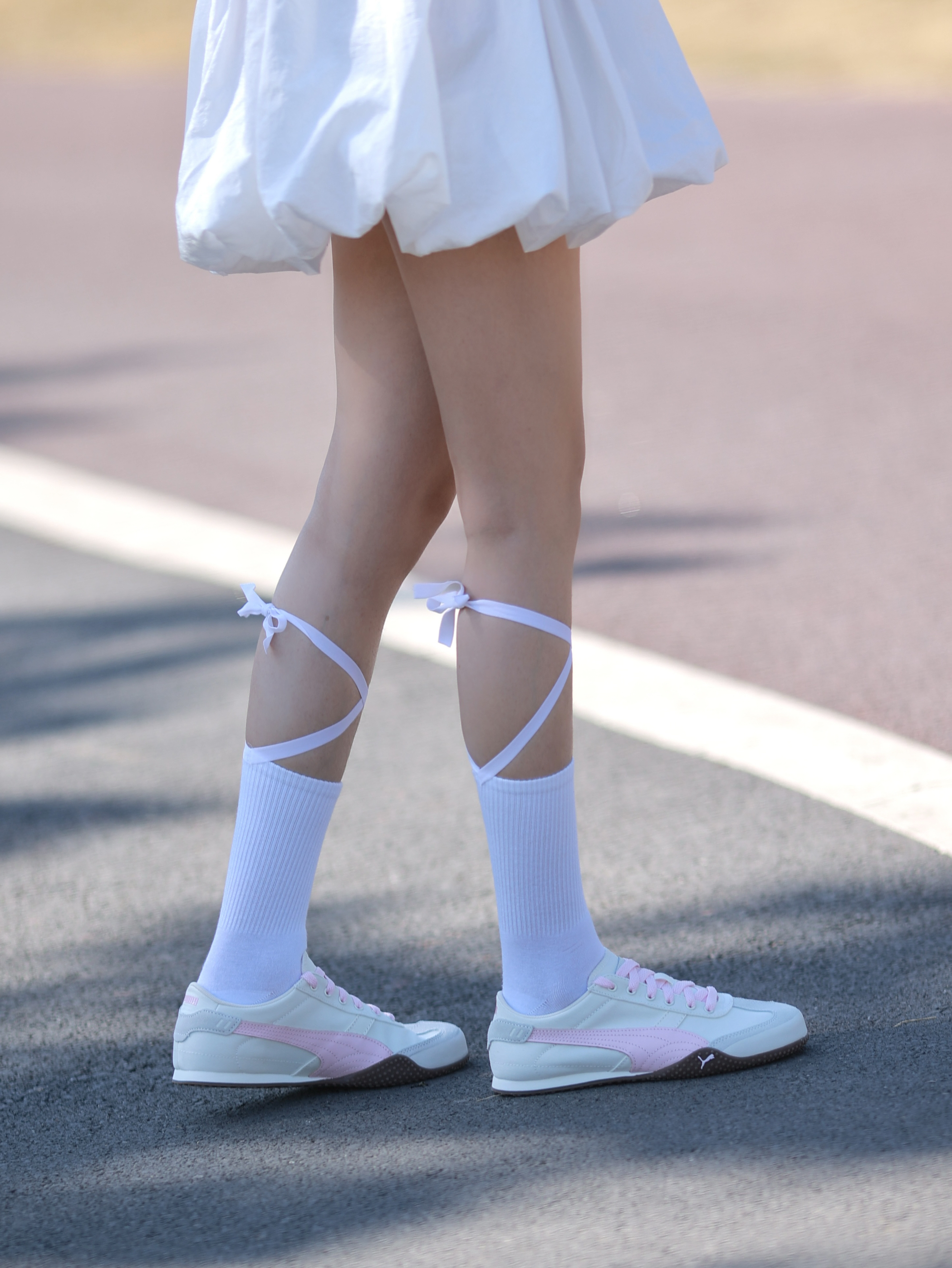 🩷今日穿搭👟 粉色t恤➕白色花苞裙➕休闲鞋 这套粉白配直接把春日氛围拉满啦🌸 搭配的鞋子是 Puma 休闲鞋👟 粉白撞色和今天的风格很搭~ 减龄氛围感💯!很适合春夏哦 鞋型很秀气,上脚蛮显脚小的 鞋底也是软软的,走路很舒服哦!