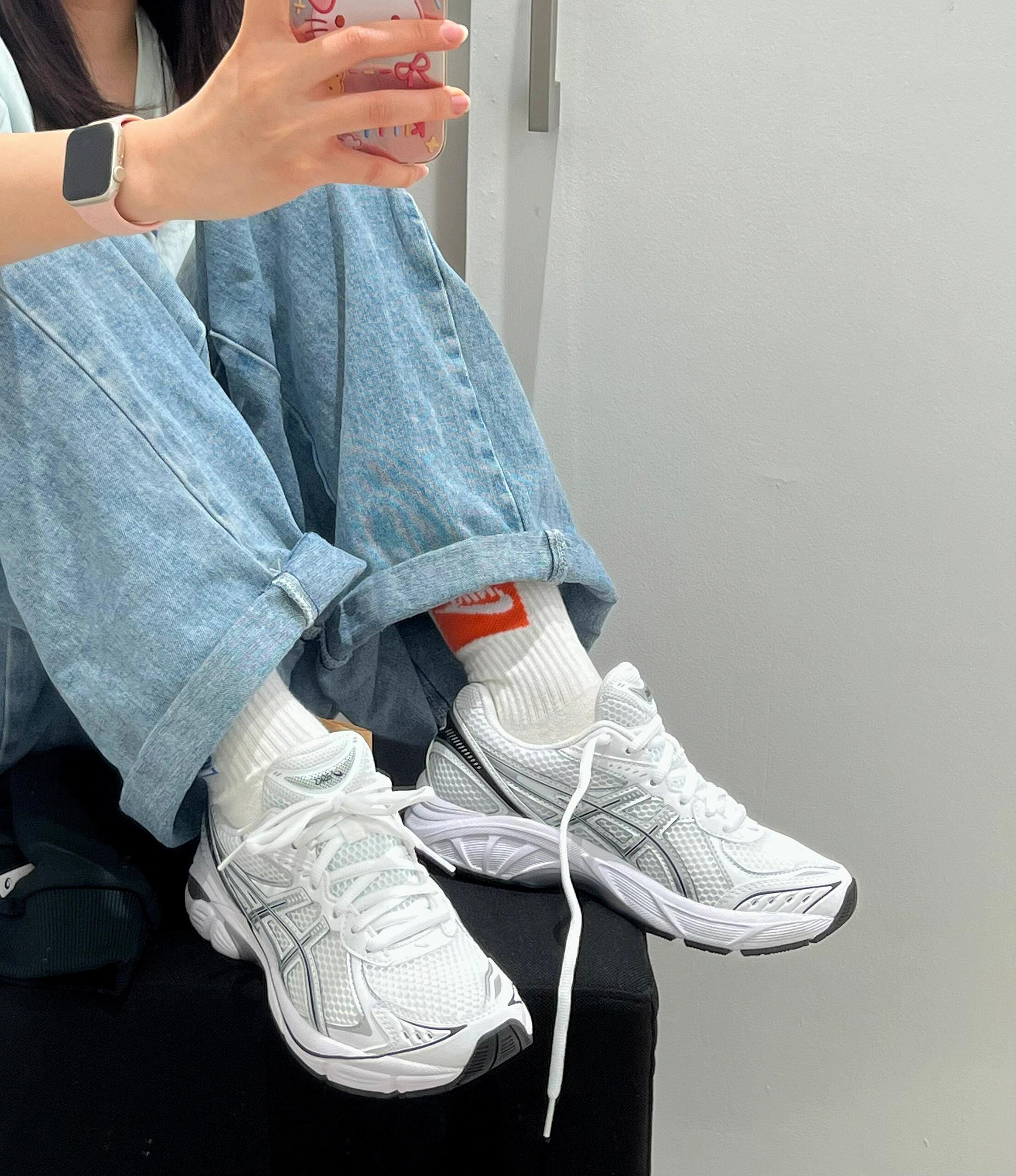 亚瑟士GT-2160 😎超适合春夏的银白色跑鞋 清清爽爽的配色和舒适的脚感 真的狠狠的拿捏我🫴搭配牛仔裤绝绝子