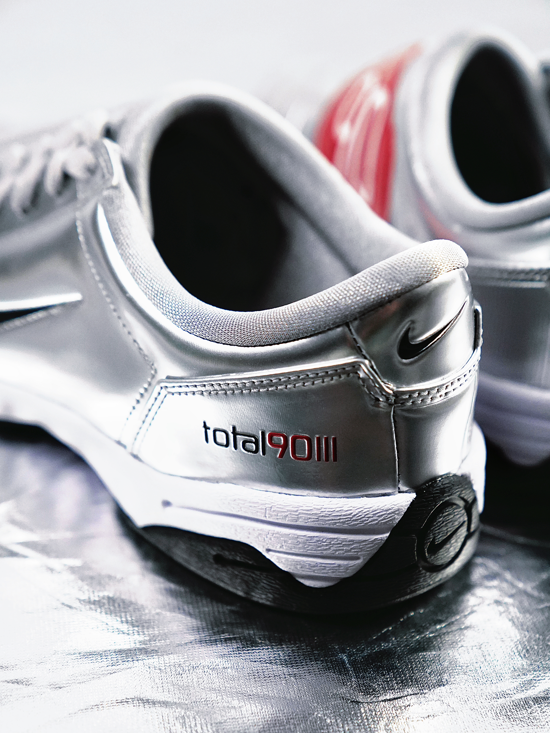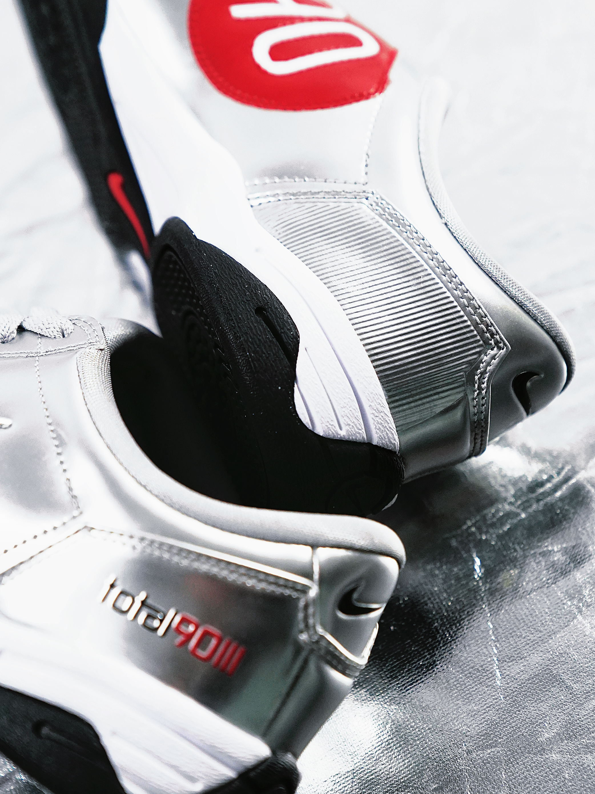 Nike一直以来都有把足球装备生活化的动作,最近这双Total 90,以薄底鞋的新身份回归。 银色的质感真不错,内侧是红色标志性的“90”Logo。