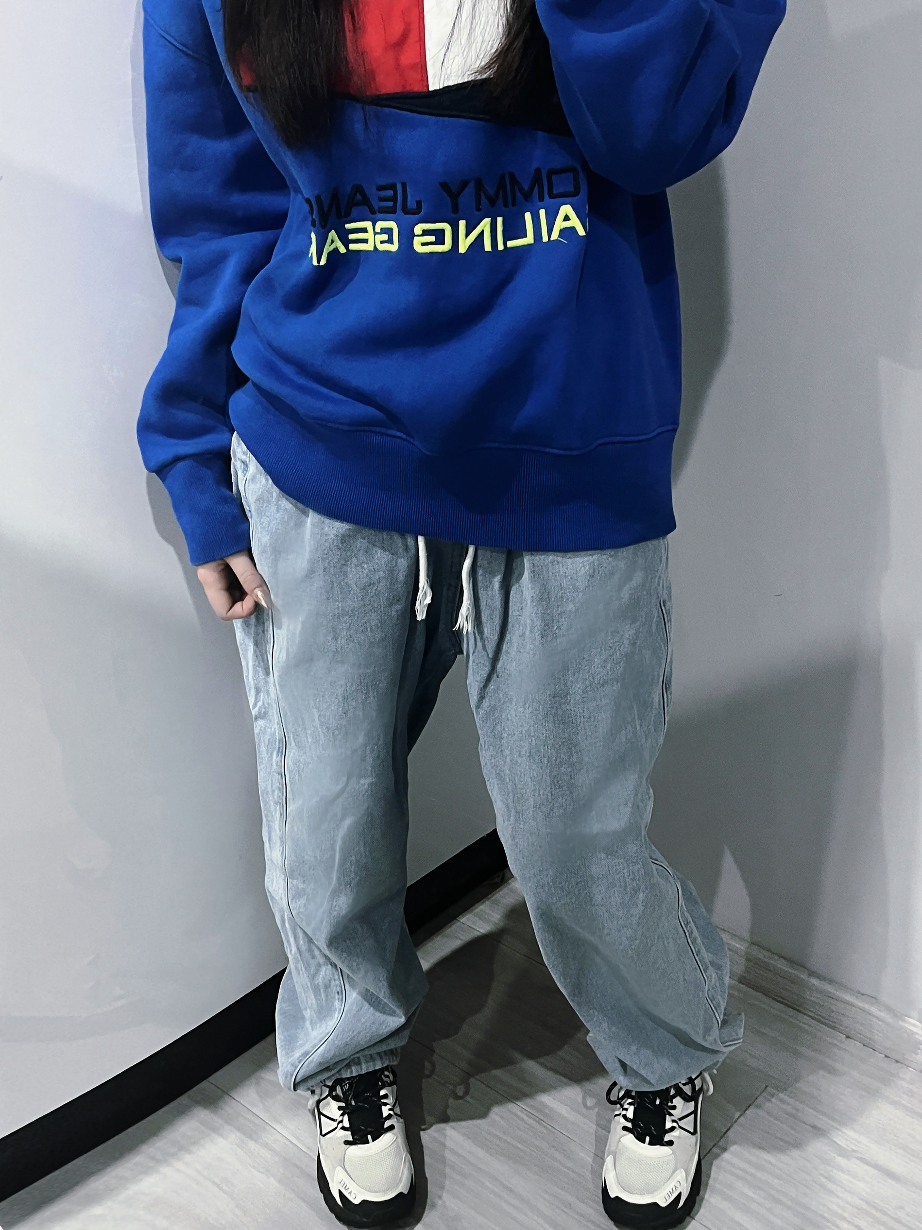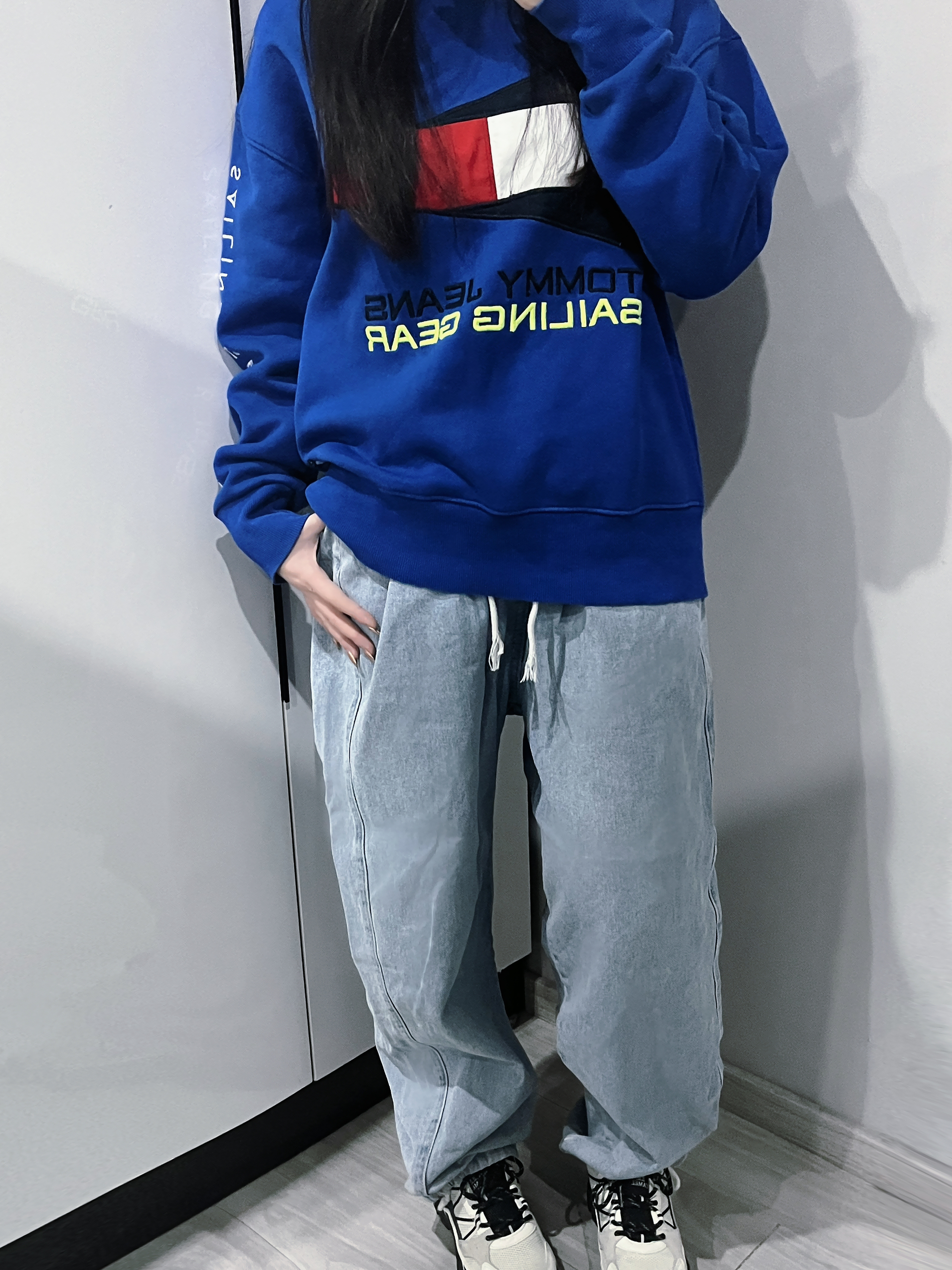^解锁春日通勤松弛感公式^ 卫衣控请查收这份慵懒不费力的层次感 —— 🌀深蓝圆领复古卫衣自带美式街头滤镜 ☁️抽绳廓形牛仔裤增添随性 🍃森林绿登山鞋让通勤舒适感与出街造型感双赢
