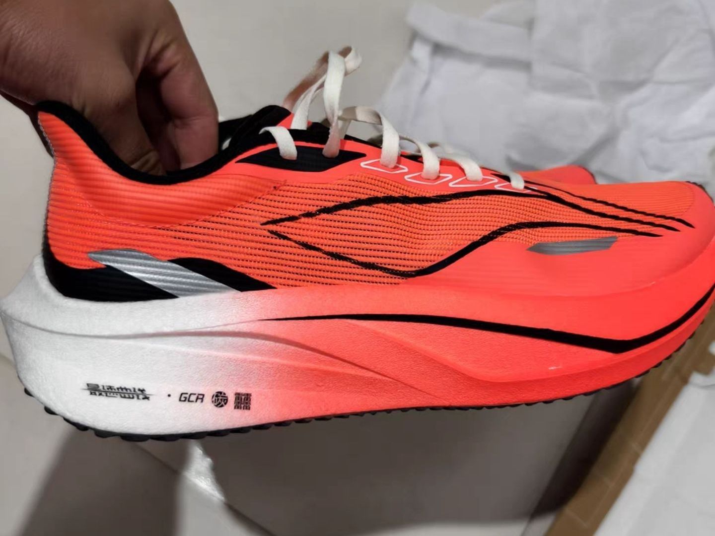 䨻丝鞋面轻薄如蝉翼,夏天穿完全不闷脚(透气性提升35%);外底升级GCU橡胶,雨天防滑+耐磨性翻5倍,实测跑了100公里,纹路几乎无磨损。