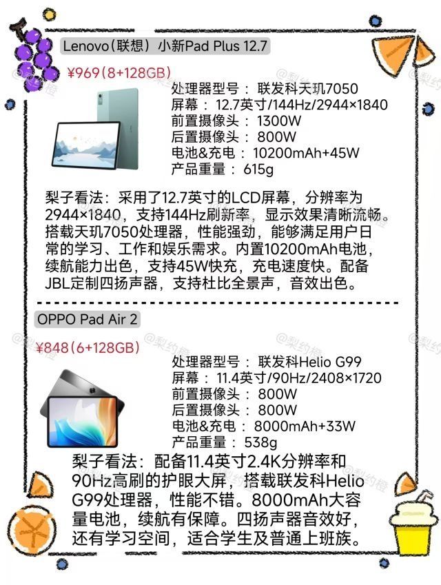 想要娱乐学习两不误?这10款百元平板是你的不二之选!轻巧便携,大屏享受,无论是追剧还是上网课,都能轻松应对。流畅运行,不卡顿,让你体验飞一般的快感。超长续航,告别电量焦虑,陪伴你更久。百元价格,千元品质!