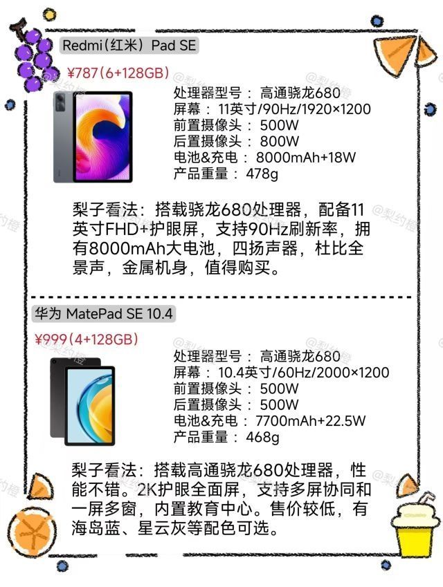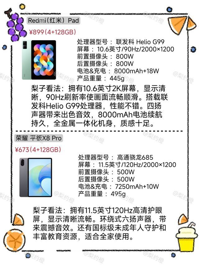 本篇笔记关联了Redmi/红米 Redmi Pad 10.6英寸 平板电脑 学生网课 娱乐办公 高刷 双重护眼 烟青绿、HONOR/荣耀 x8 pro 2023款 11.5英寸 平板电脑 机身 全金属 多屏协同 高刷 护眼屏 学习 星空灰、Redmi/红米 Pad SE 2023款 11英寸 平板电脑 护眼 高刷 学习 高清屏 长续航 网课 绘画 深空灰等商品,为用户提供真实的使用体验和购买参考。
