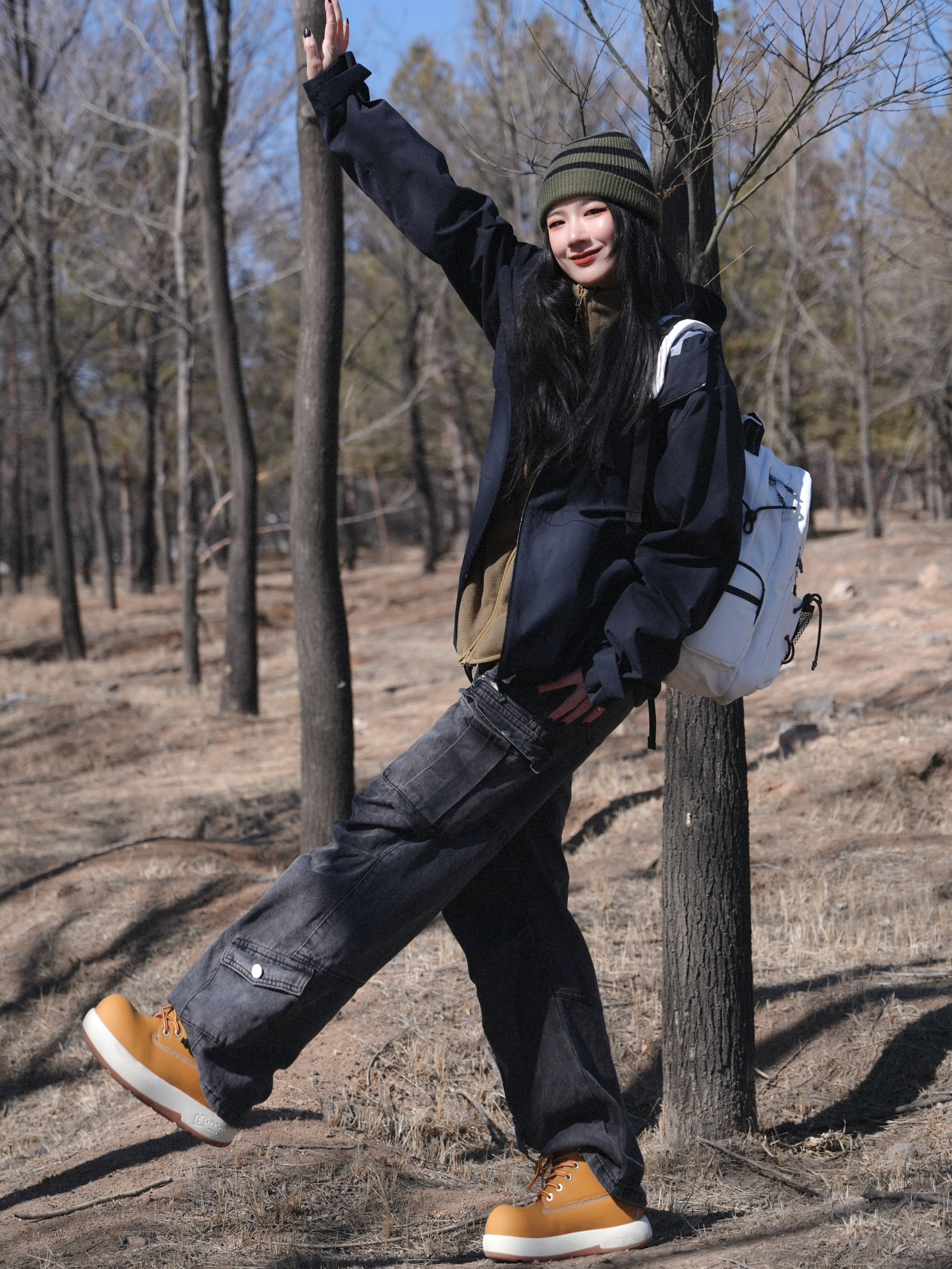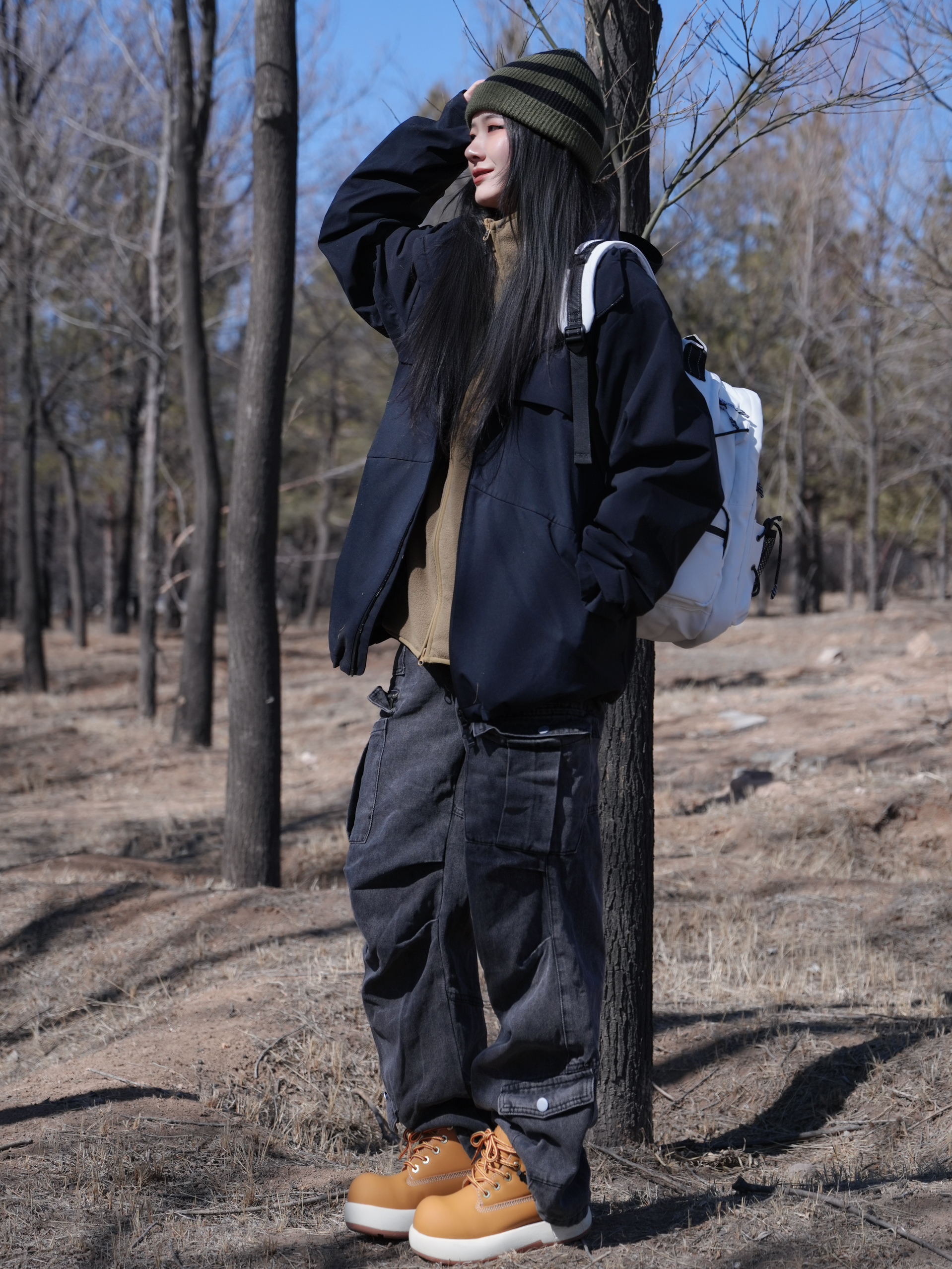 春天怎么能少的了户外踏青呢 今天就是去找春天啦 户外活动真的需要大容量包包 把所有必需品放进去 而且非常喜欢野炊的感觉 包包里也可以放下喜欢的食物🥘 白色系真的很适合春夏 元气满满的感觉~ 有很多分层和口袋 日常通勤上课都很实用! 冲锋衣➕大黄靴 这套就是很户外的感觉🪵 ————