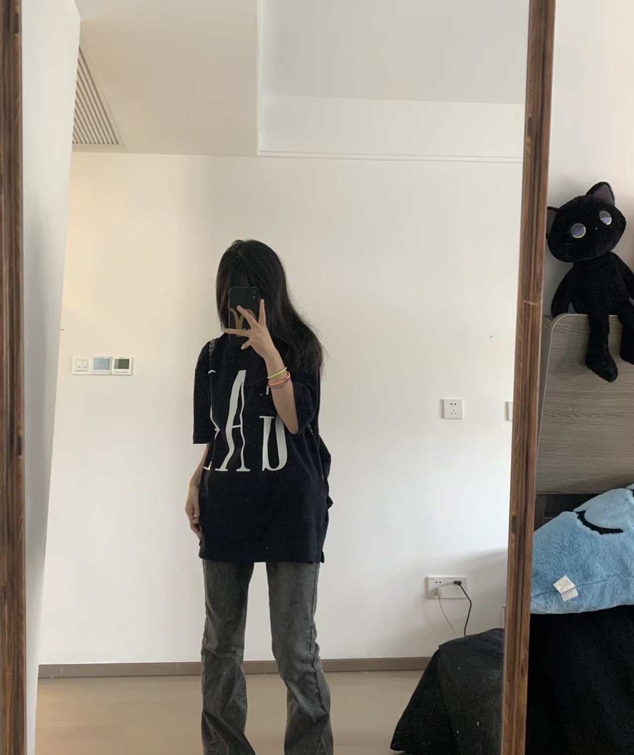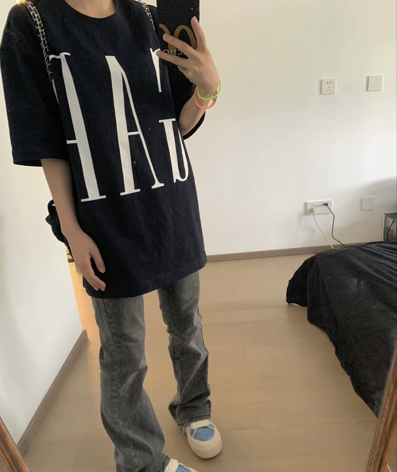 这件短袖穿上去感觉挺显瘦的呢!而且很百搭,穿起来挺舒服的!版型也很好看哦!